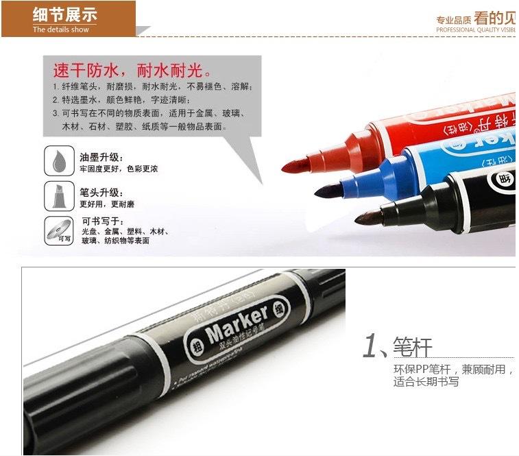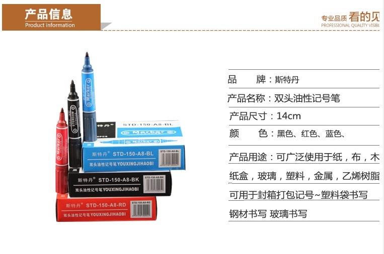 Material de oficina Marcador Stan a base de aceite de doble punta negro de punta grande tinta recargable marcador logístico de gran capacidad