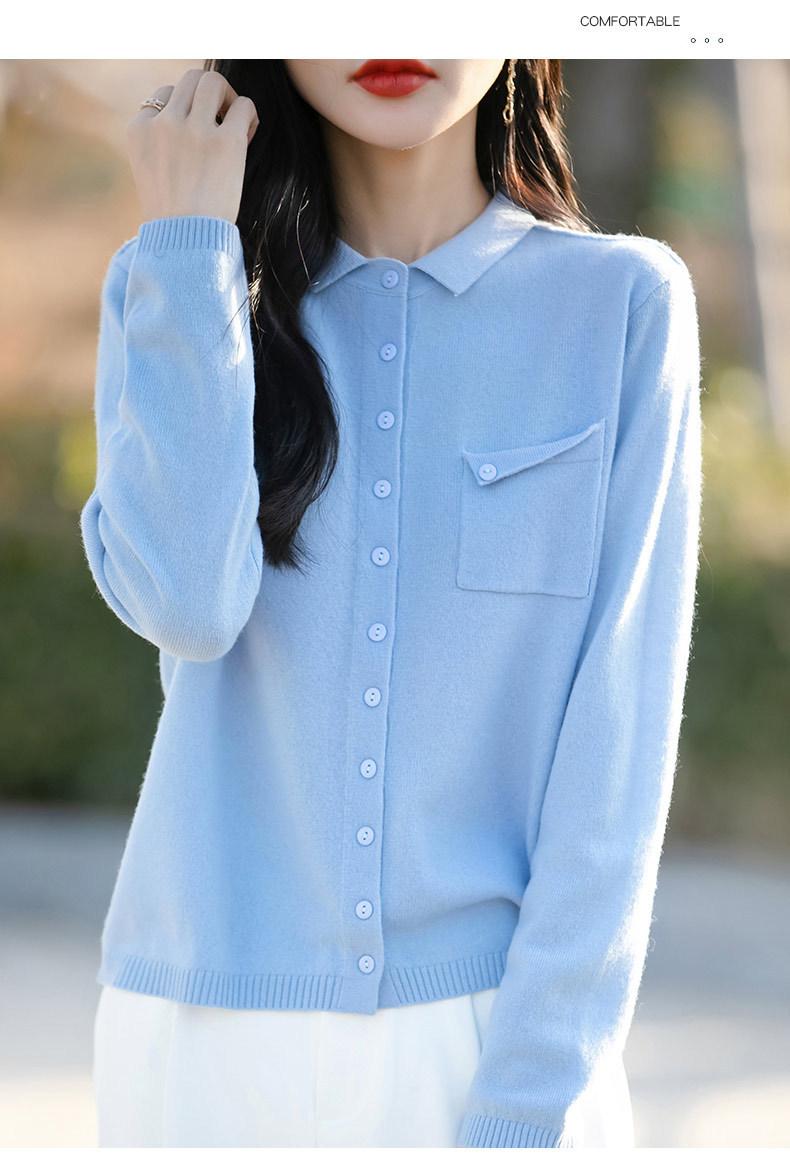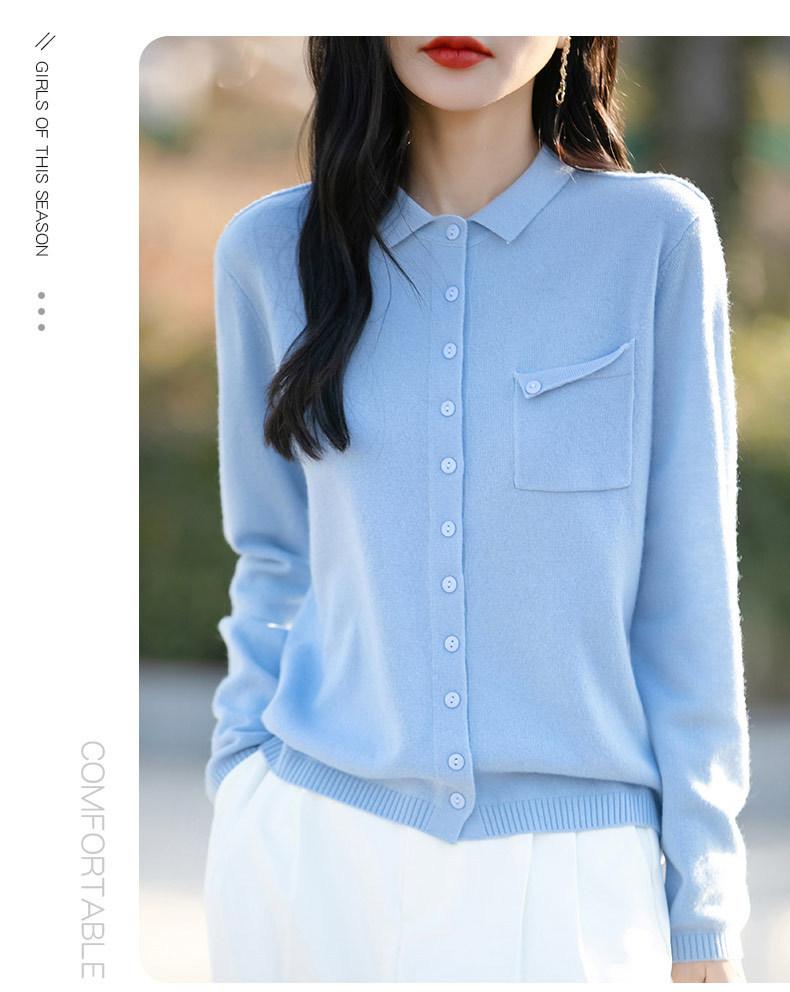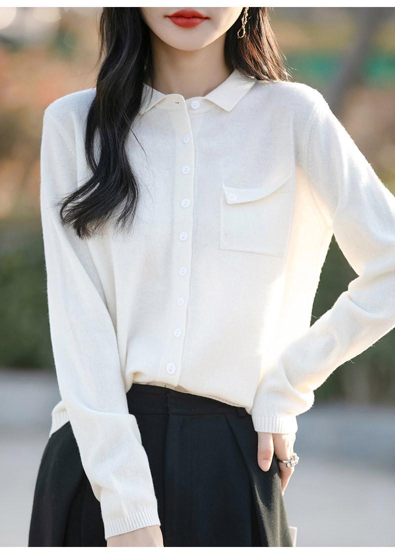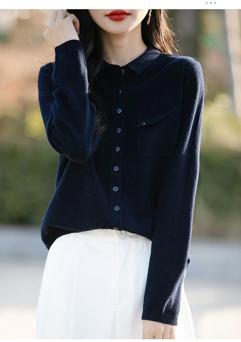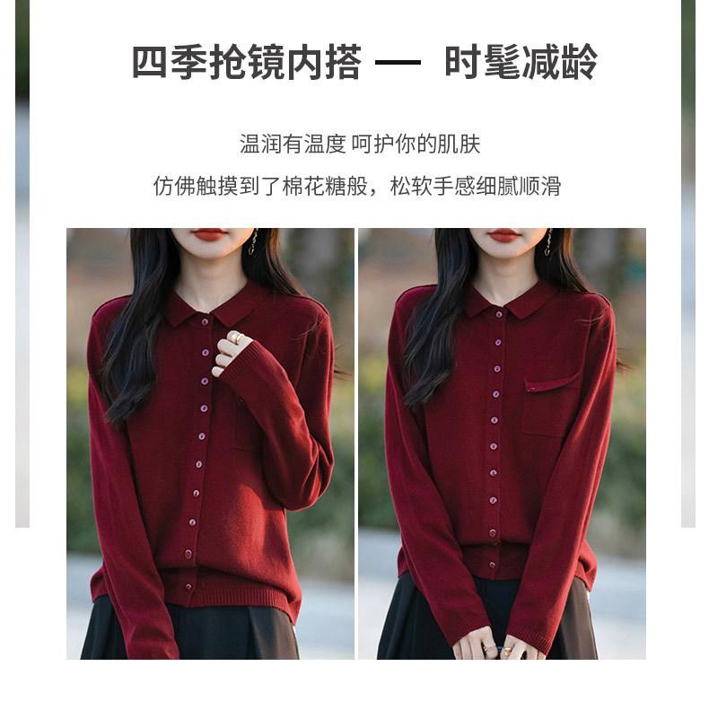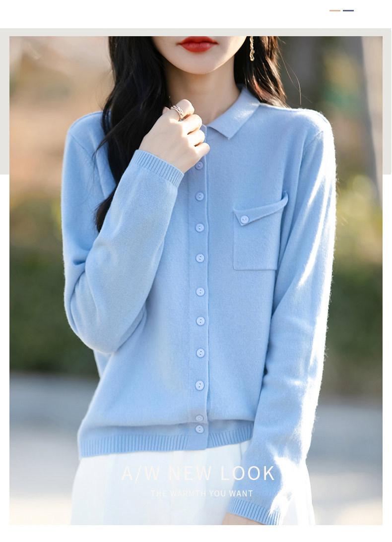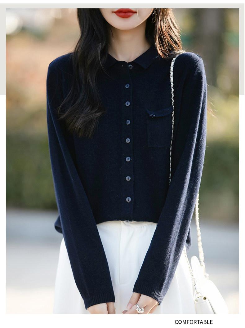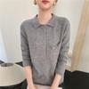 Cárdigan de punto nuevo de otoño 2025 para mujer, suéter tipo jersey para mujer, camisa POLO de cuello, manga larga, comercio exterior