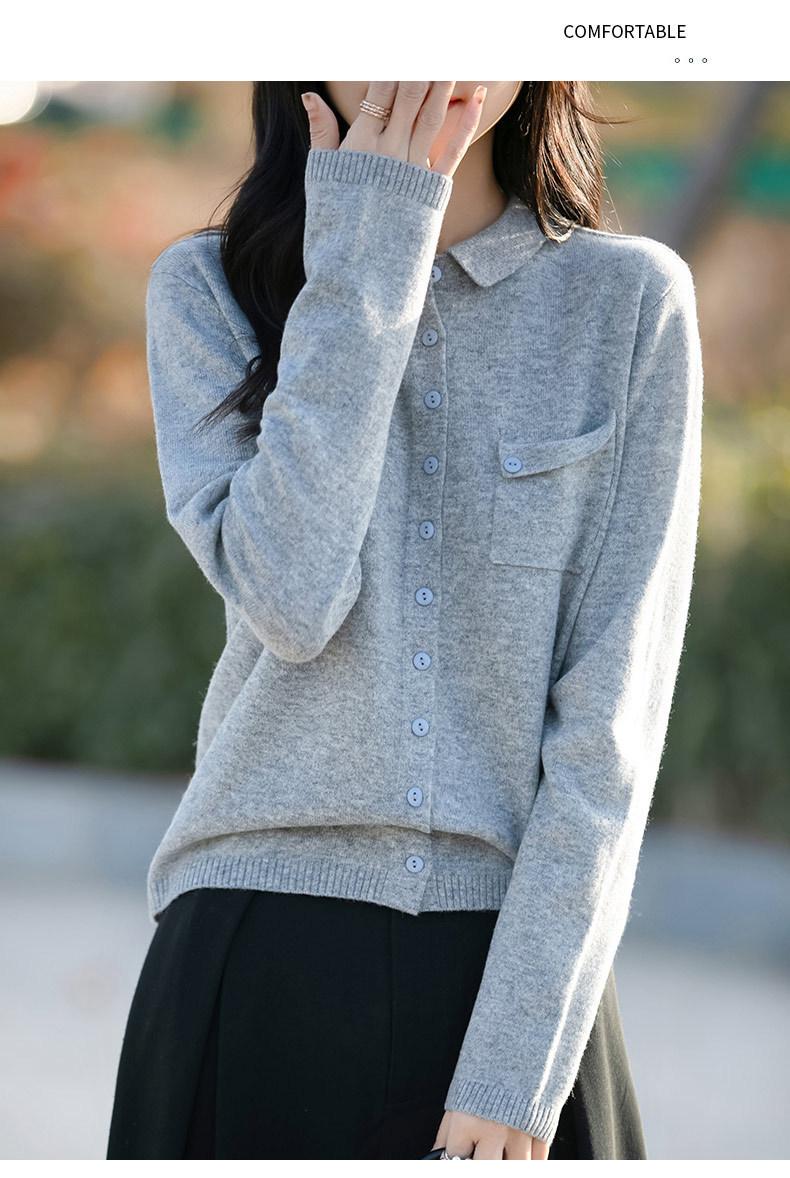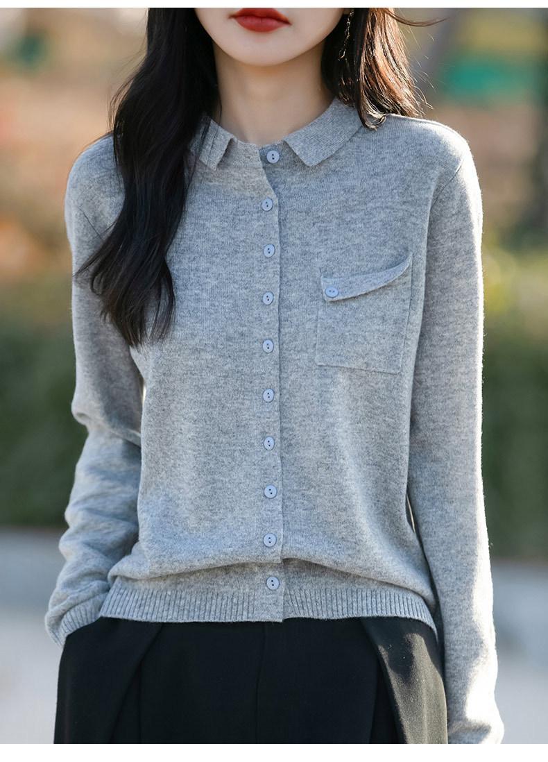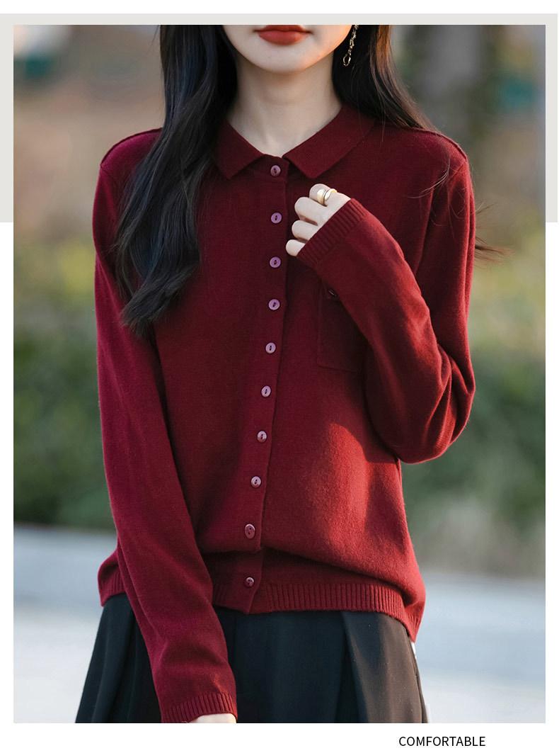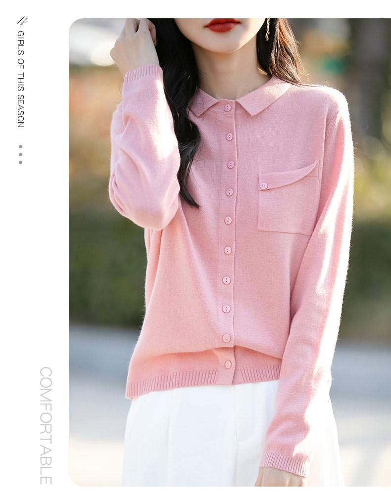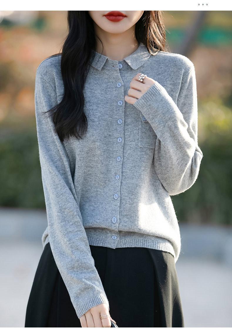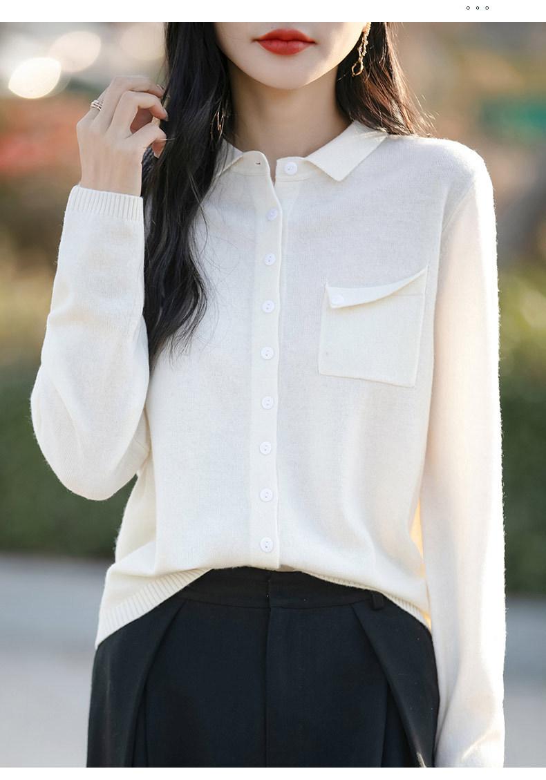 Cárdigan de punto nuevo de otoño 2025 para mujer, suéter tipo jersey para mujer, camisa POLO de cuello, manga larga, comercio exterior