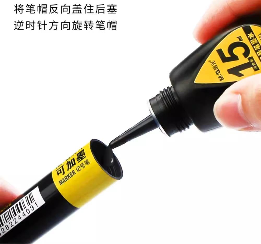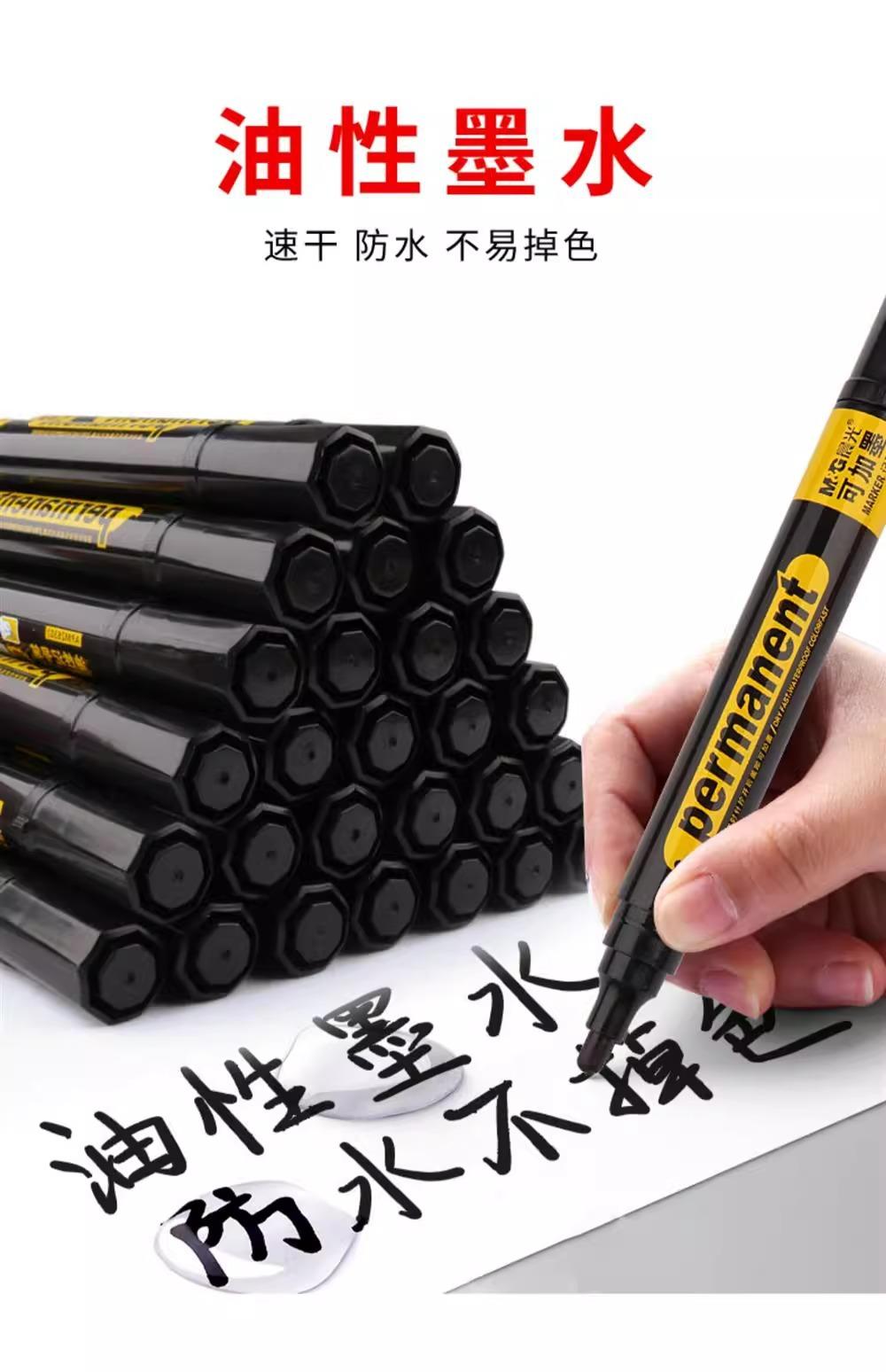 Marcador Recargable Morning Light, Negro, Punta Grande, Punta Gruesa, Marcador a Base de Aceite, Bolígrafo Logístico de Gran Capacidad, Bolígrafo para Firmar