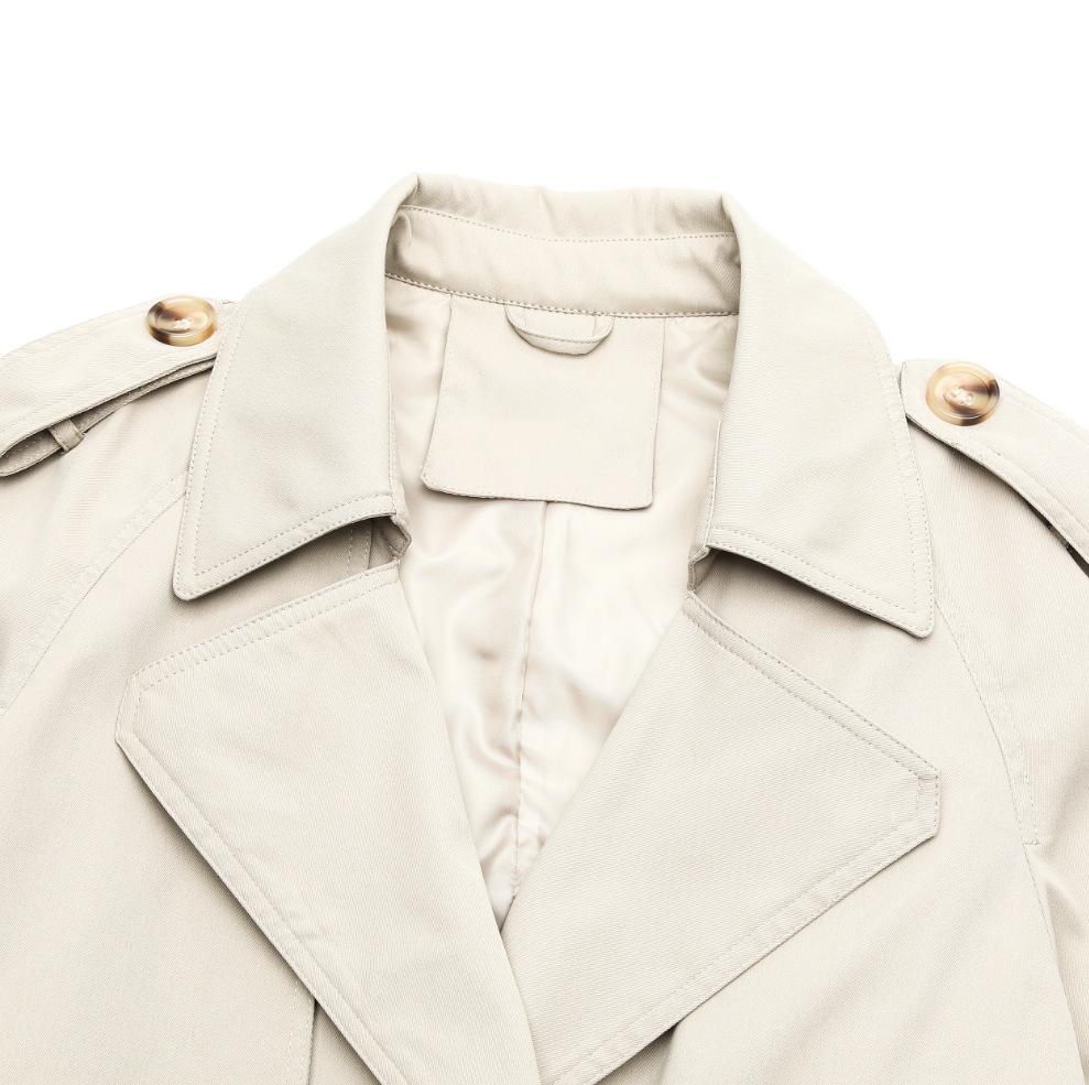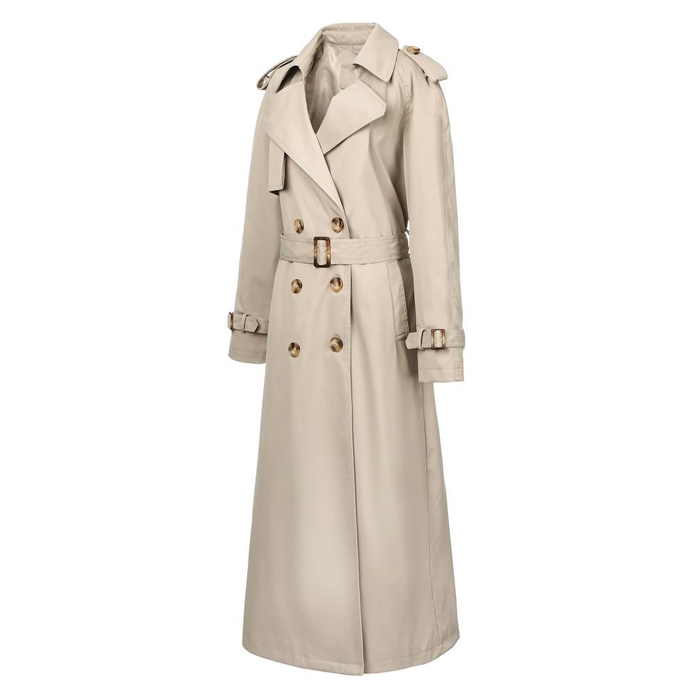 Gabardina cruzada para mujer, disponible en cuatro colores, con solapa, cinturón, corte entallado, detalles de charretera y puños, directo de fábrica.