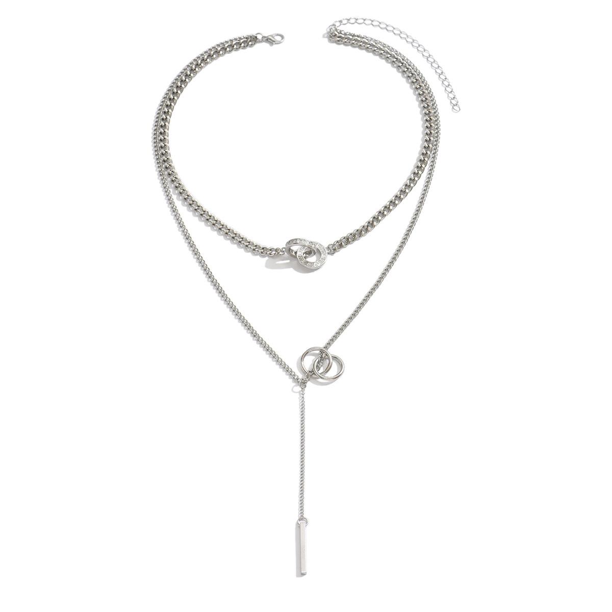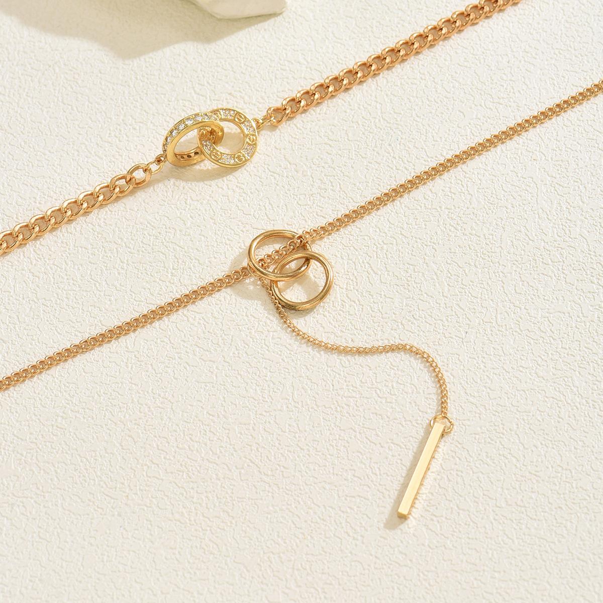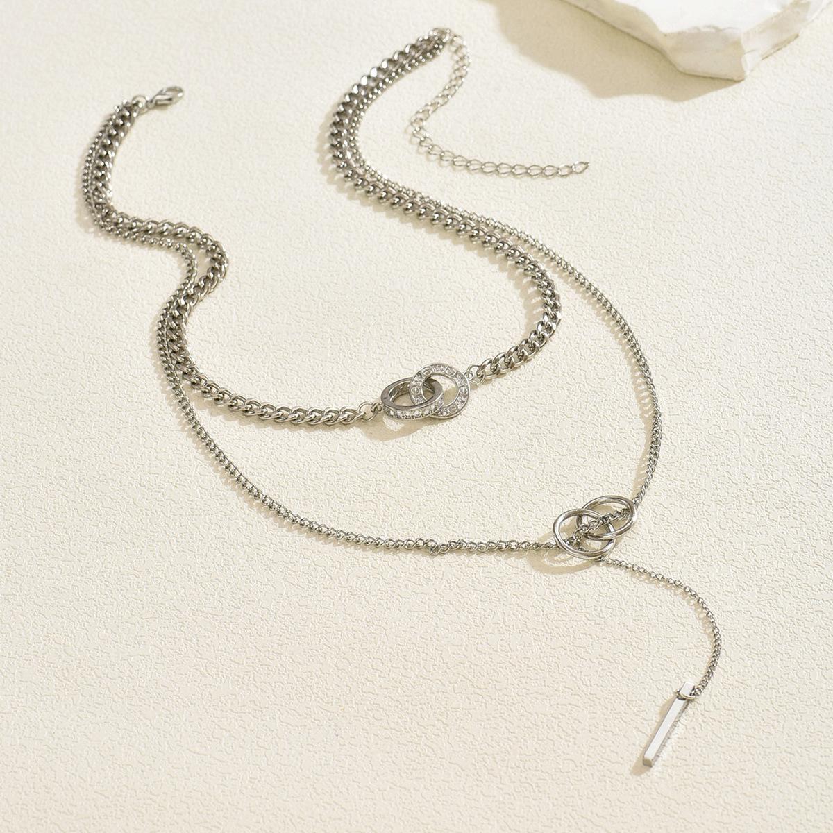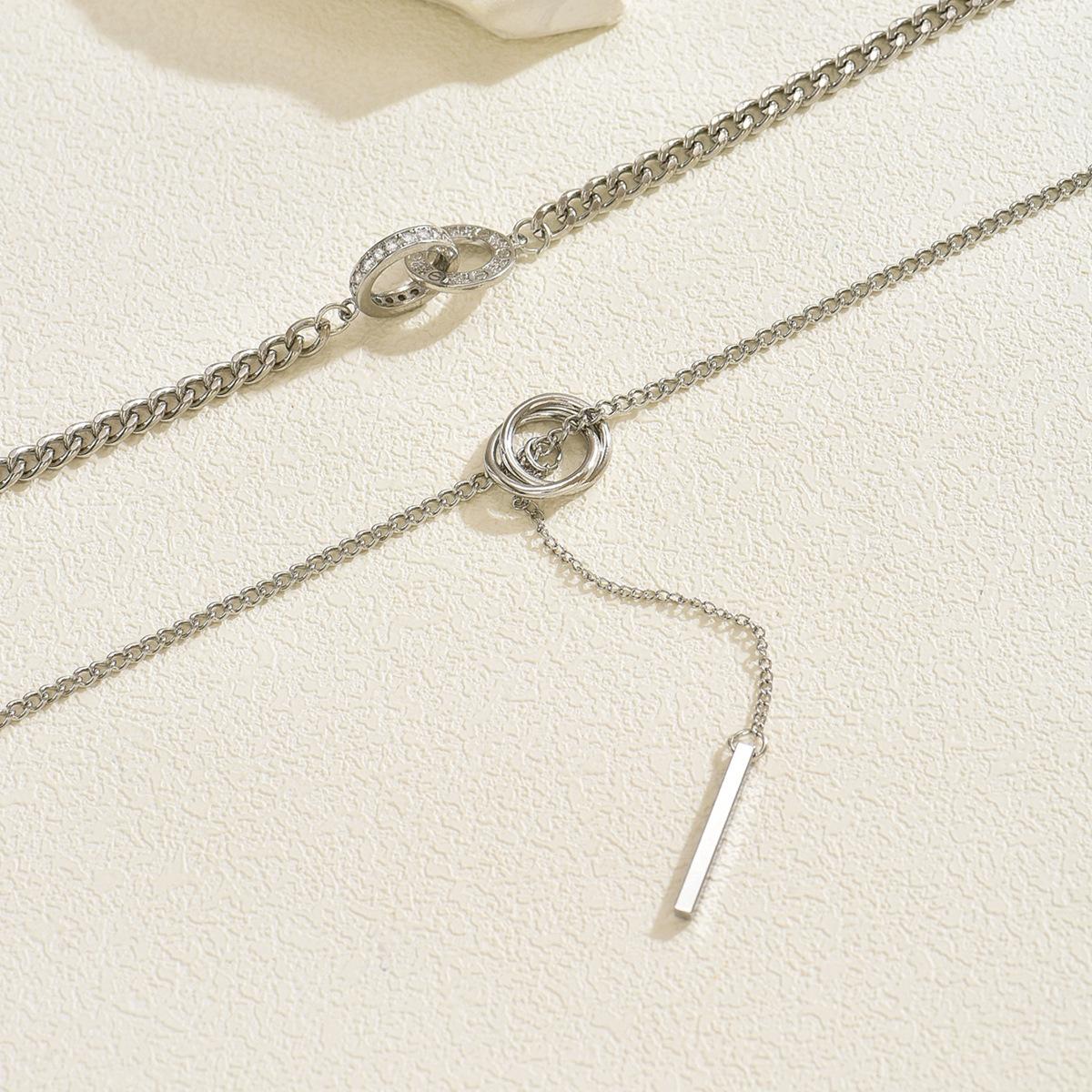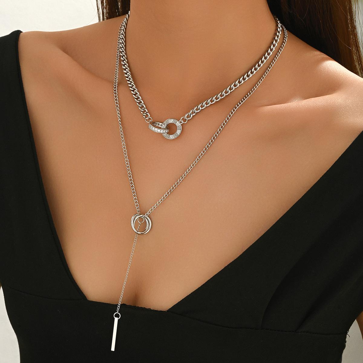 Collar Largo al Por Mayor Europeo y Americano Transfronterizo Aleación con Incrustaciones de Diamantes Joyería Lujo Ligero Nicho Collares Cadena de Clavícula con Borlas en Capas para Mujer