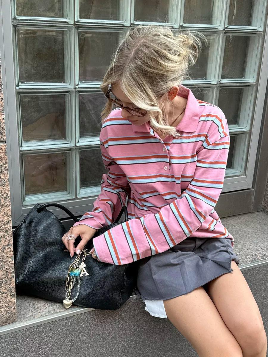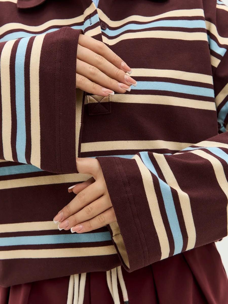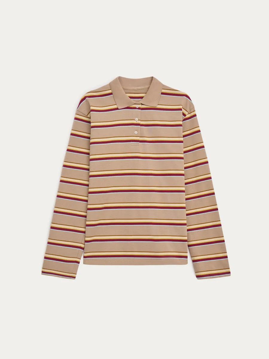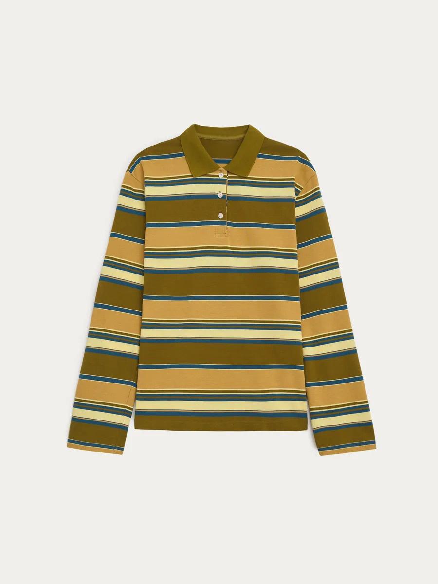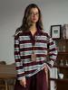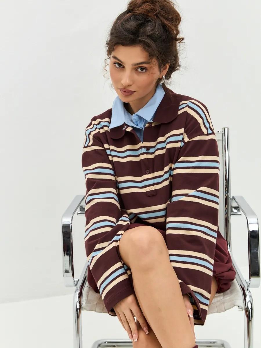 Camiseta de Rayas de Manga Larga Transfronteriza para Mujer Europea y Americana Primavera y Verano Nueva Camiseta Holgada con Cuello Polo Moderna Retro para Fondo