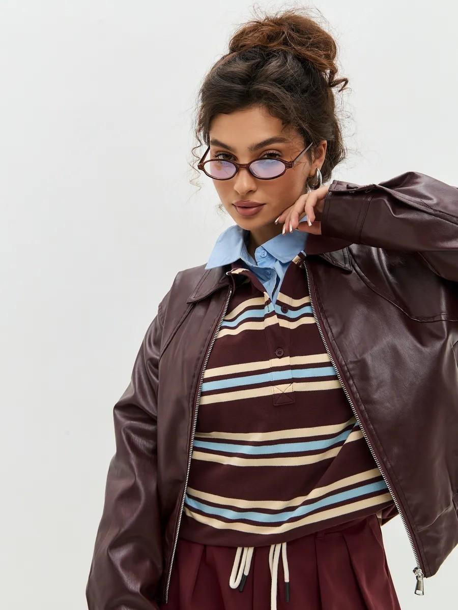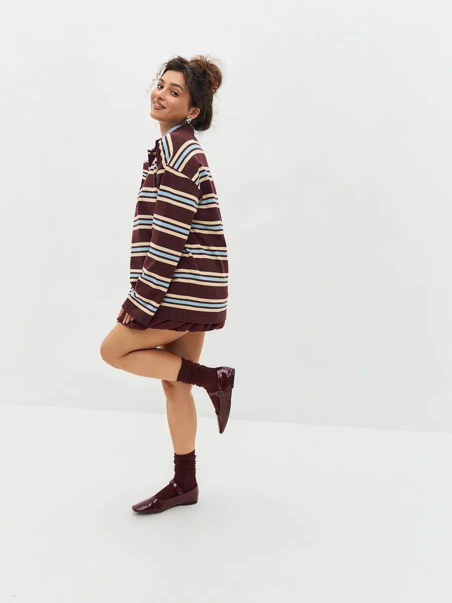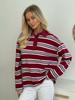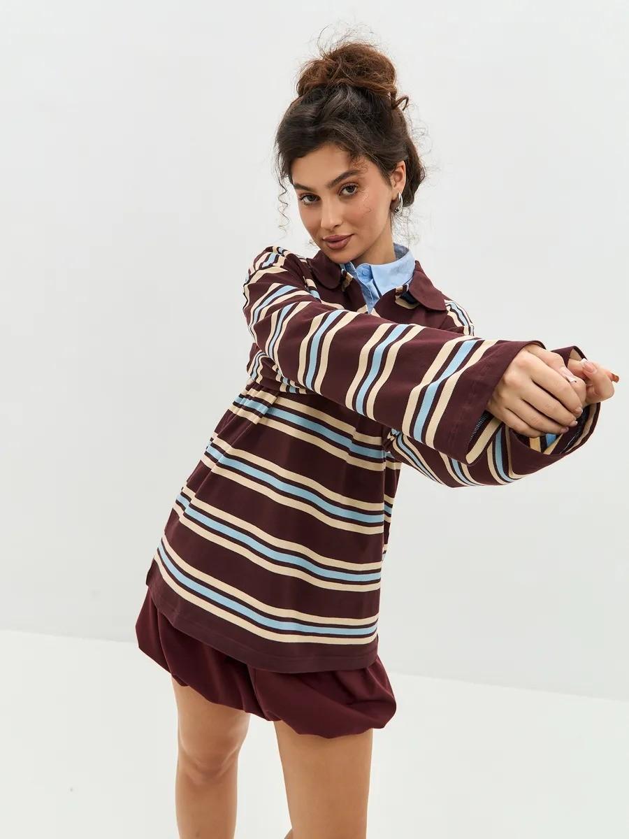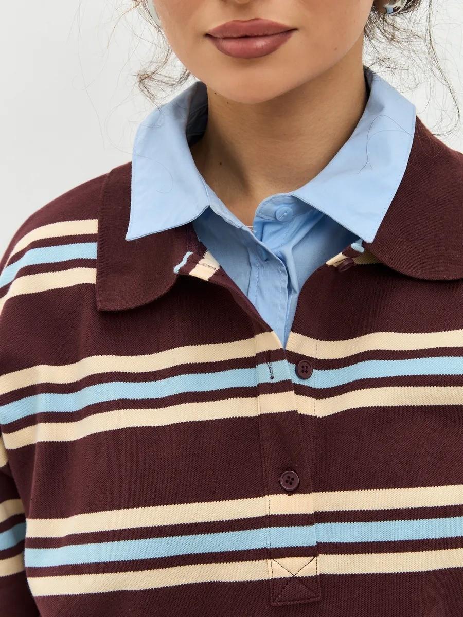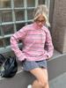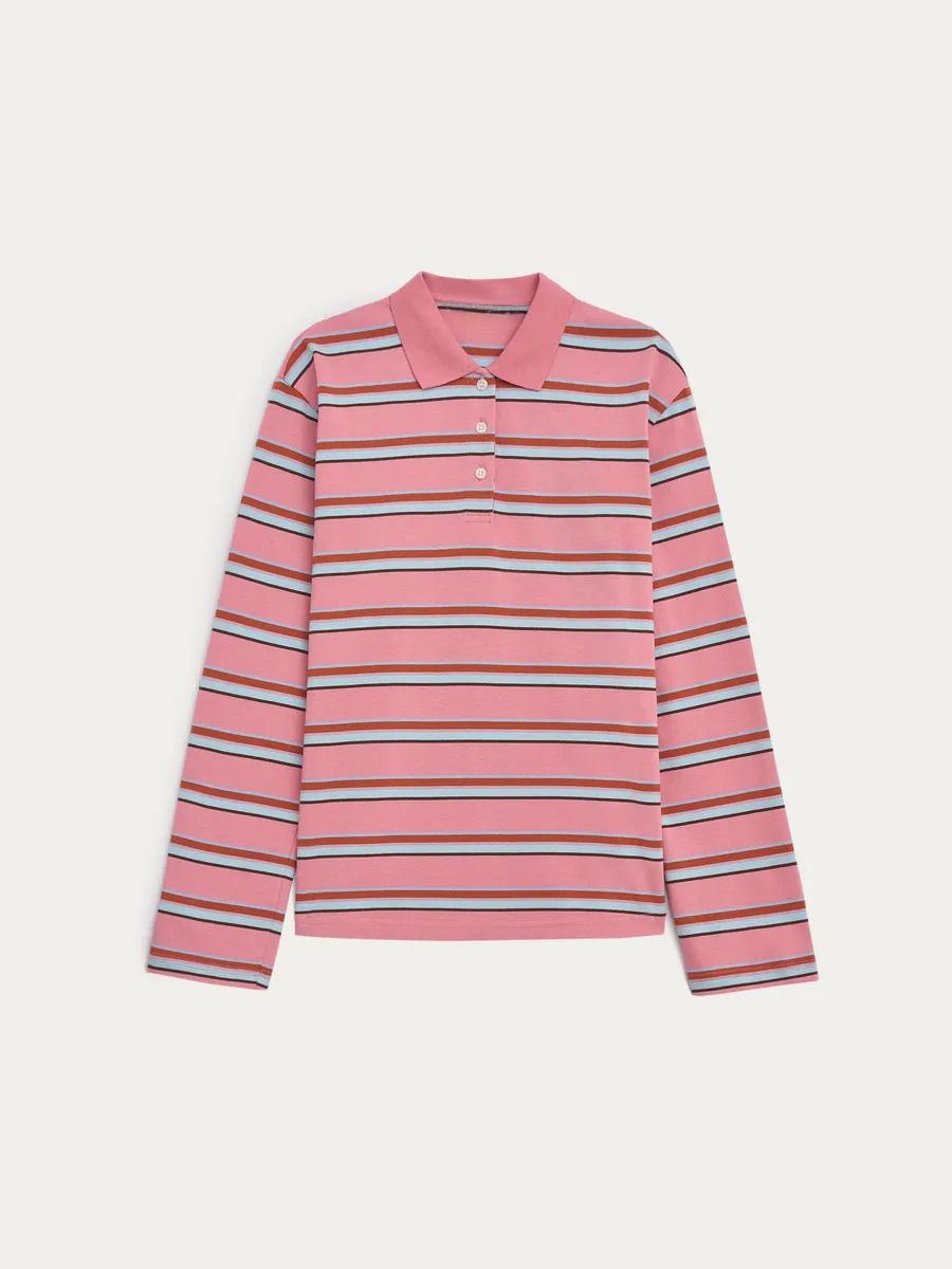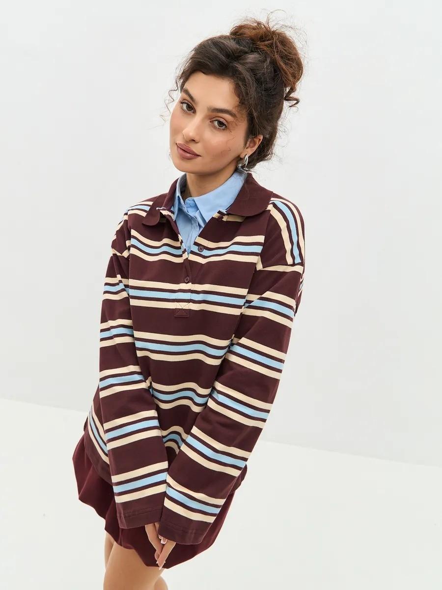 Camiseta de Rayas de Manga Larga Transfronteriza para Mujer Europea y Americana Primavera y Verano Nueva Camiseta Holgada con Cuello Polo Moderna Retro para Fondo