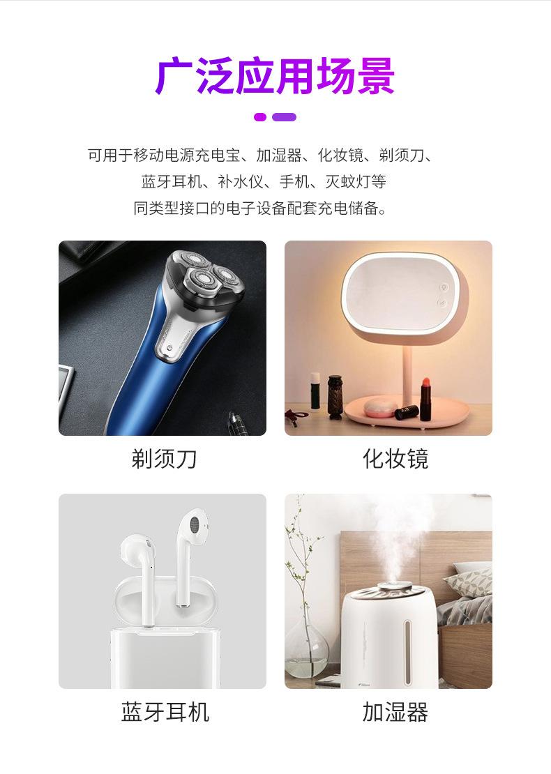 [Ámbito de aplicación]: Para batería externa móvil, humidificador, espejo de maquillaje, afeitadora, audífono Bluetooth, rociador de agua, teléfono móvil Samsung OPPO, lámpara repelente de mosquitos y otros dispositivos electrónicos con el mismo tipo de interfaz. Reserva: En stock. (El producto se envía sin embalaje. Si necesita embalaje, ¡¡¡póngase en contacto con el servicio de atención al cliente para comprar!!!