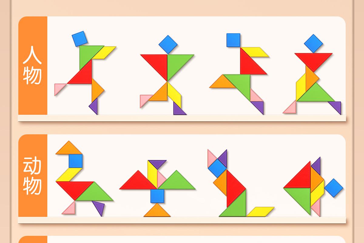 Rompecabezas Tangram Educativo de Madera y Colores para Estudiantes de Primaria, Material Didáctico de Matemáticas para Niños de Primer Grado, Juguetes de Rompecabezas Intelectuales