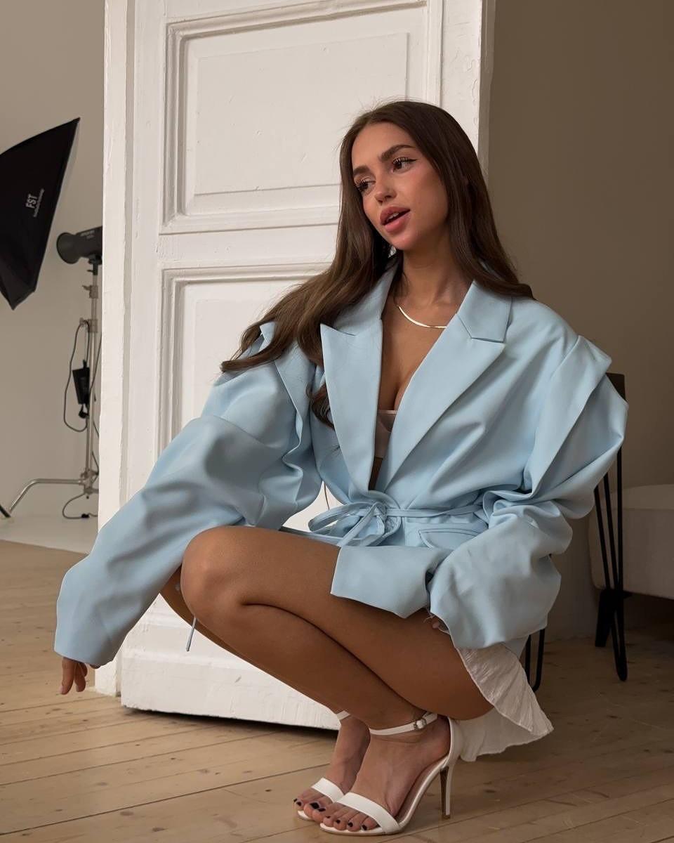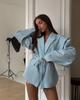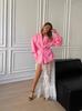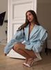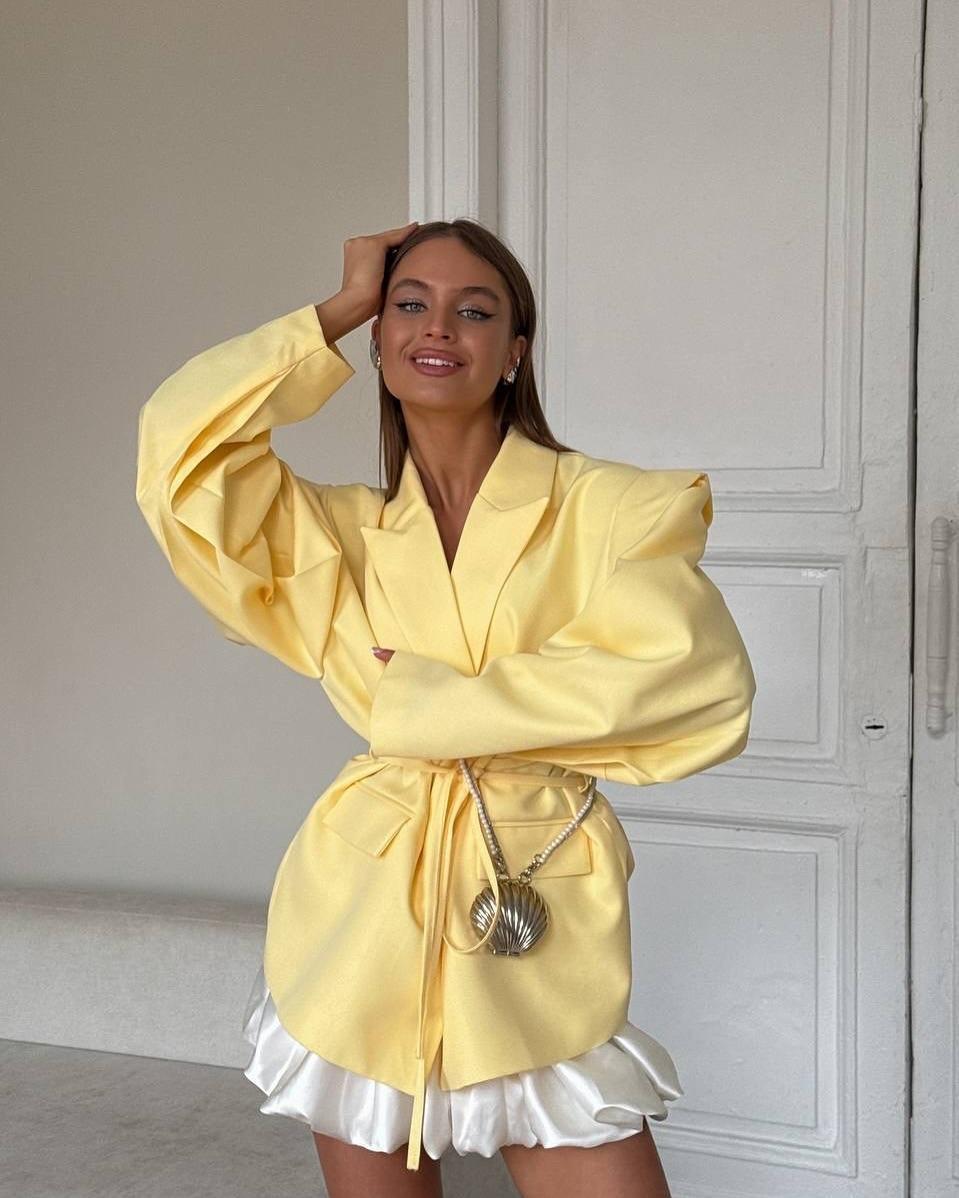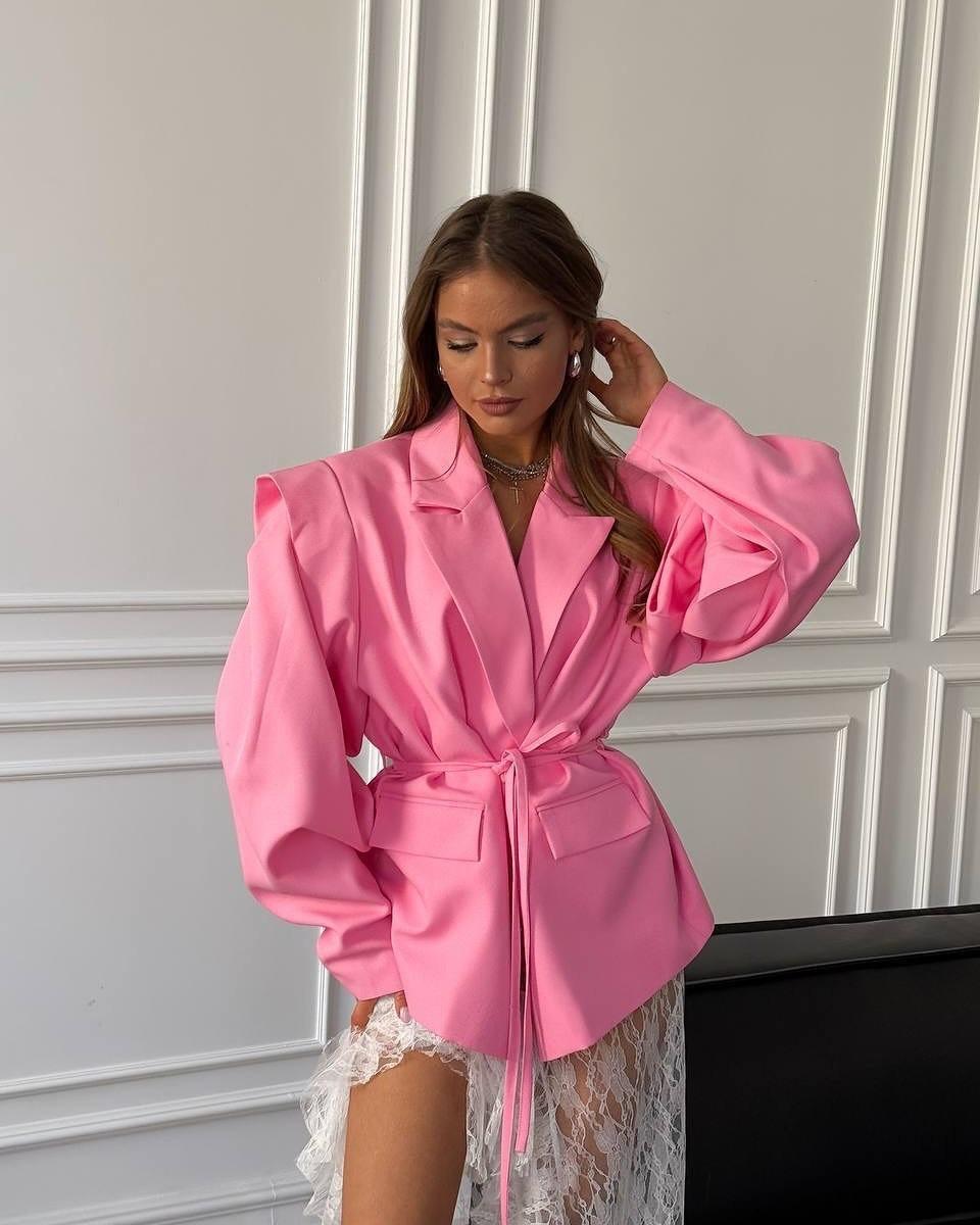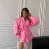 Diseño de Ropa de Mujer Transfronteriza Europea y Americana 2025 Traje con Hombreras con Cordones Color Puro Elegante Chaqueta Cintura para Mujer