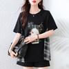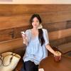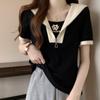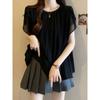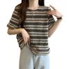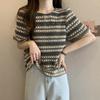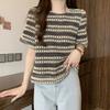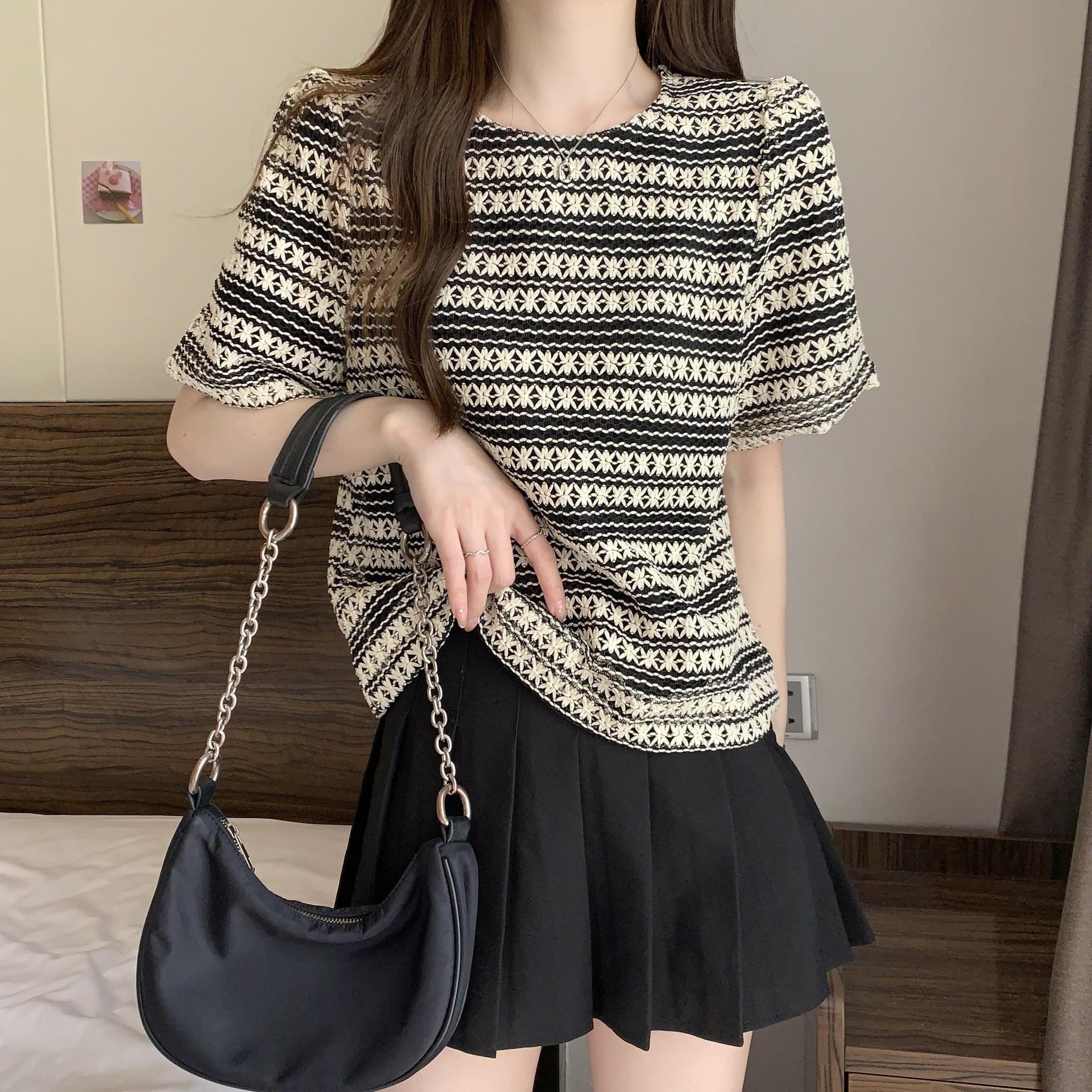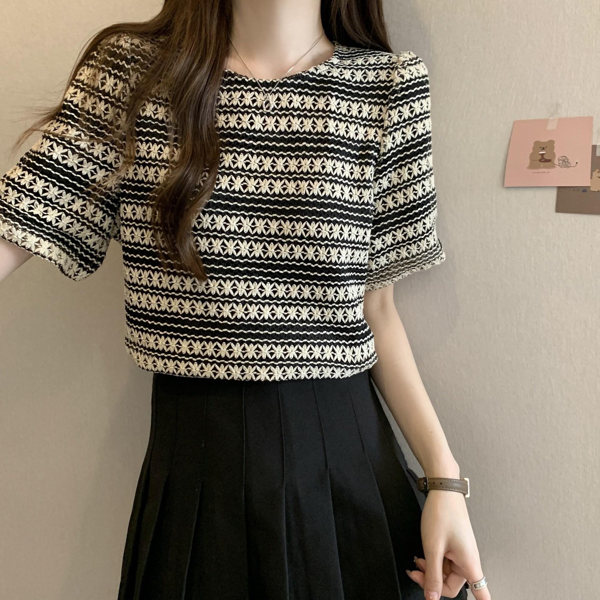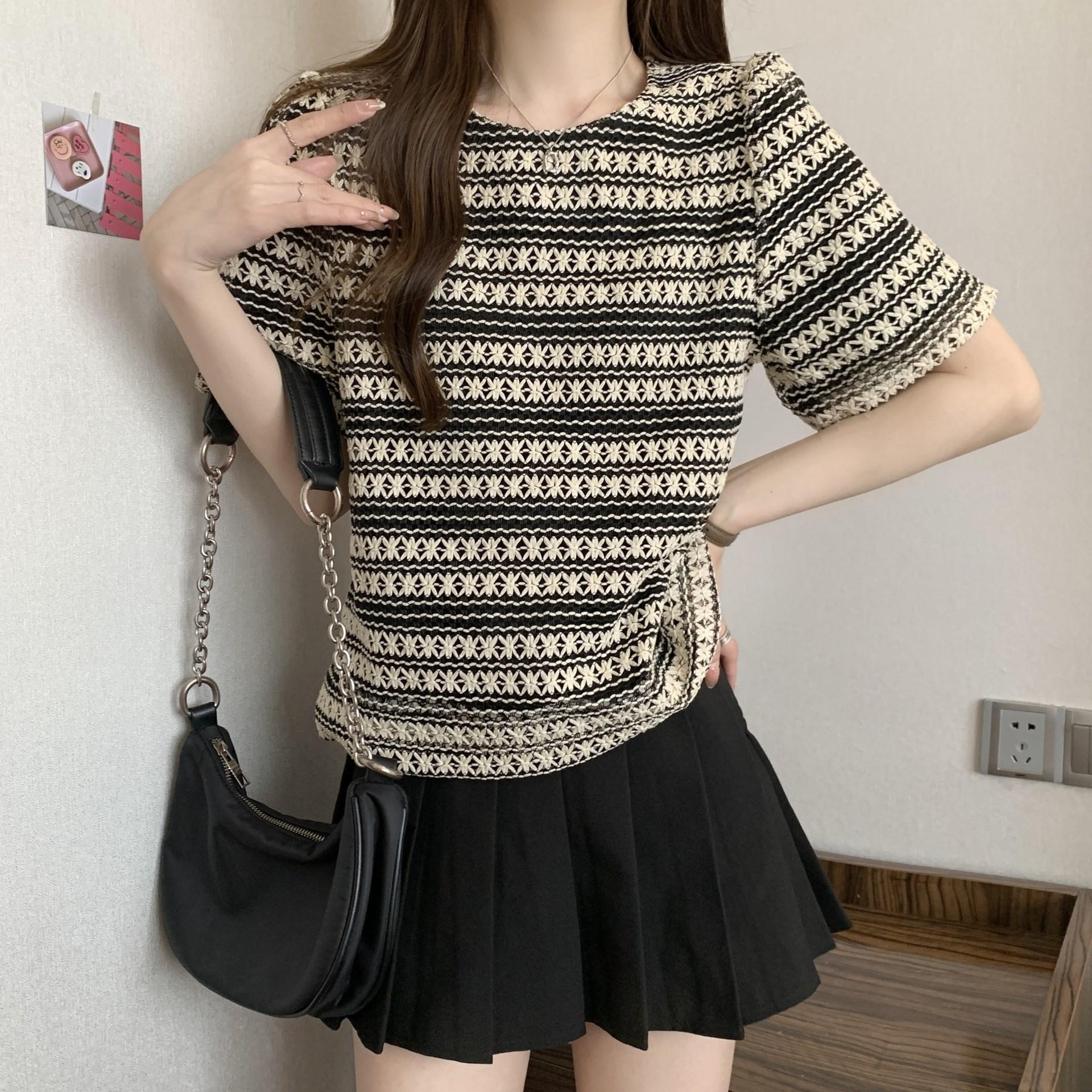 Camiseta de Manga Corta con Rayas Francesas para Mujer Verano Talla Grande Cubre Gorditos Adelgazante Abdomen Encaje Retro