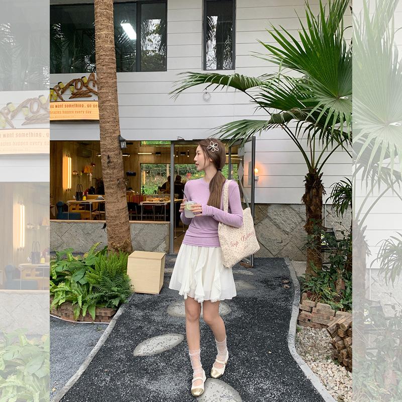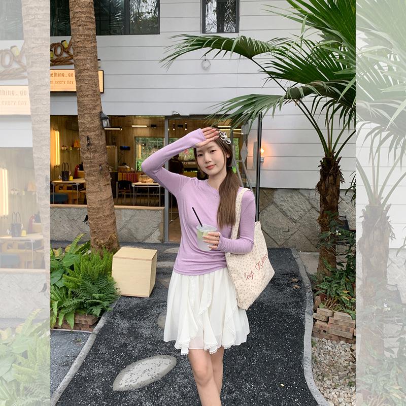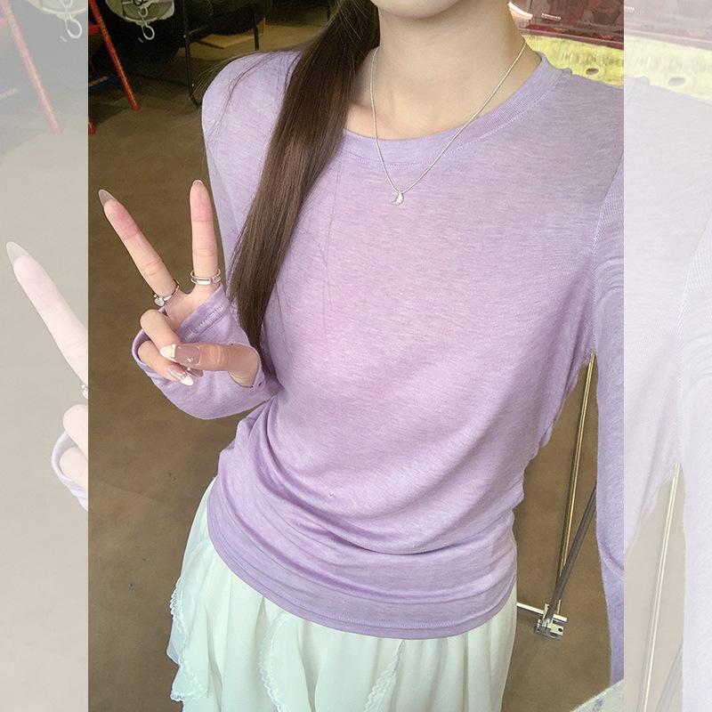 Color Sólido Estilo Perezoso Moda Mujer 2025 Primavera y Verano Nuevo Cuello Redondo Combinable Protector Solar Camiseta Base Top