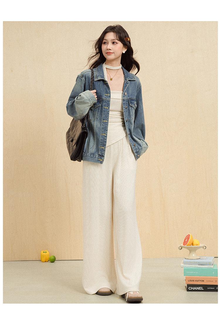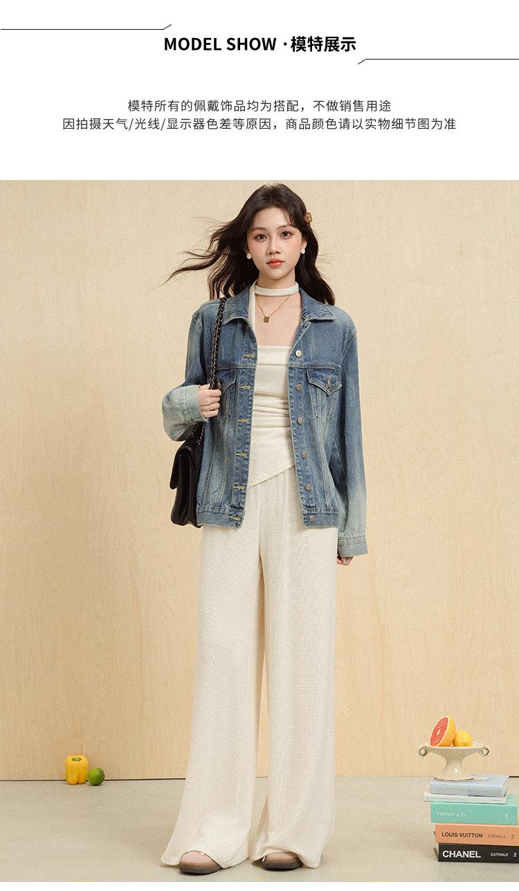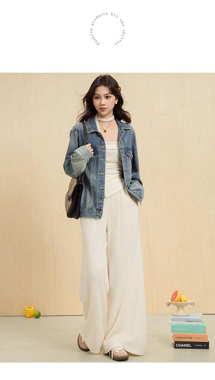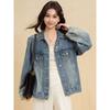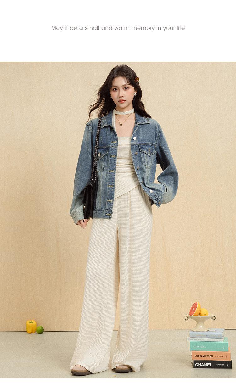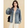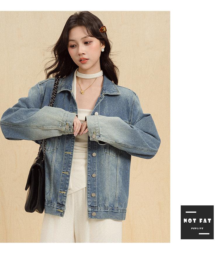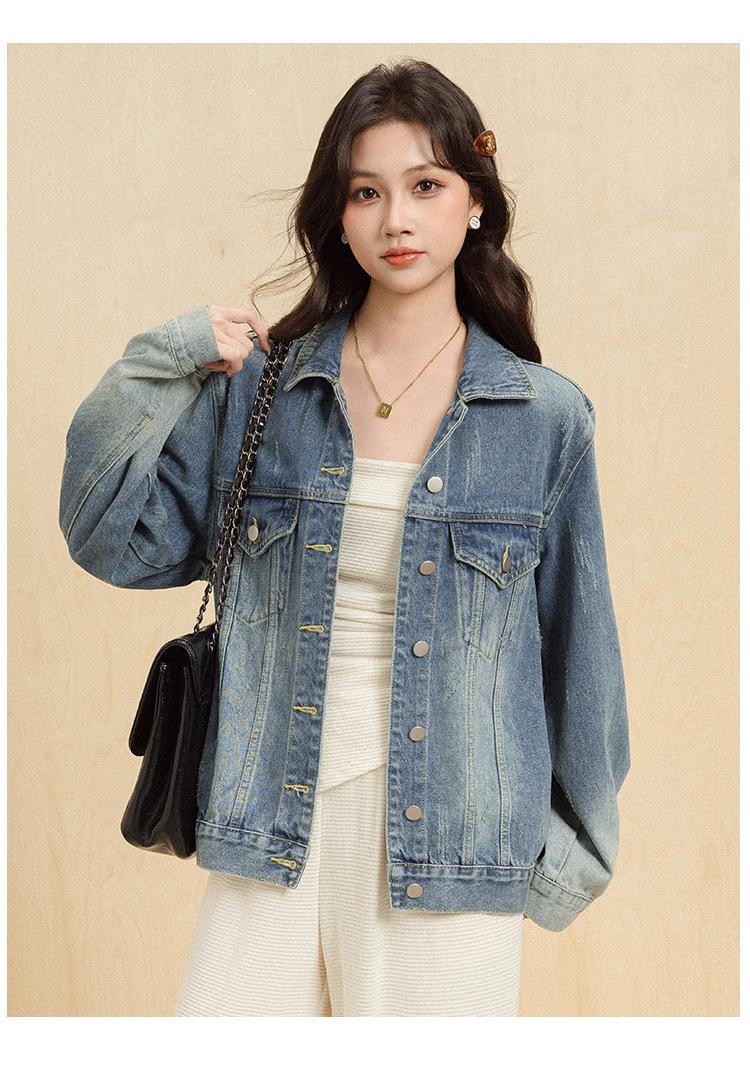 2025 Otoño Nuevo Estilo Coreano Tendencia Retro Versátil Lavado Desgastado Cuello Vuelto Versátil Estilo Hong Kong Chaqueta de Mezclilla Mujer