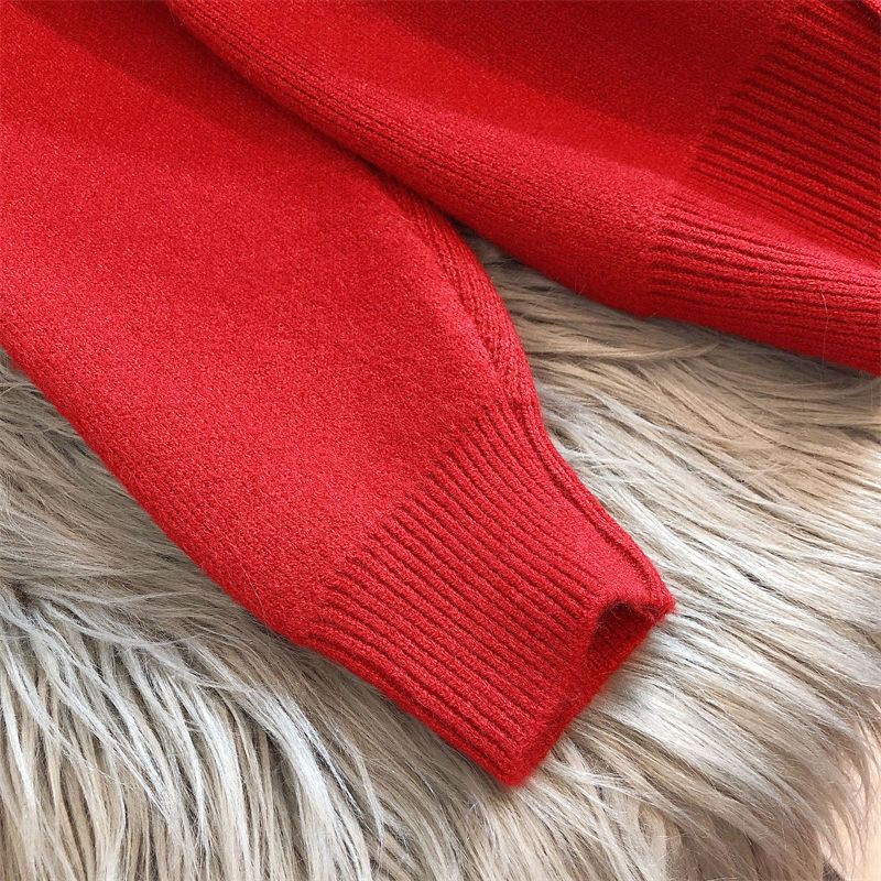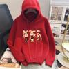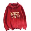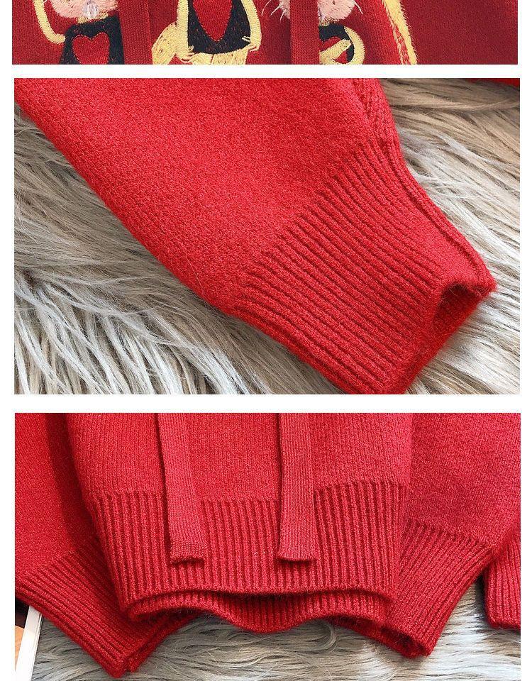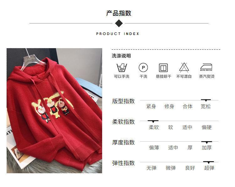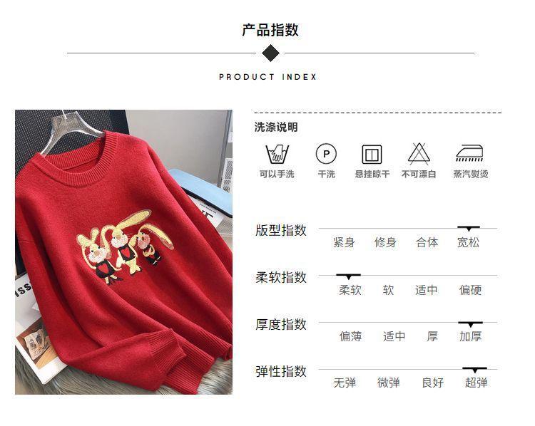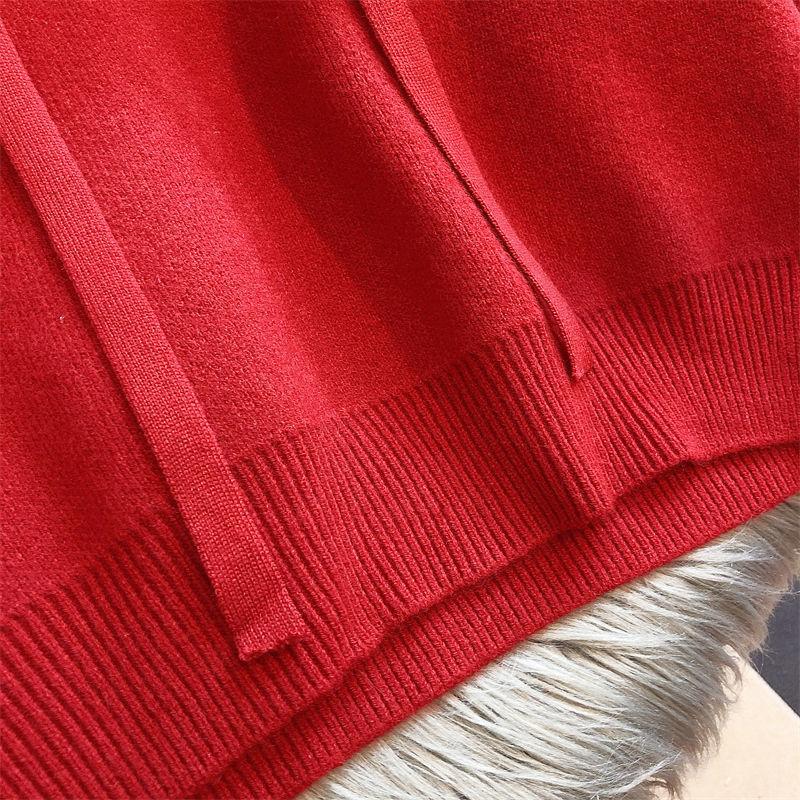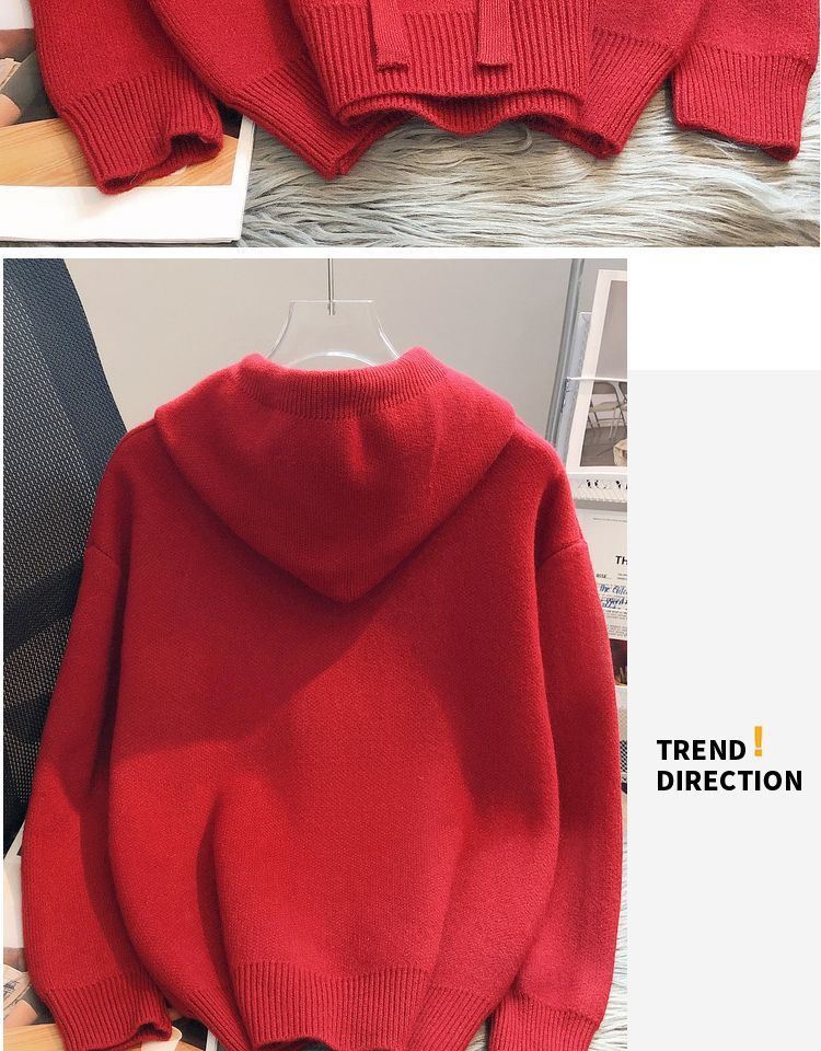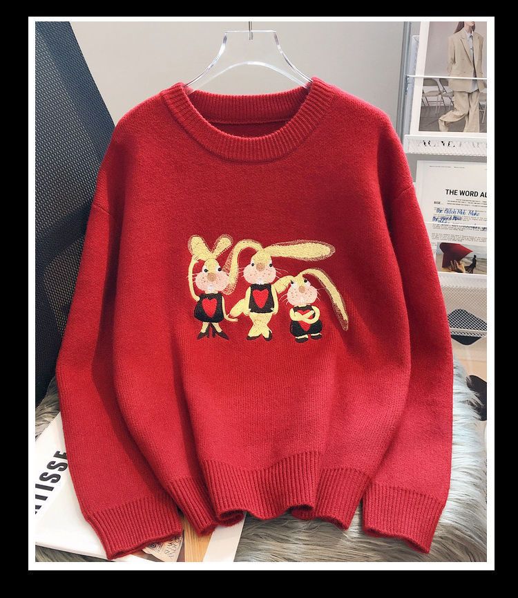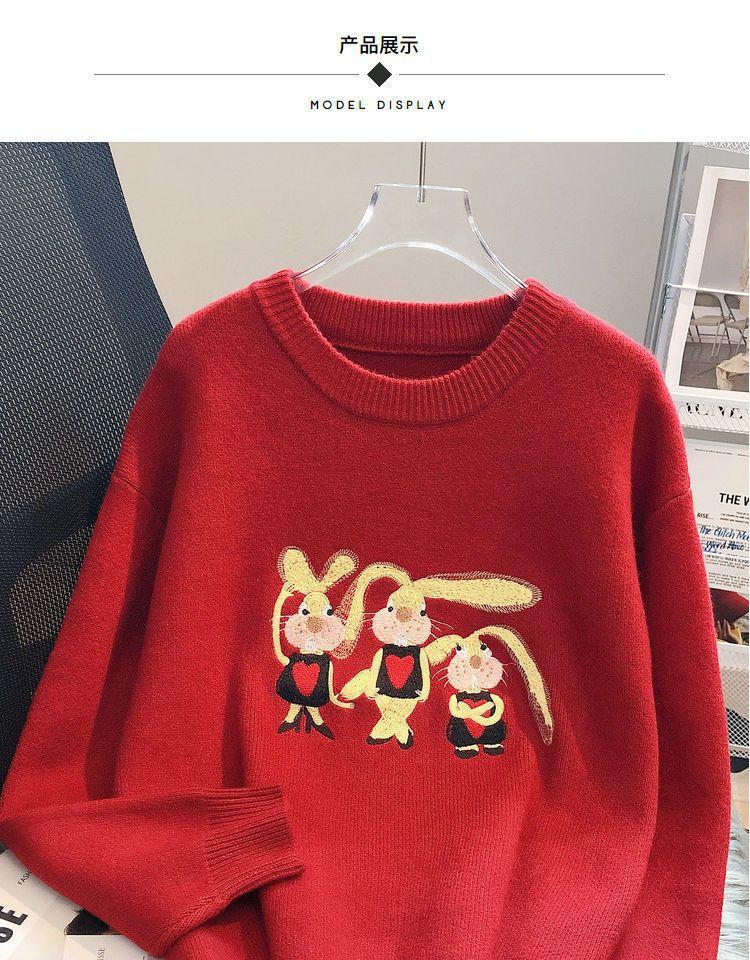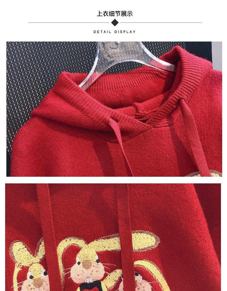 Suéter Rojo para Mujer con Capucha Otoño e Invierno de Alta Calidad Jersey Nuevo Suelto Dibujo Animado Conejo Ropa Exterior Suéter Tejido Top Engrosado