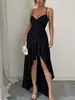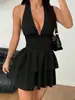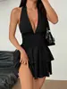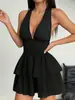 Europeo y Americano Nuevo 2025 Color Sólido Sexy Estilo Deseo Puro Moda Adelgazante Profundo V Espalda Descubierta Tirante Halter Vestido de Verano