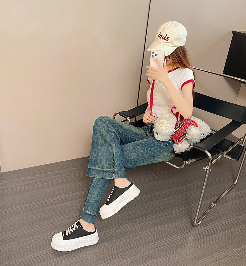 Plataforma Suela Gruesa Puntera Media Copa Versátil Aumenta Altura Sin Tacón Zapatos Casuales para Personas Pequeñas