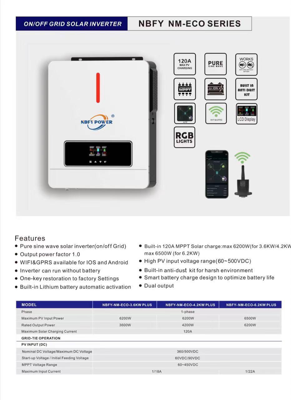 Inversor Solar On Off Grid 6.2Kw 48V120A Mppt Híbrido Solar