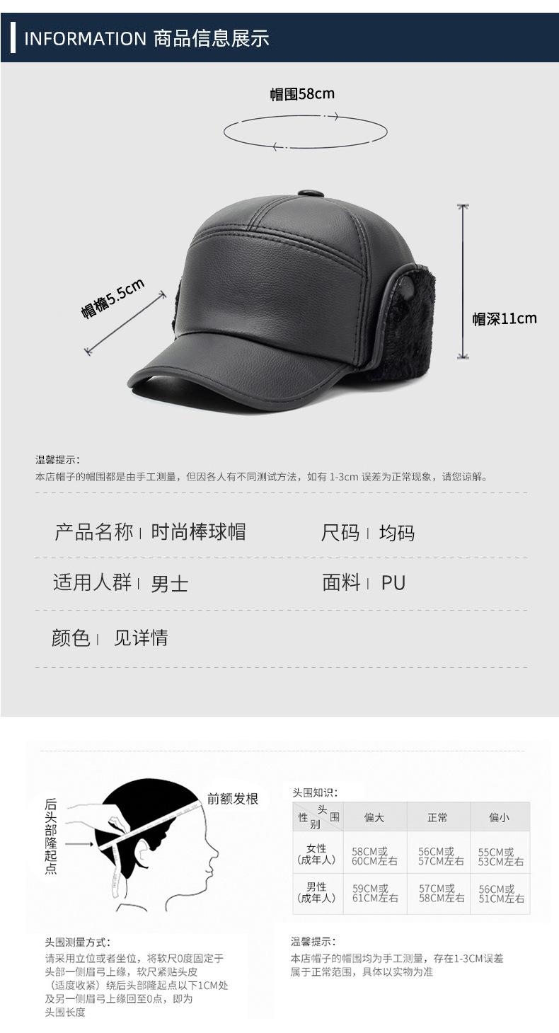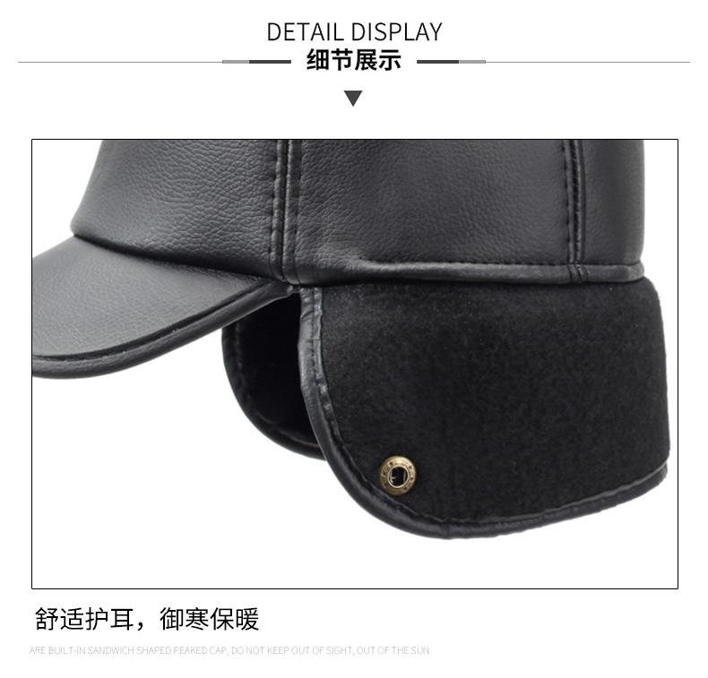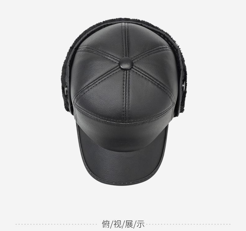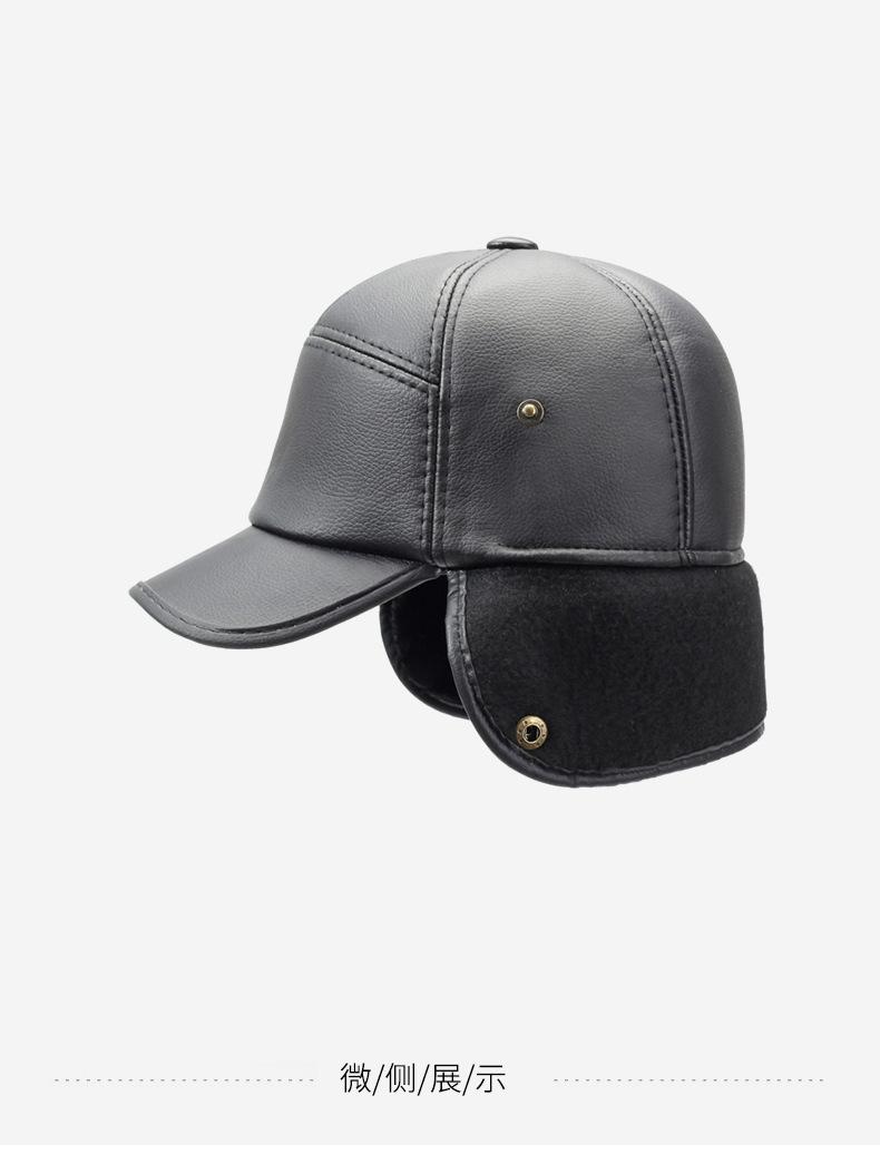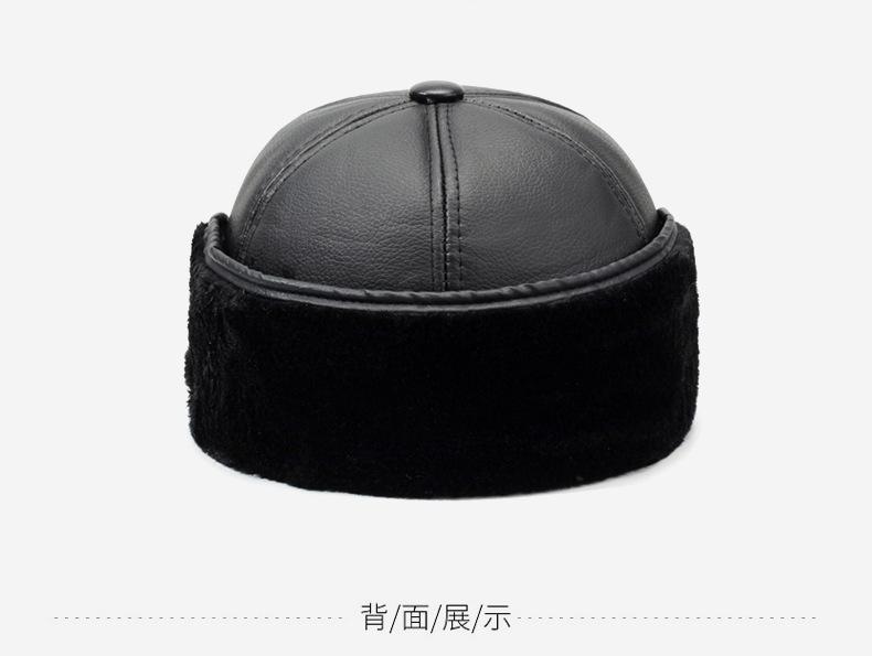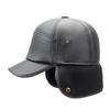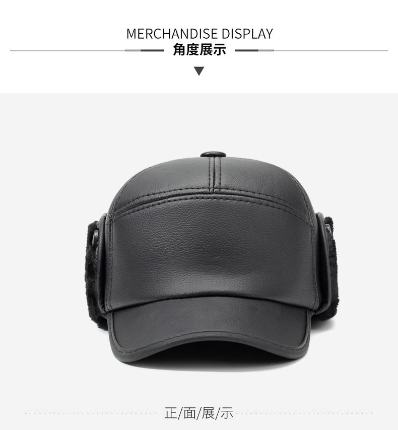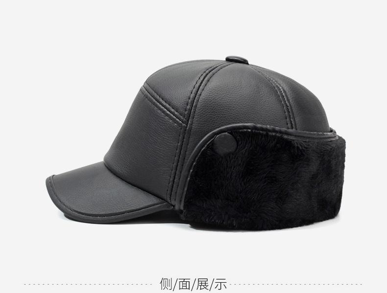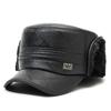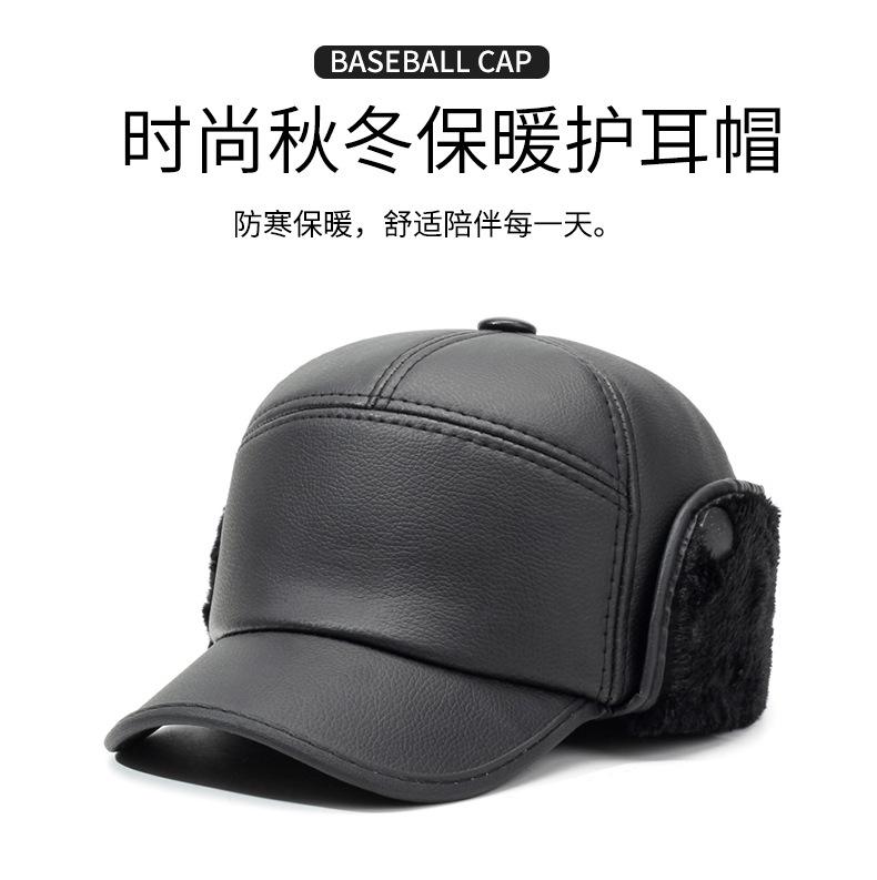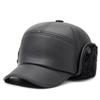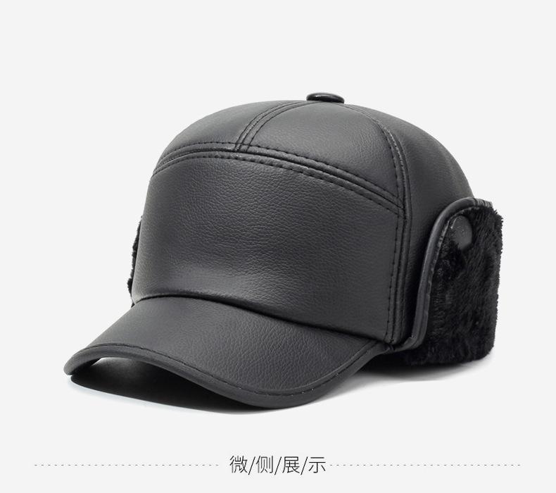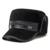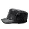 Sombrero para personas de mediana edad y ancianos, sombrero cálido de cuero PU, sombrero para anciano, otoño e invierno, abuelo, anciano, sombrero de algodón, forrado de vellón, grueso, protección para las orejas, gorra plana
