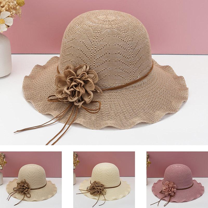 Sombrero de Sol Protección Solar Sombrero de Paja Nuevo Primavera y Verano Sombrero Protección Solar Sombrero Sombrilla Lazo