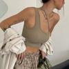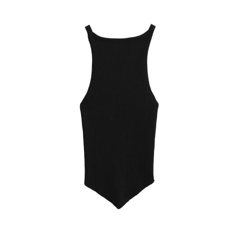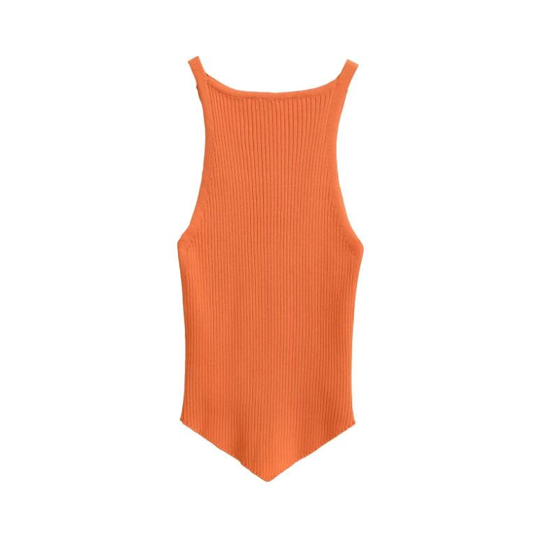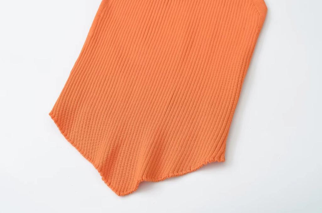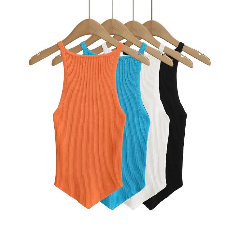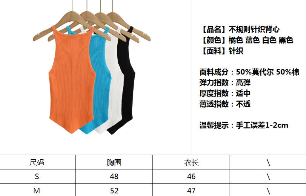 25 Nuevo Verano para Mujer Americano Color Puro Asimétrico Tejido Camisola Ropa Interior Chica Caliente Top para Fondo