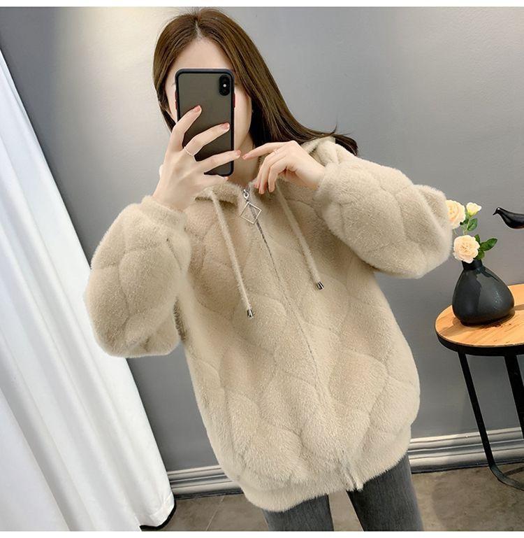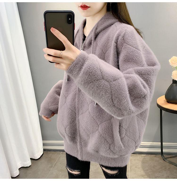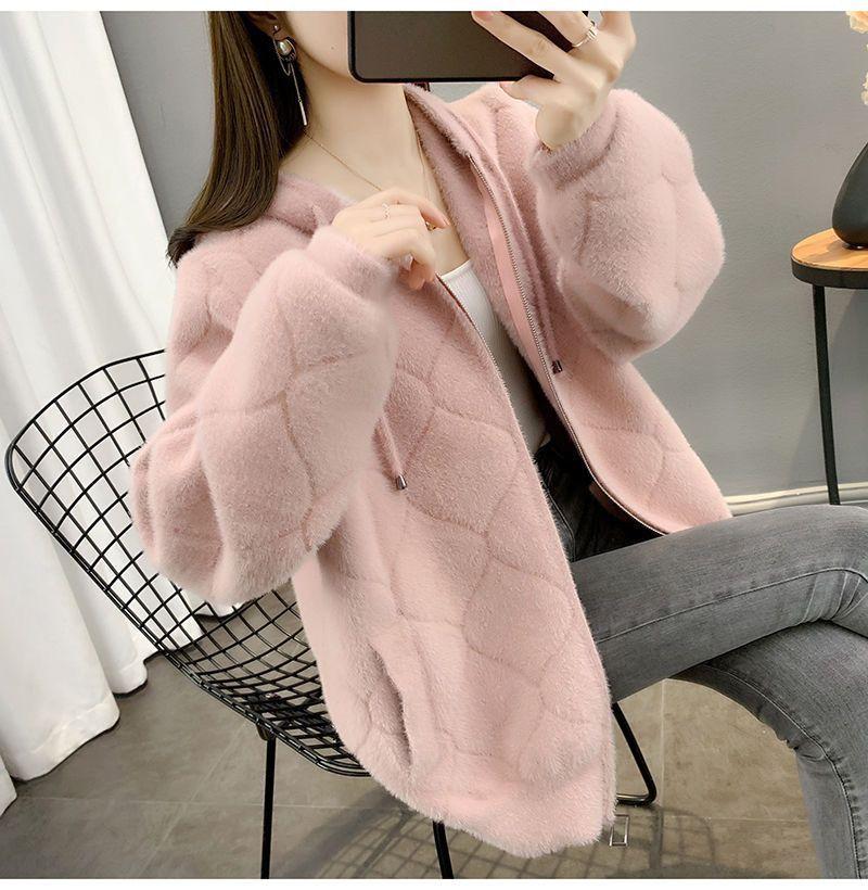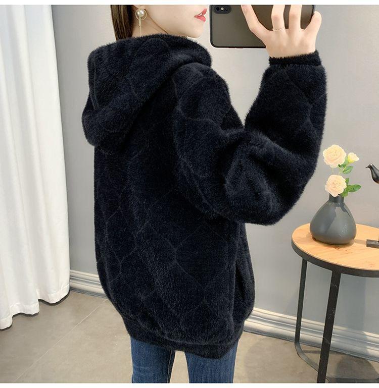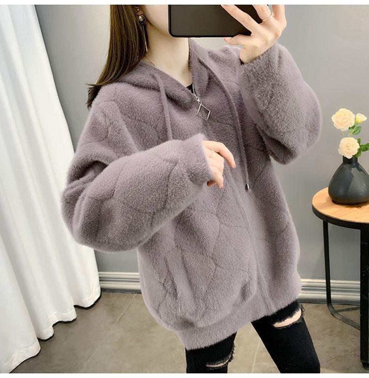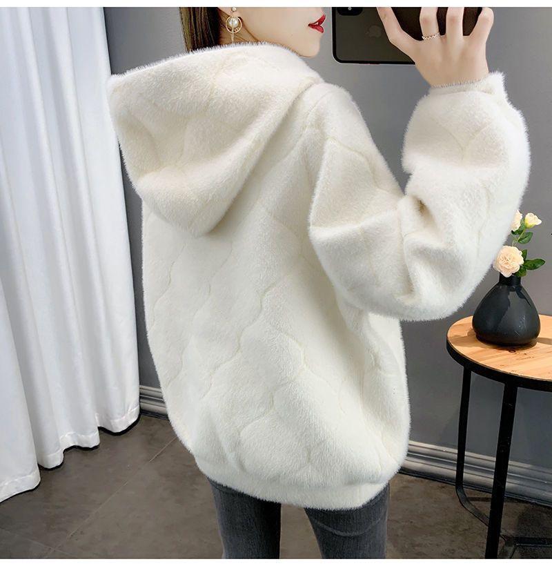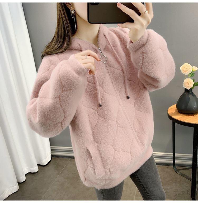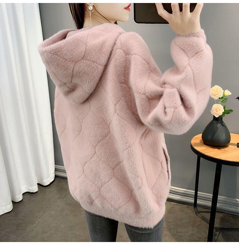 Otoño e Invierno nuevo abrigo de forro polar de visón para mujer abrigo de suéter holgado grueso con capucha estilo coreano para mujer estilo coreano