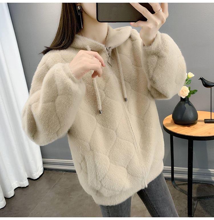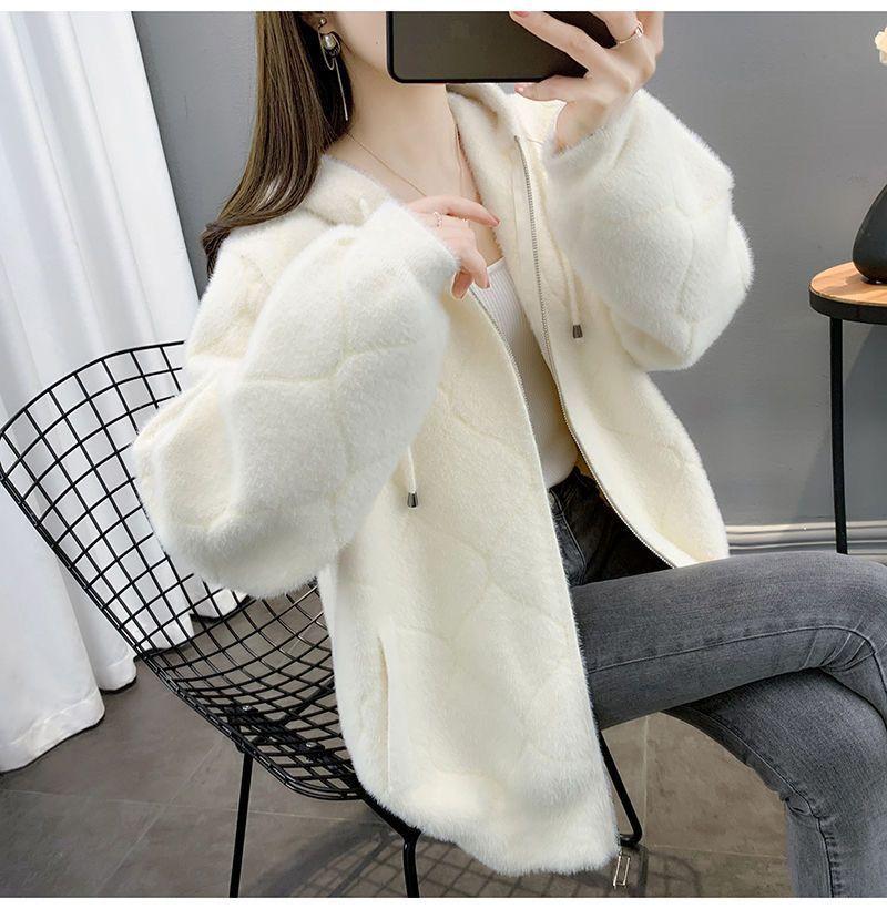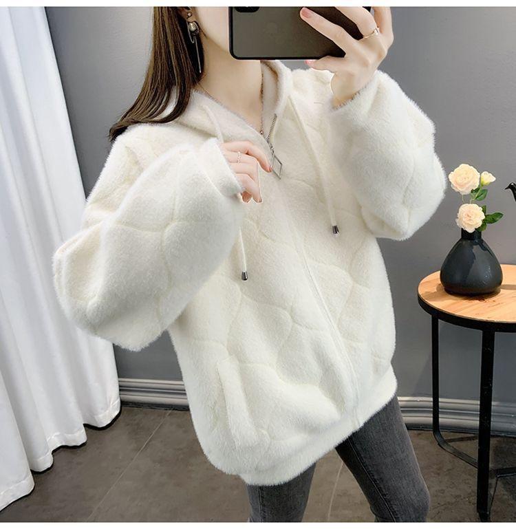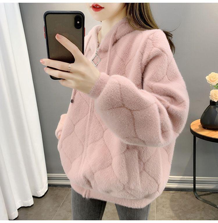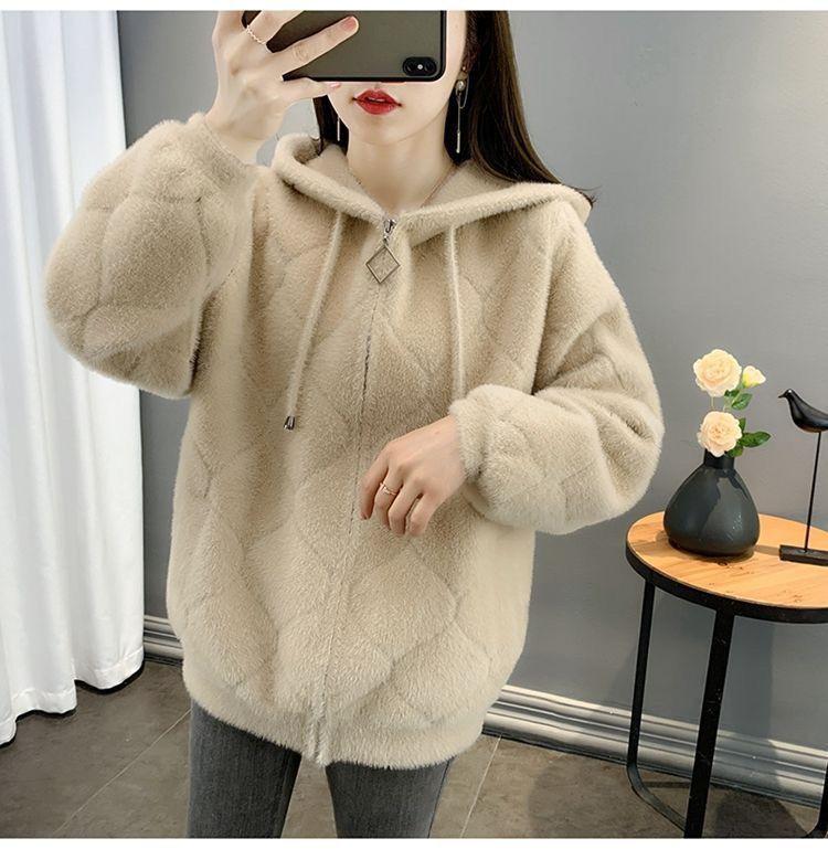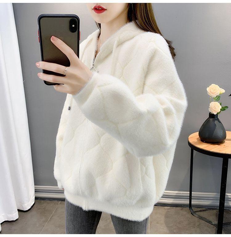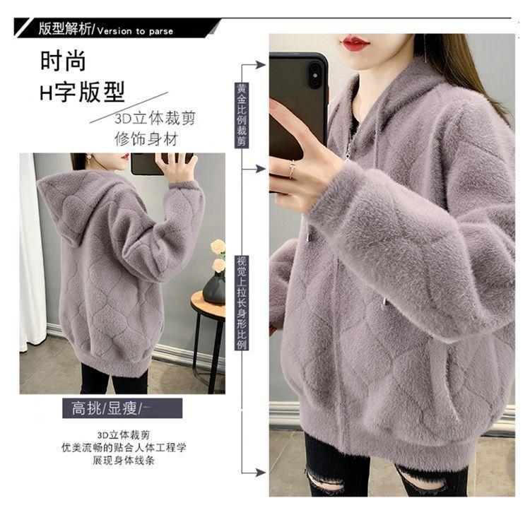 Otoño e Invierno nuevo abrigo de forro polar de visón para mujer abrigo de suéter holgado grueso con capucha estilo coreano para mujer estilo coreano