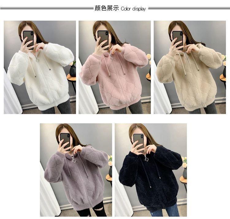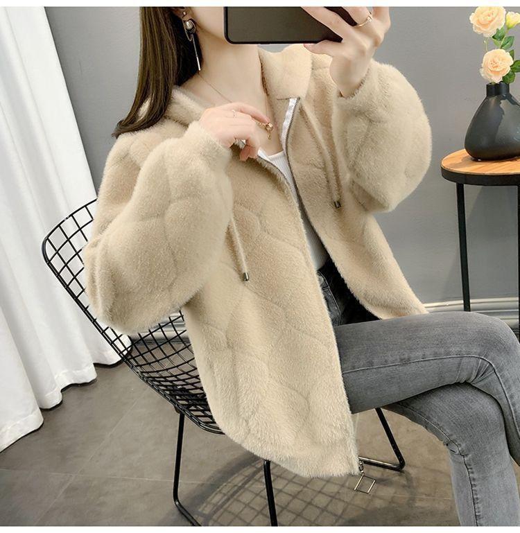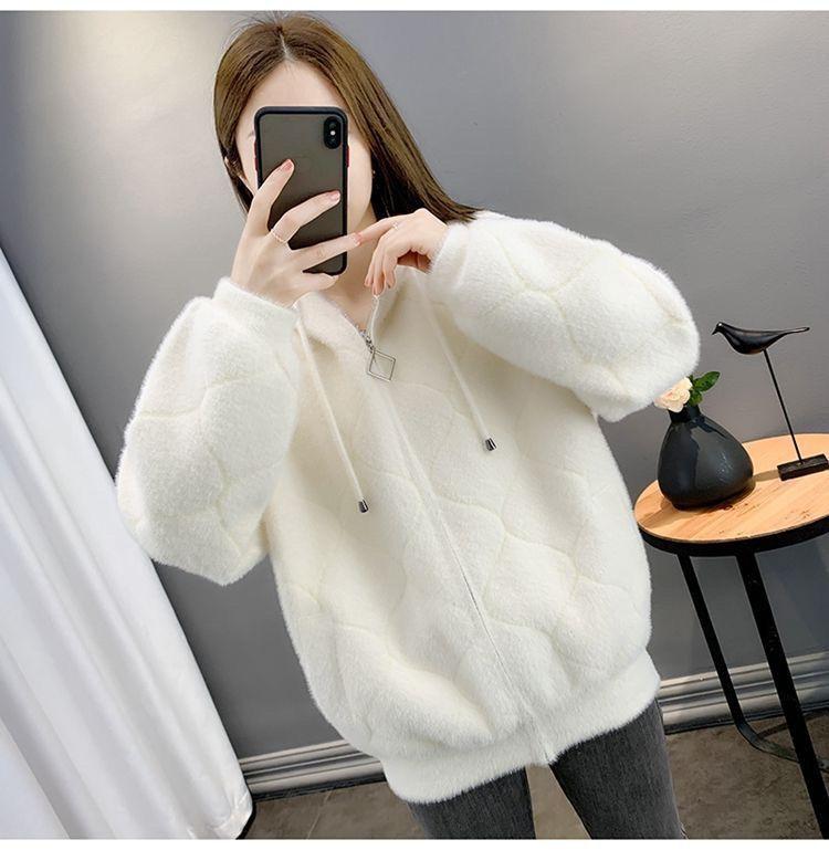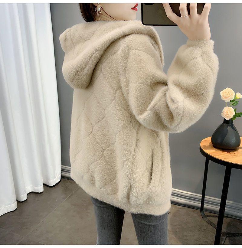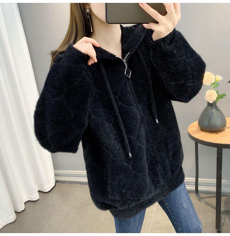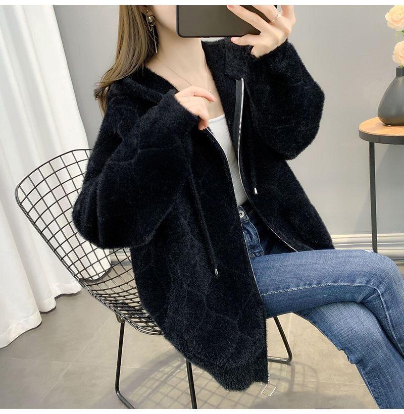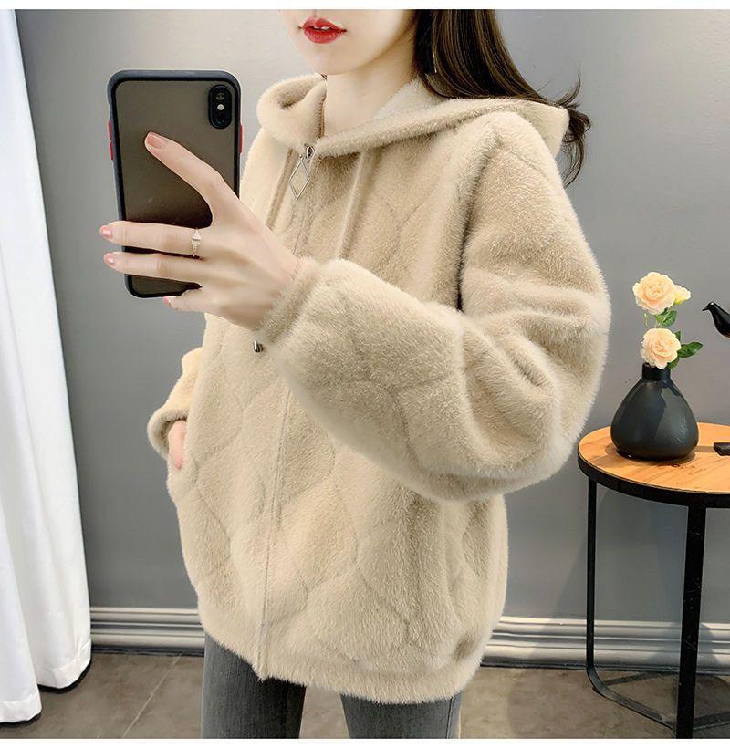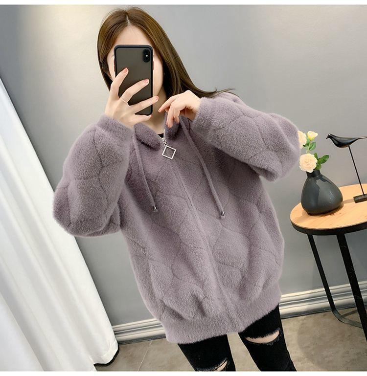 Otoño e Invierno nuevo abrigo de forro polar de visón para mujer abrigo de suéter holgado grueso con capucha estilo coreano para mujer estilo coreano