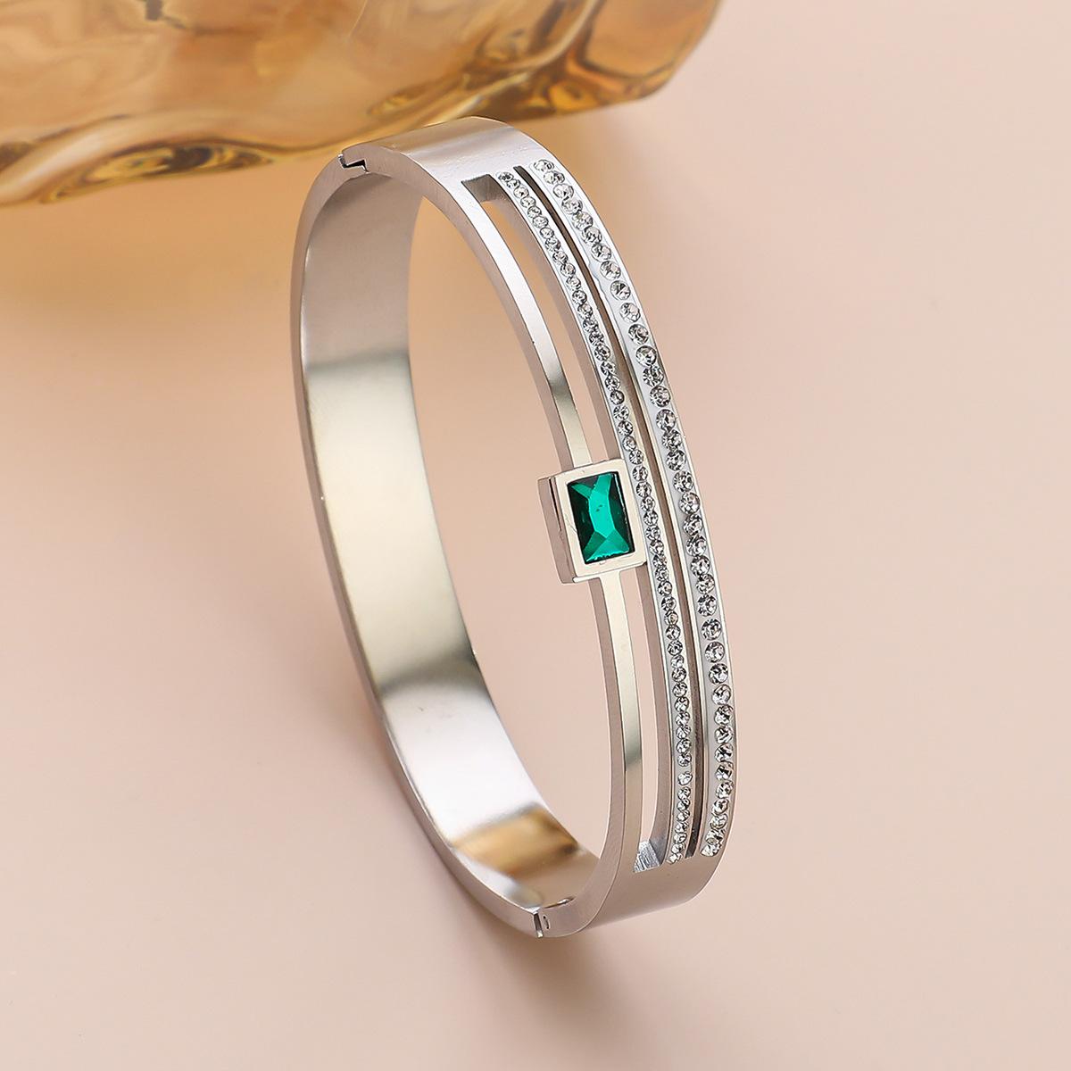 Pulsera de Acero Titanio para Mujer Nueva Pulsera de Diseño Rojo Neto con Diamantes Moda Simple Estilo Europeo y Americano Sensación de Alta Gama Pulsera de Acero Inoxidable