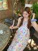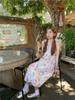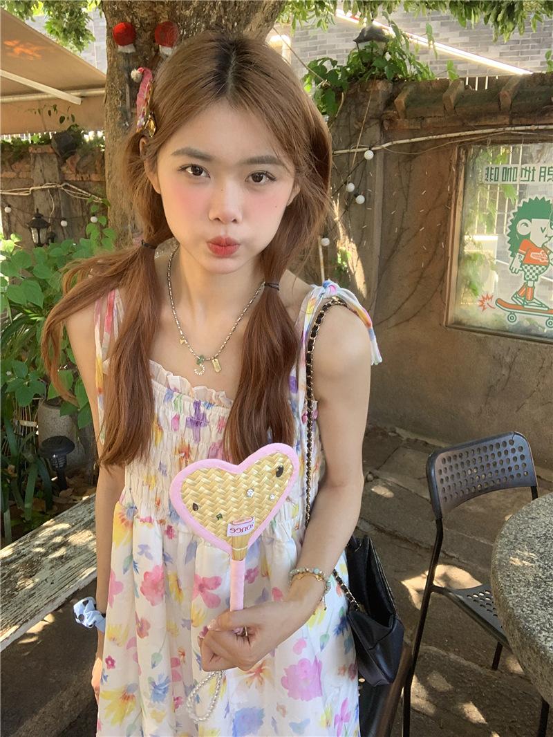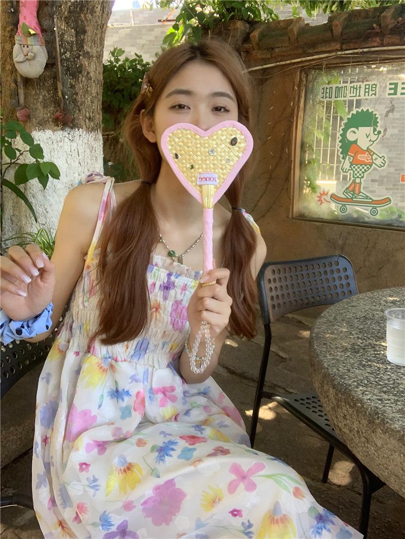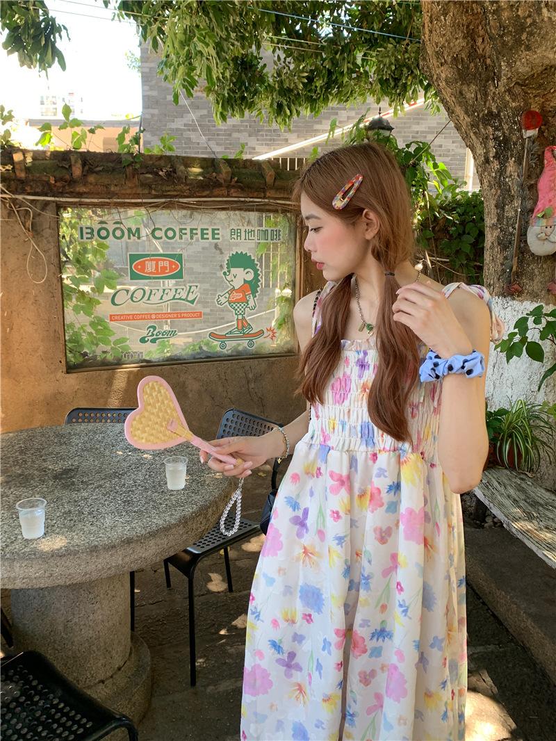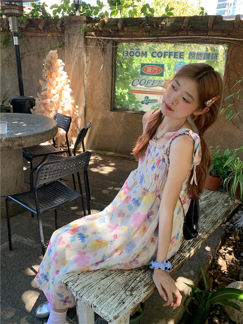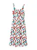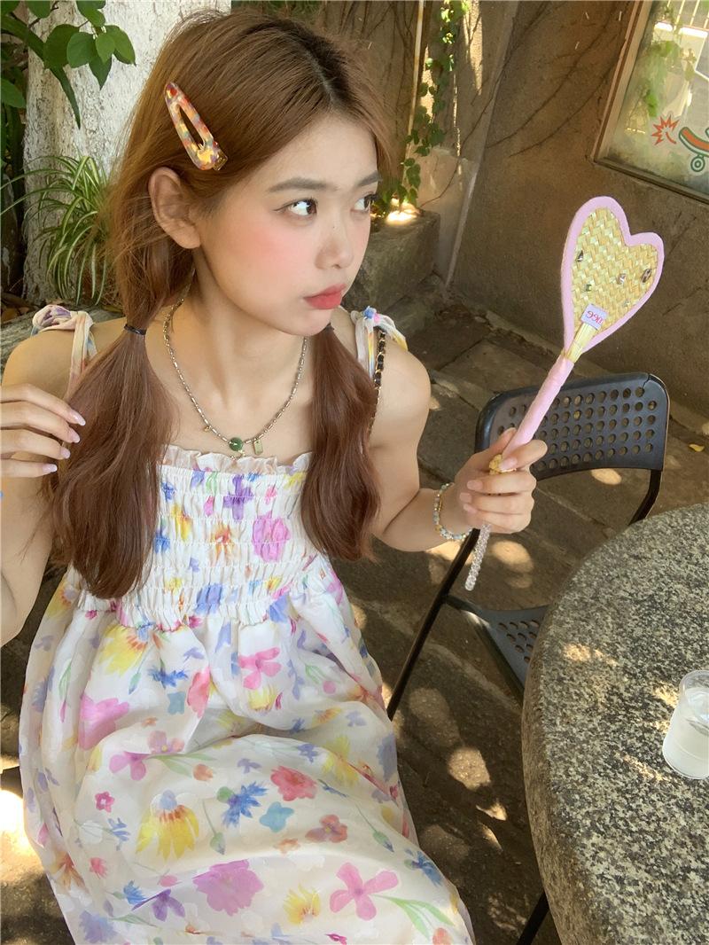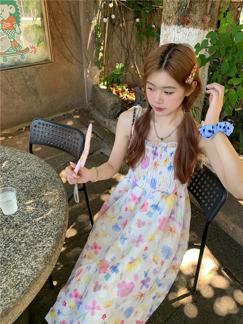 Vestido floral dulce y delicado con tirantes finos para mujer, verano, chica dulce picante, vacaciones, vestido línea A, vestido chic de largo medio