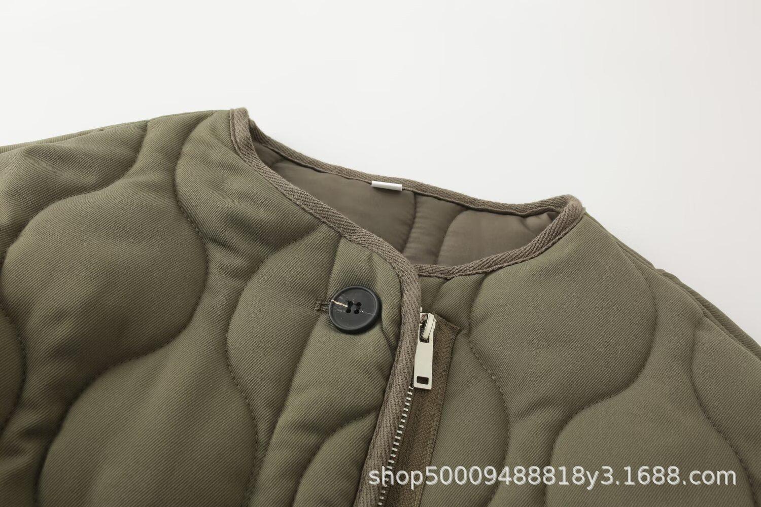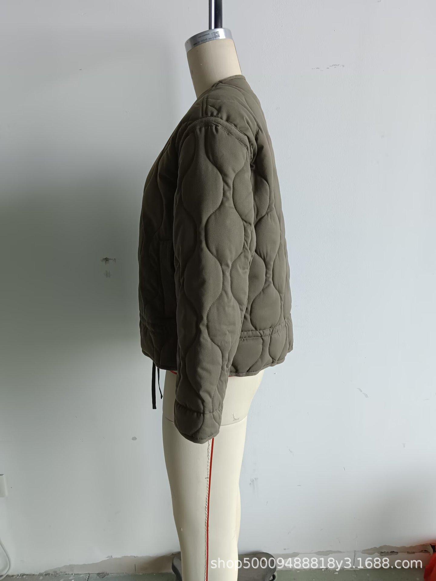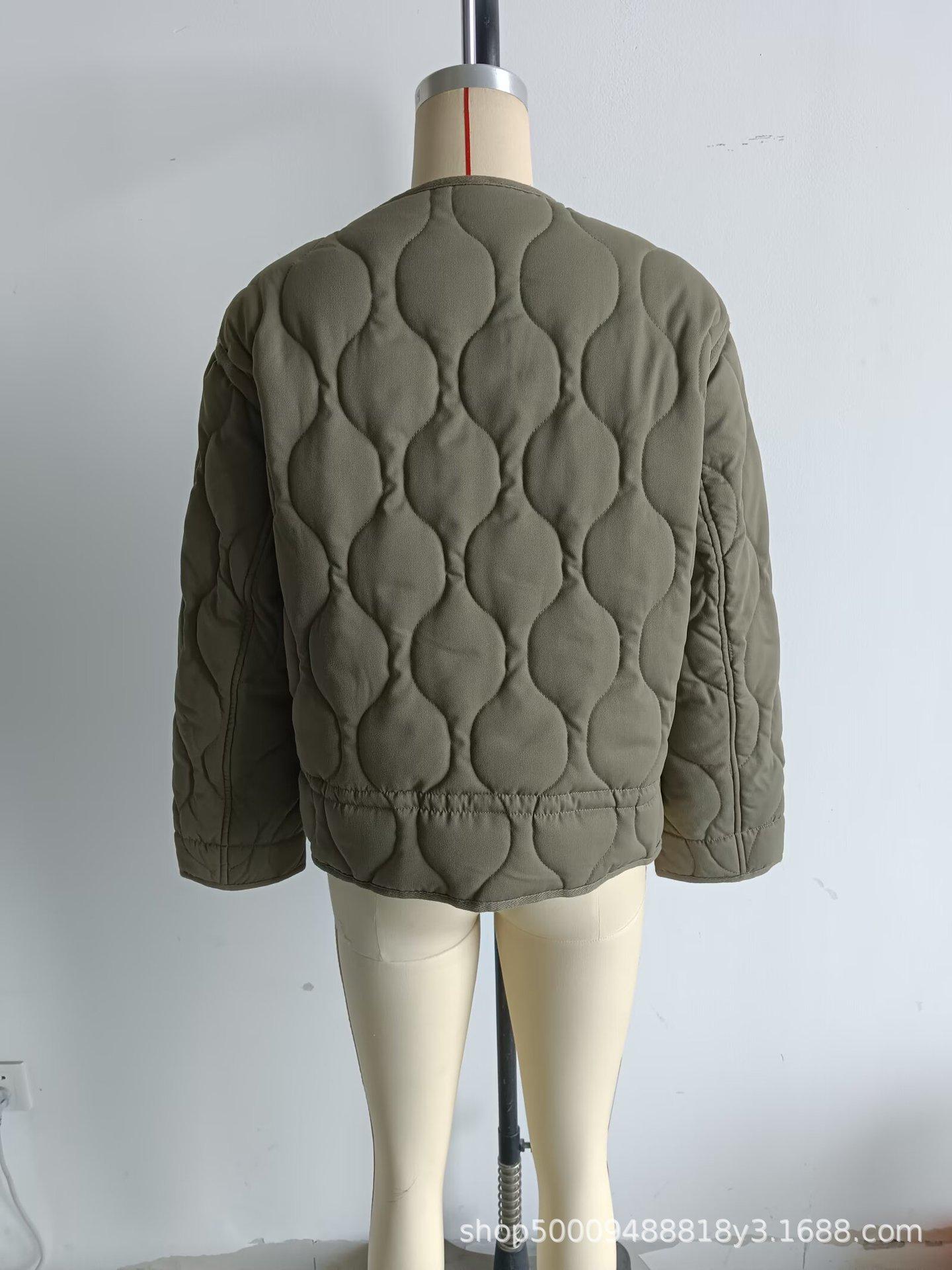 Ropa de mujer de comercio exterior transfronterizo 2025 otoño e invierno nuevo europeo y americano cuello redondo manga larga holgado cálido abrigo de algodón chaqueta de algodón