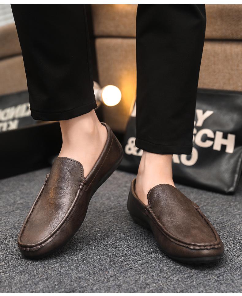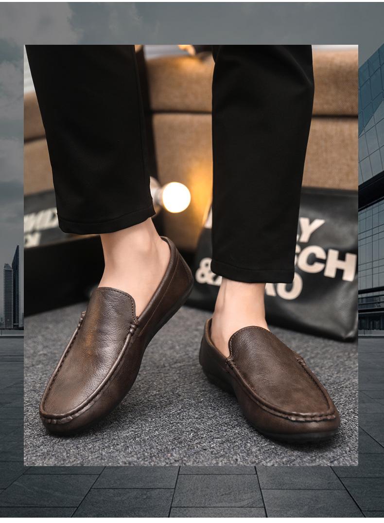 Mocasines para Hombre Slip-On Casual Versátiles Zapatos con Superficie de Cuero, Mocasines de Conducción Transpirables de Ante, Mocasines Lazy