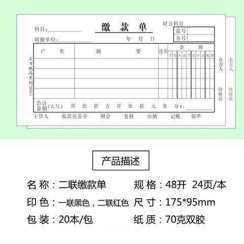 Comprobante Principal de Contabilidad 48K Boleta de Pago Universal de Dos Partes Suministros Financieros Documento de Casa de Renta Cuenta Contable