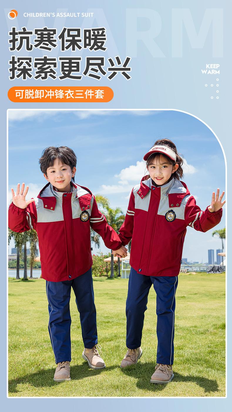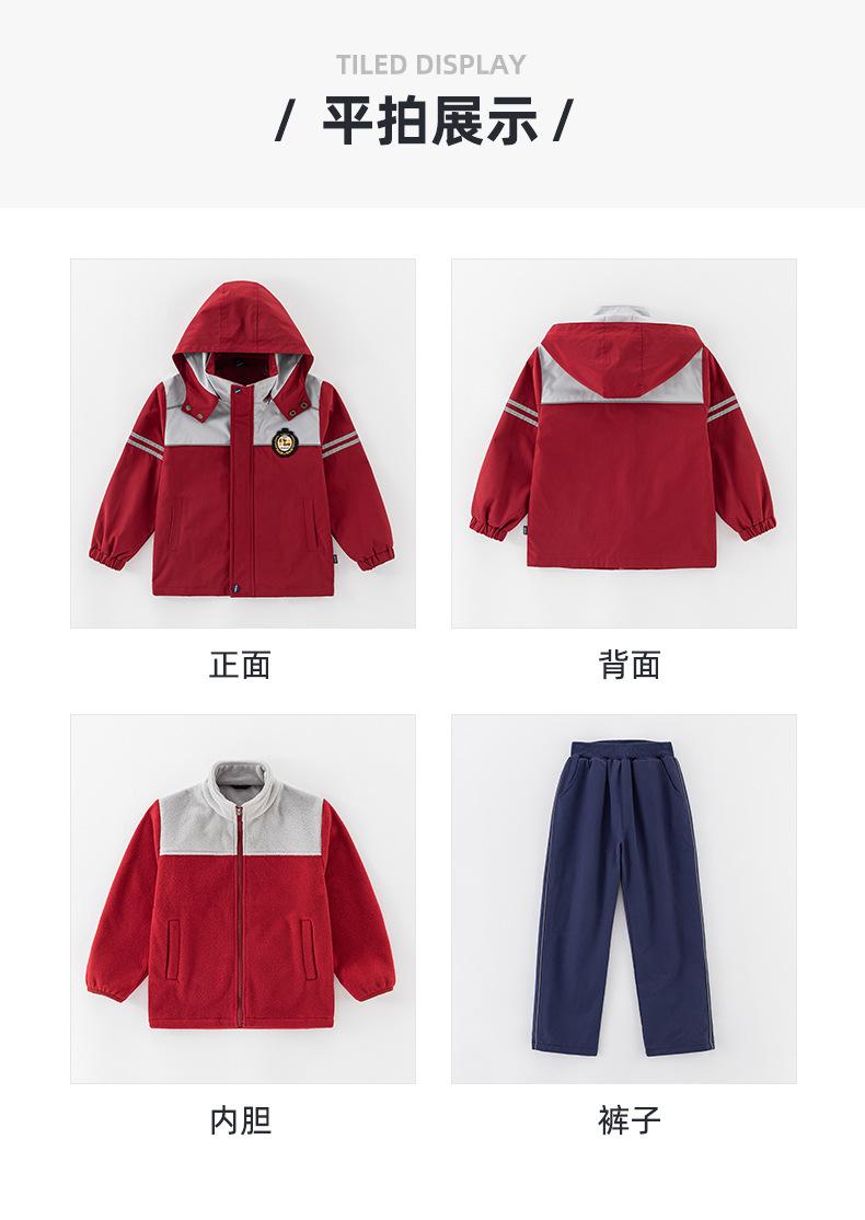 Uniforme escolar para estudiantes de primaria y secundaria Chaqueta para niños de tres piezas desmontable ropa de primavera y otoño jardín de infancia ropa de jardín invierno engrosado