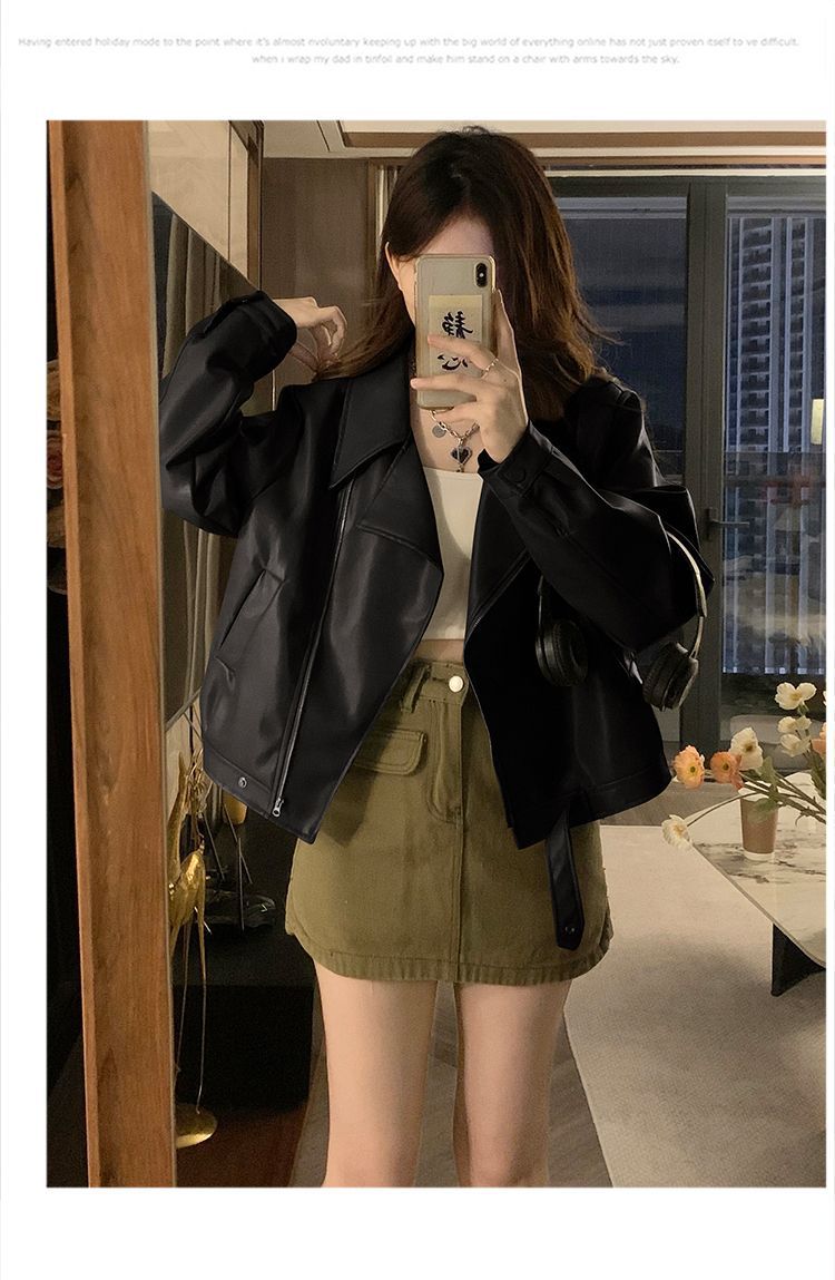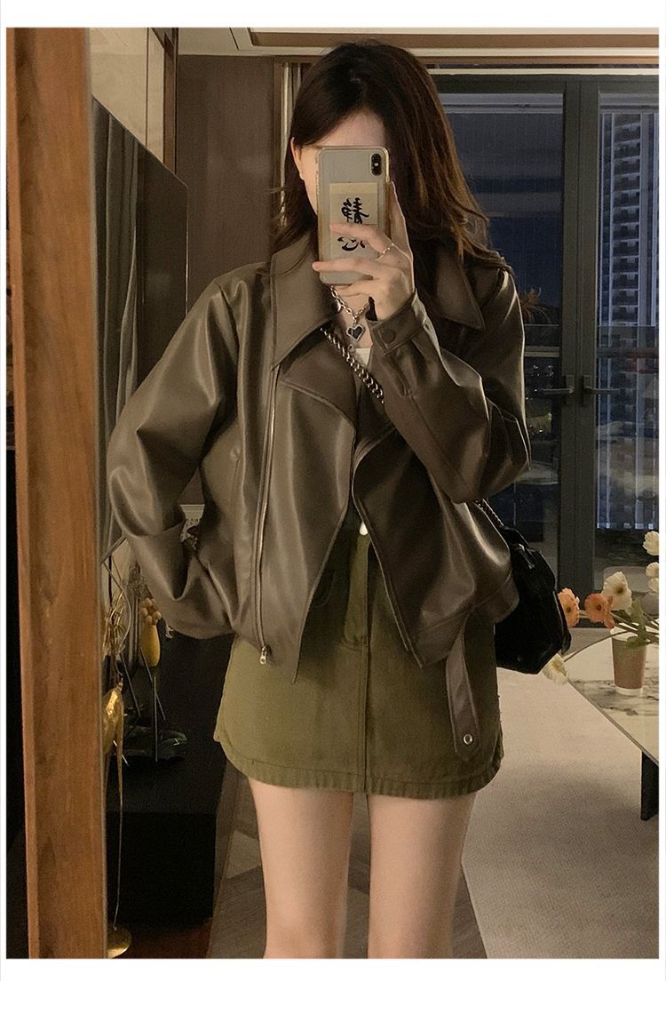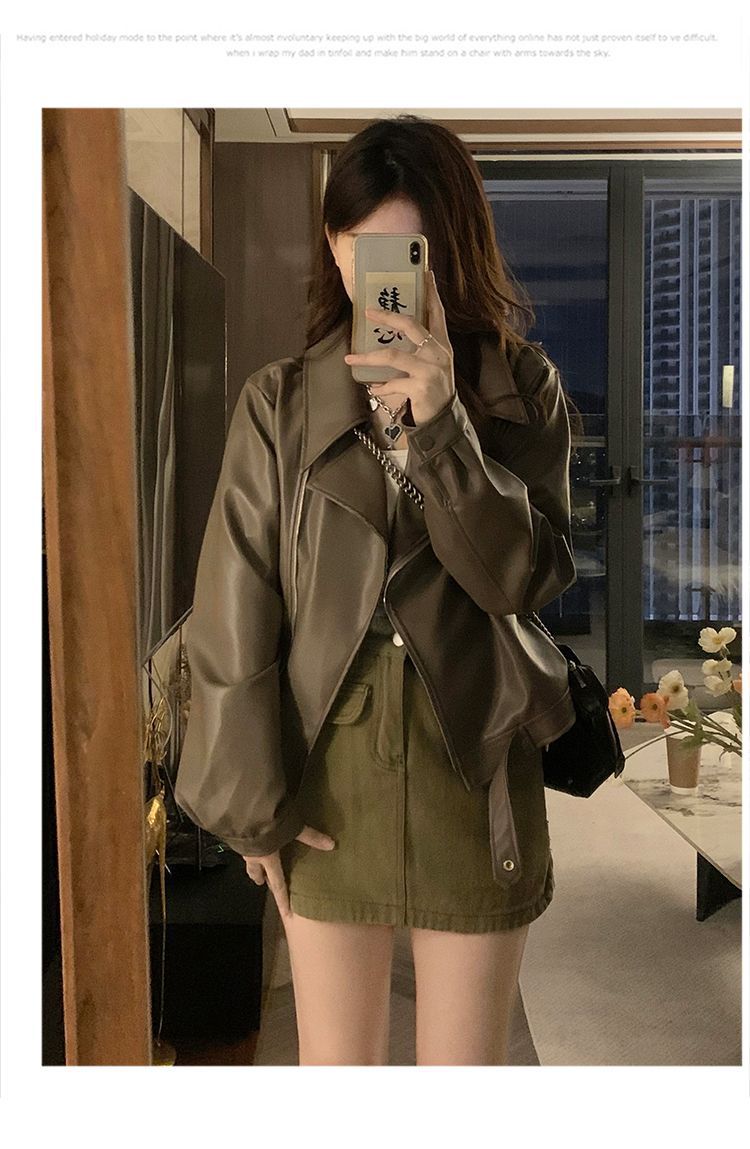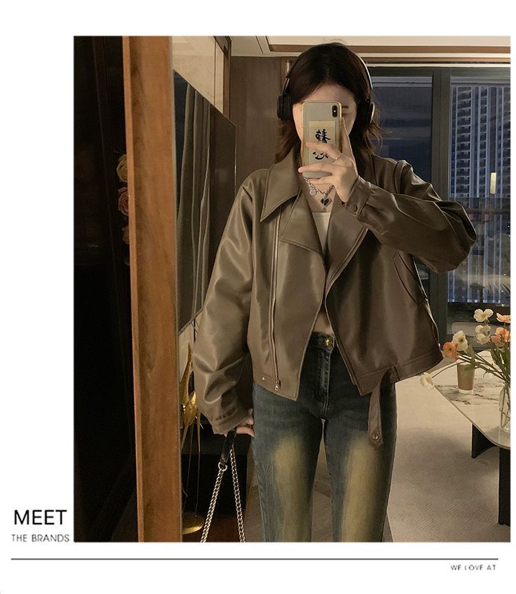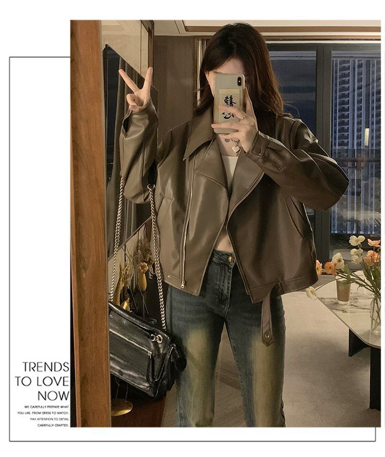 Chaqueta de Cuero PU Retro Americana Mujer 2025 Primavera Otoño Petite Suelta Adelgazante Chaqueta de Motocicleta Chaqueta Corta Top