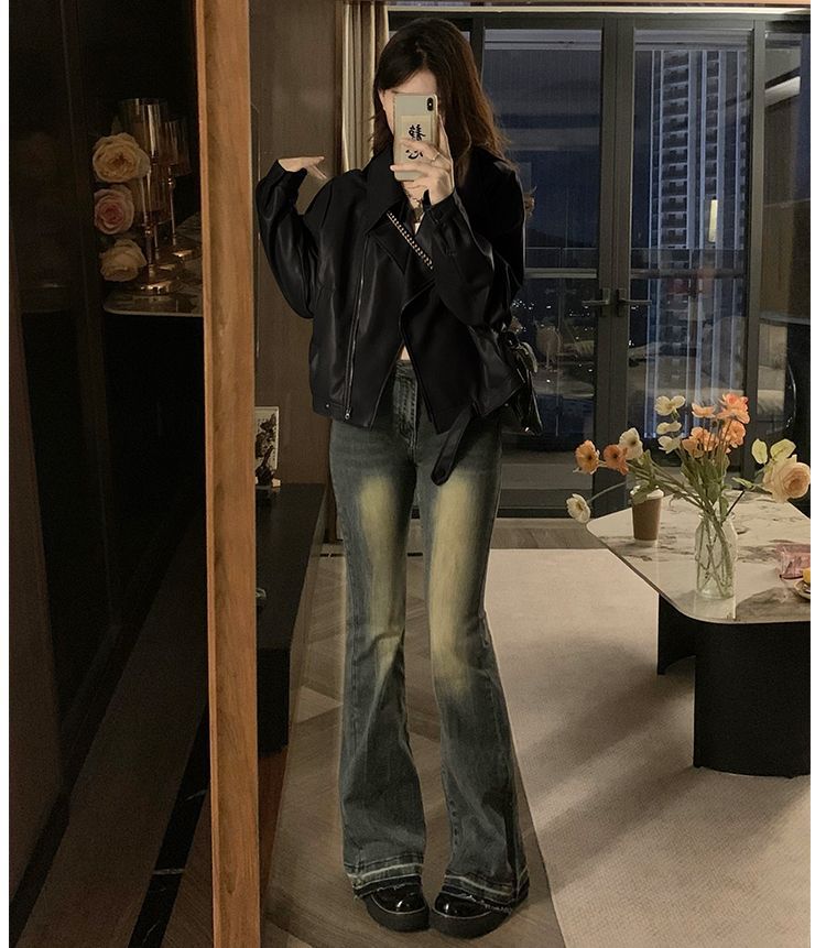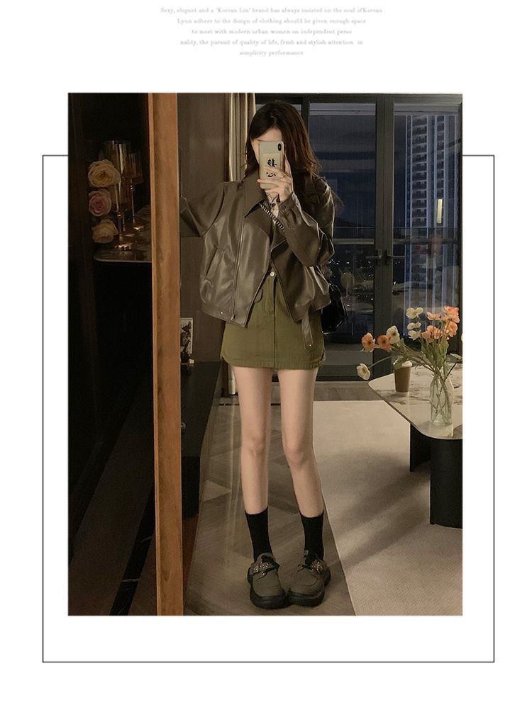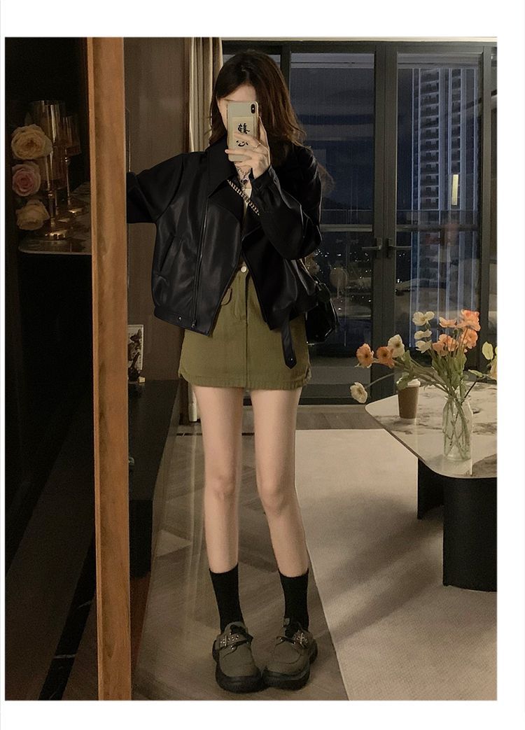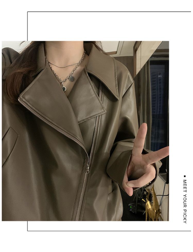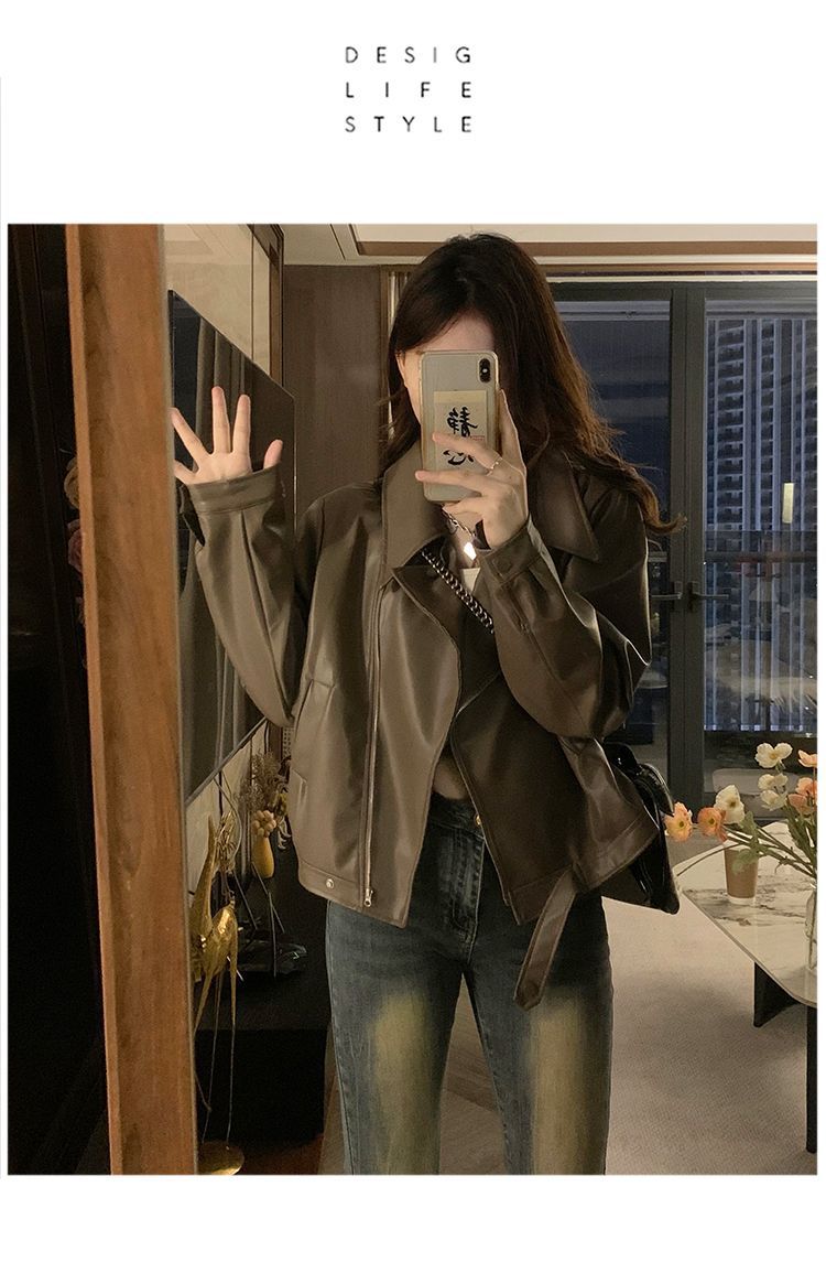 Chaqueta de Cuero PU Retro Americana Mujer 2025 Primavera Otoño Petite Suelta Adelgazante Chaqueta de Motocicleta Chaqueta Corta Top