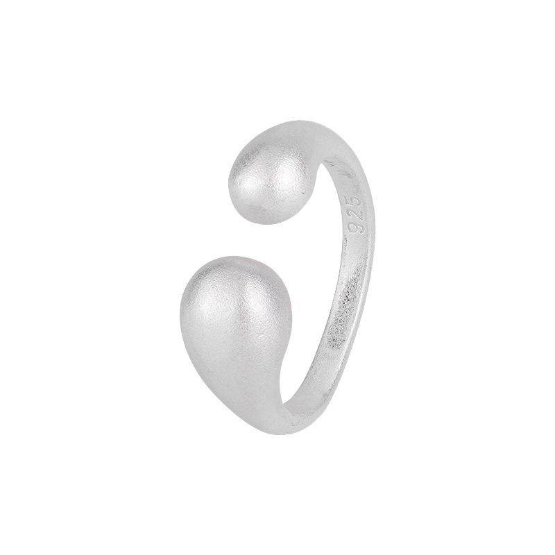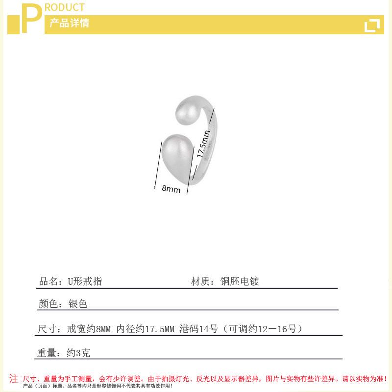 Anillo en forma de U con textura ins europea y americana, diseño de nicho para mujer, plateado, esmerilado, lujo ligero, sensación de alta gama, anillo para dedo con bola redonda grande y pequeña