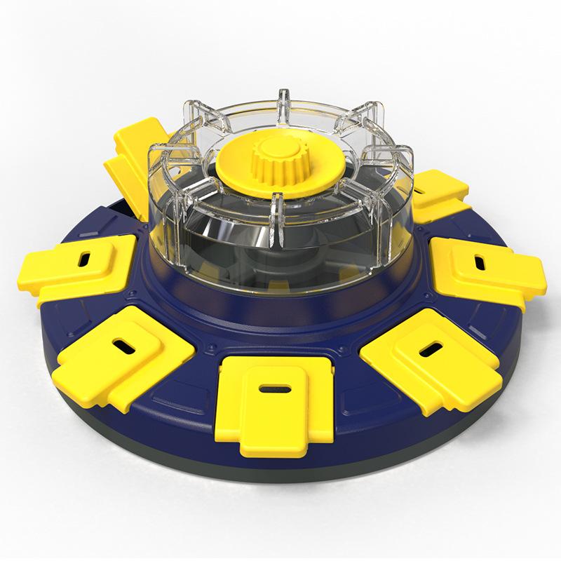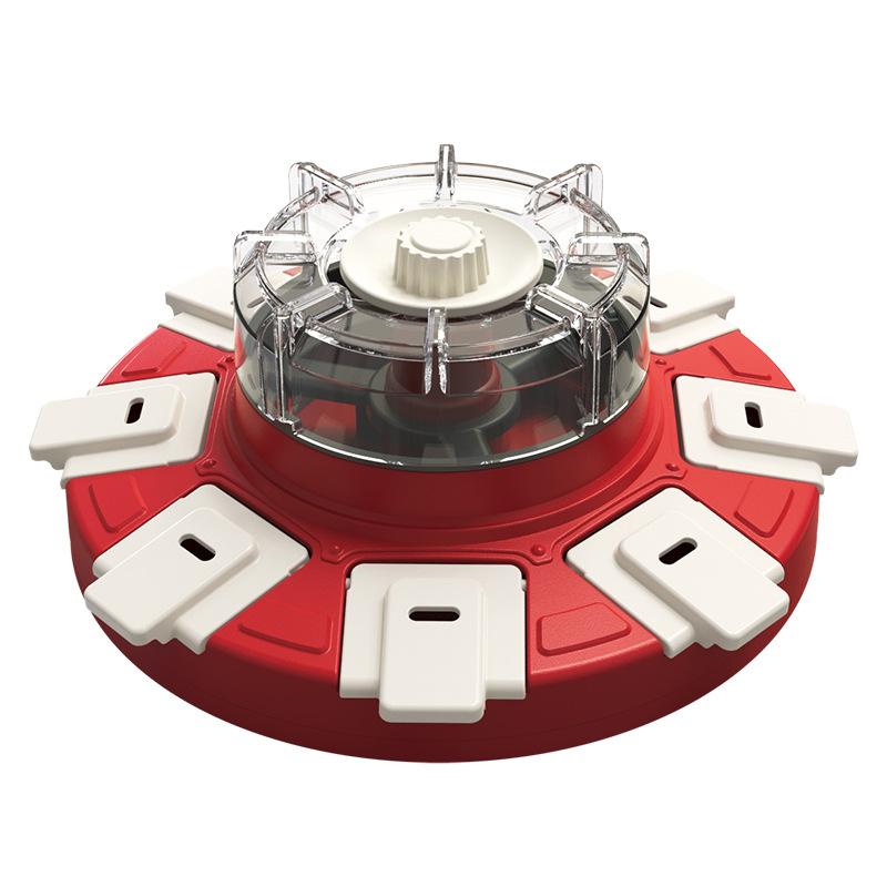 Al girar el contenedor de grano en medio del producto, la mascota hará que las golosinas caigan en las 8 cajas de golosinas que lo rodean..