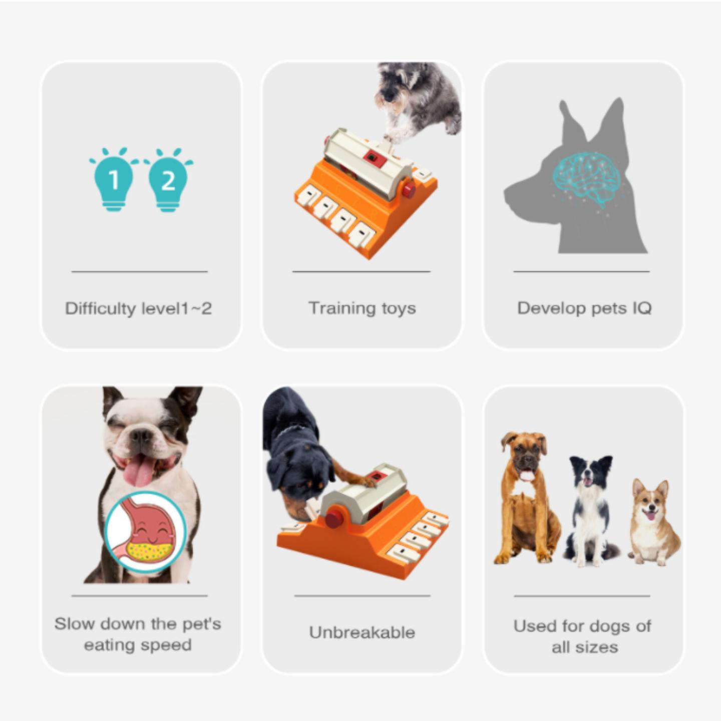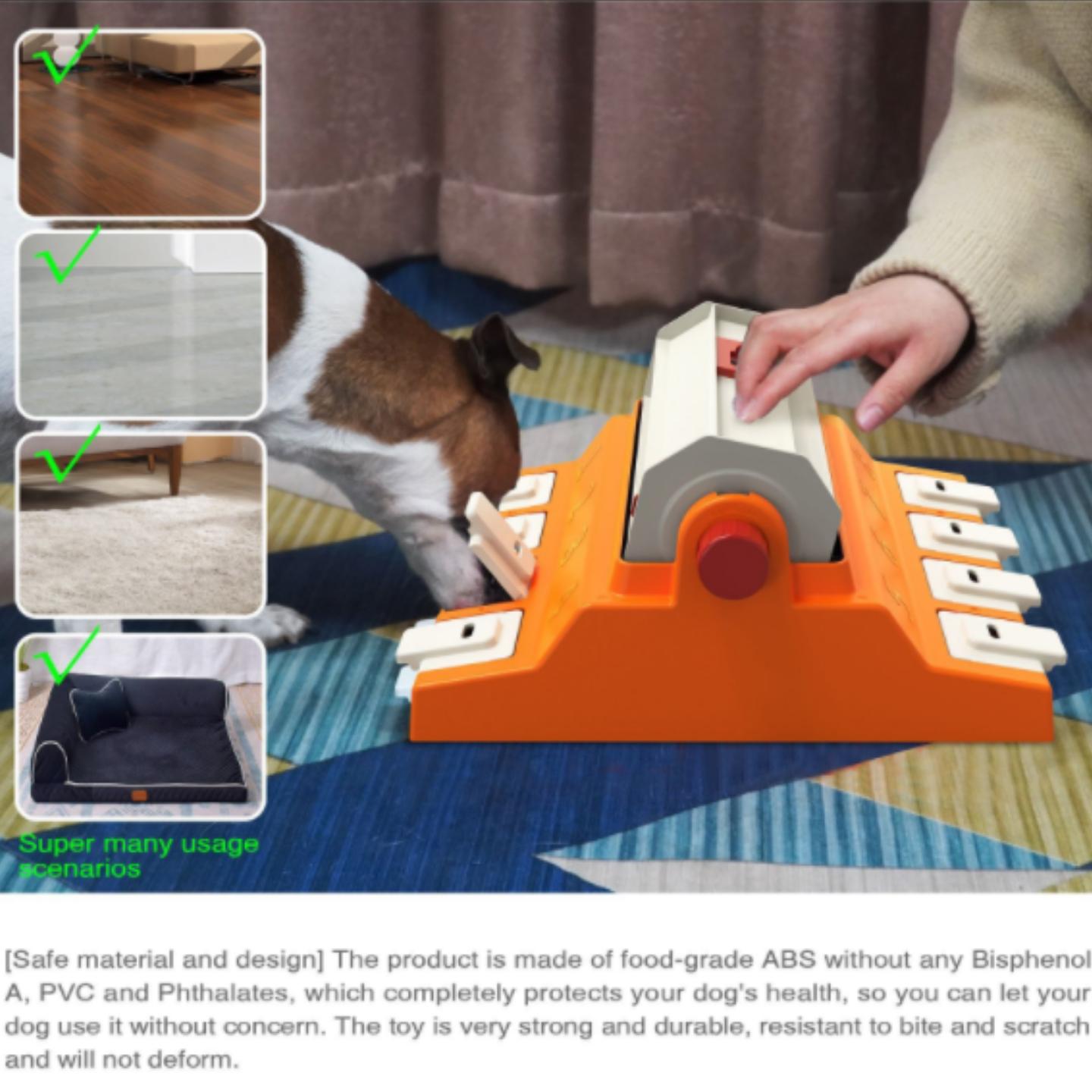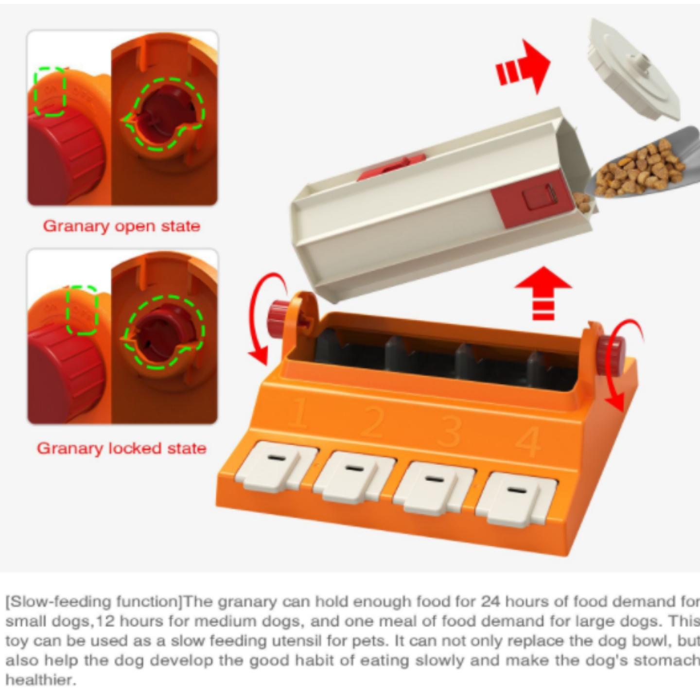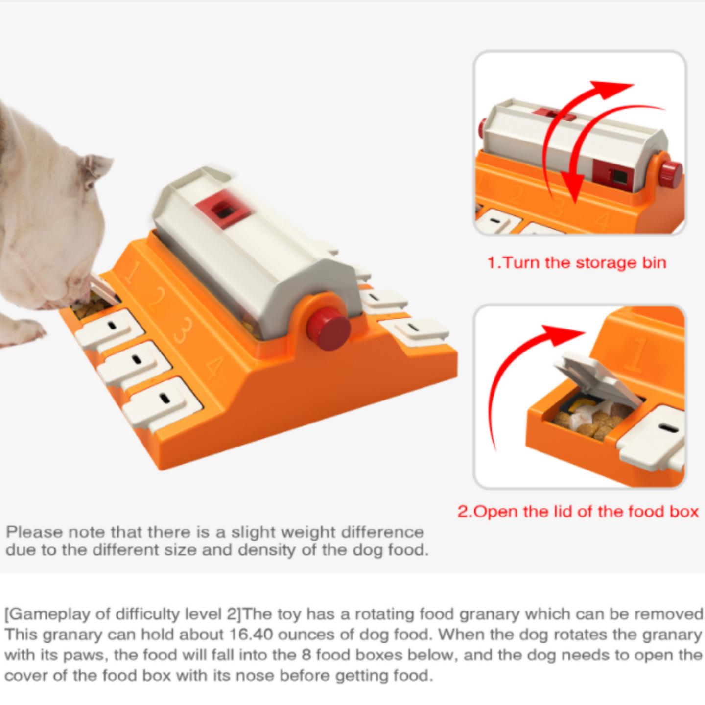 Dispositivo de alimentación inteligente tipo rodante. El rodillo superior puede contener 500g de snacks. El rodillo gira lentamente bajo la fuerza externa de la mascota, y las golosinas caen a través de 4 orificios de alimentación ajustables de diferentes velocidades y tamaños en los 8 comederos de abajo.. Hay una placa de cubierta sobre los comederos, y la mascota puede obtener recompensas abriendo la placa de cubierta.. Este producto puede ejercitar y mejorar la inteligencia de la mascota a través de múltiples etapas. Hace a la mascota más inteligente y la vida más agradable.