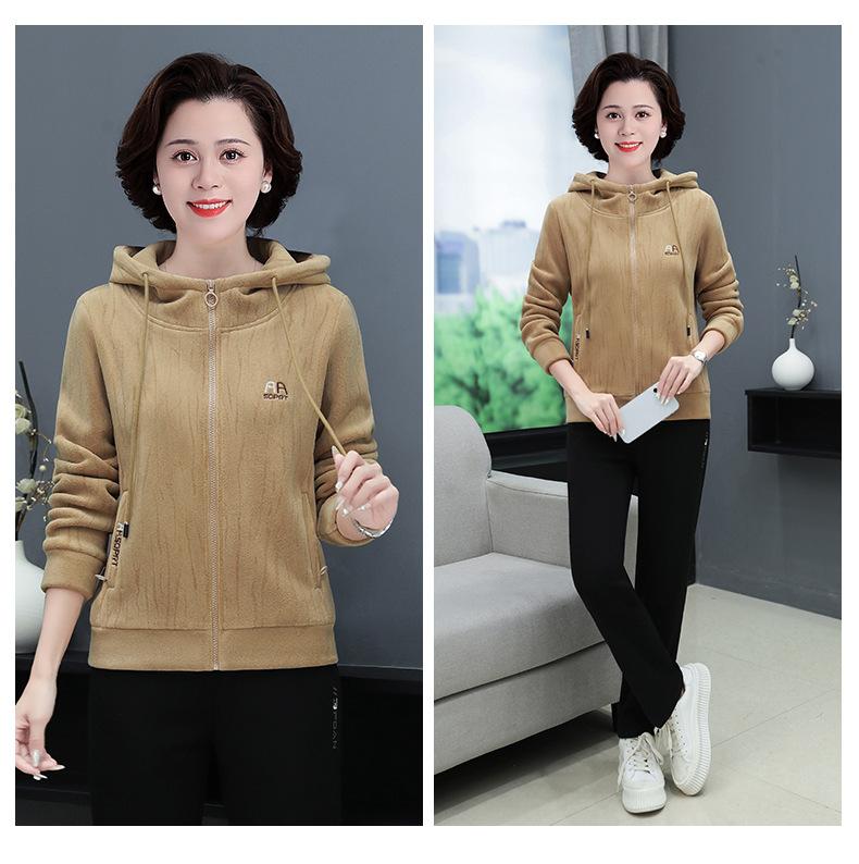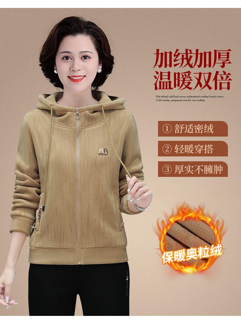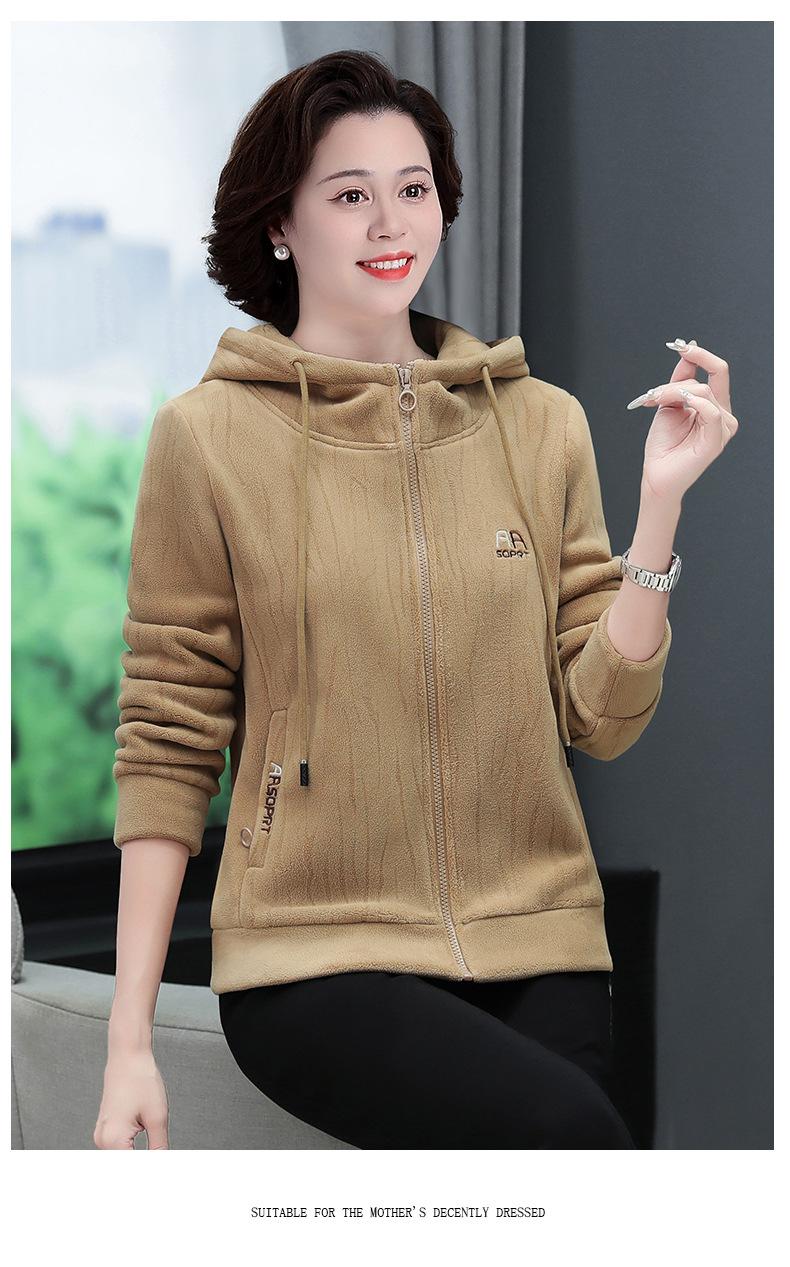 Abrigo de Forro Polar Nuevo para Mujeres de Mediana Edad Otoño e Invierno Abrigo de Forro Polar Grueso Top Corto para Mujer con Forro Polar