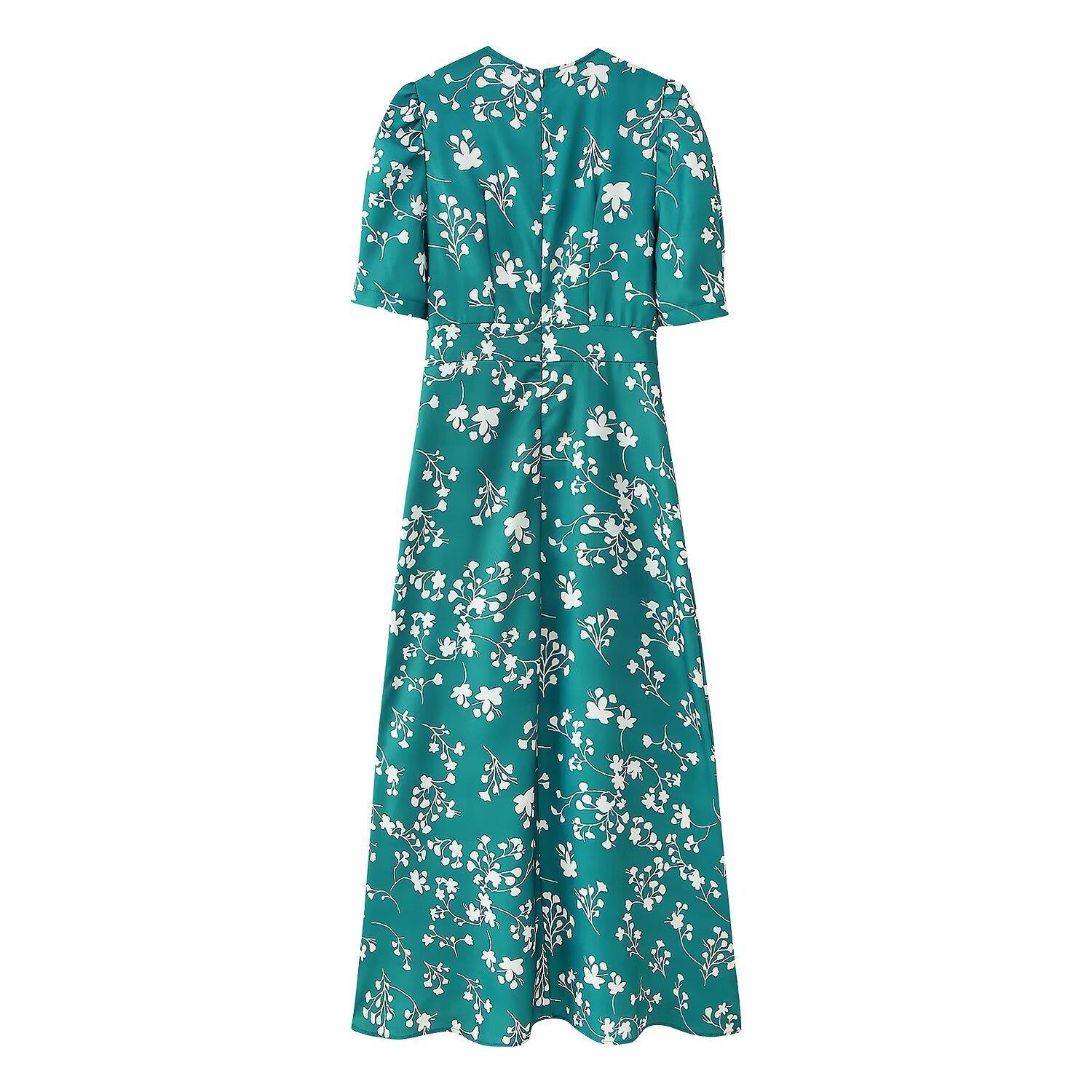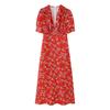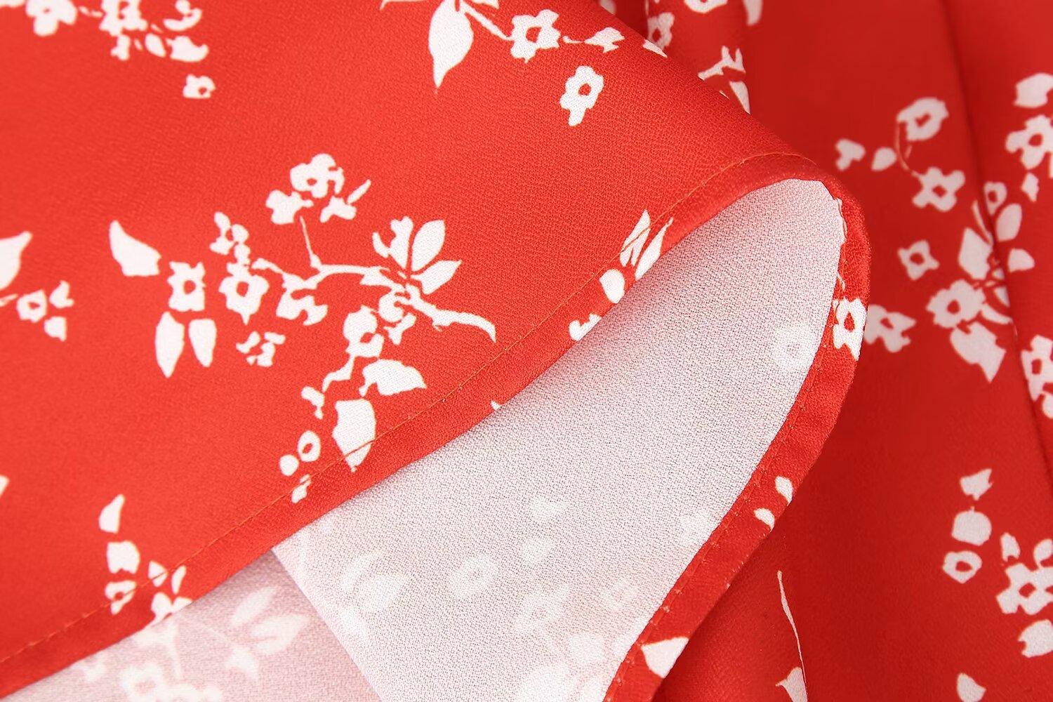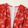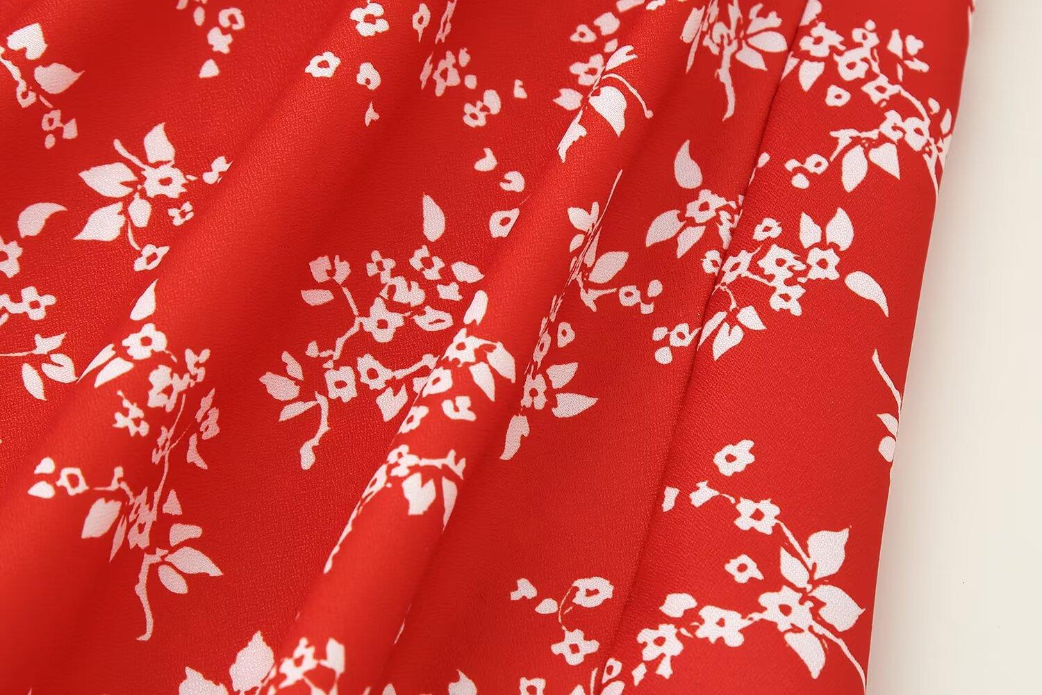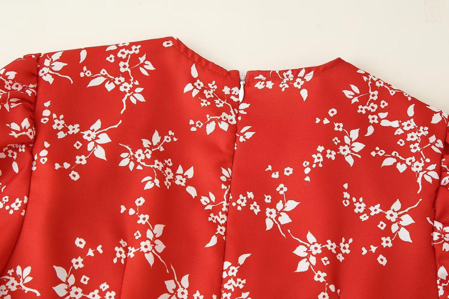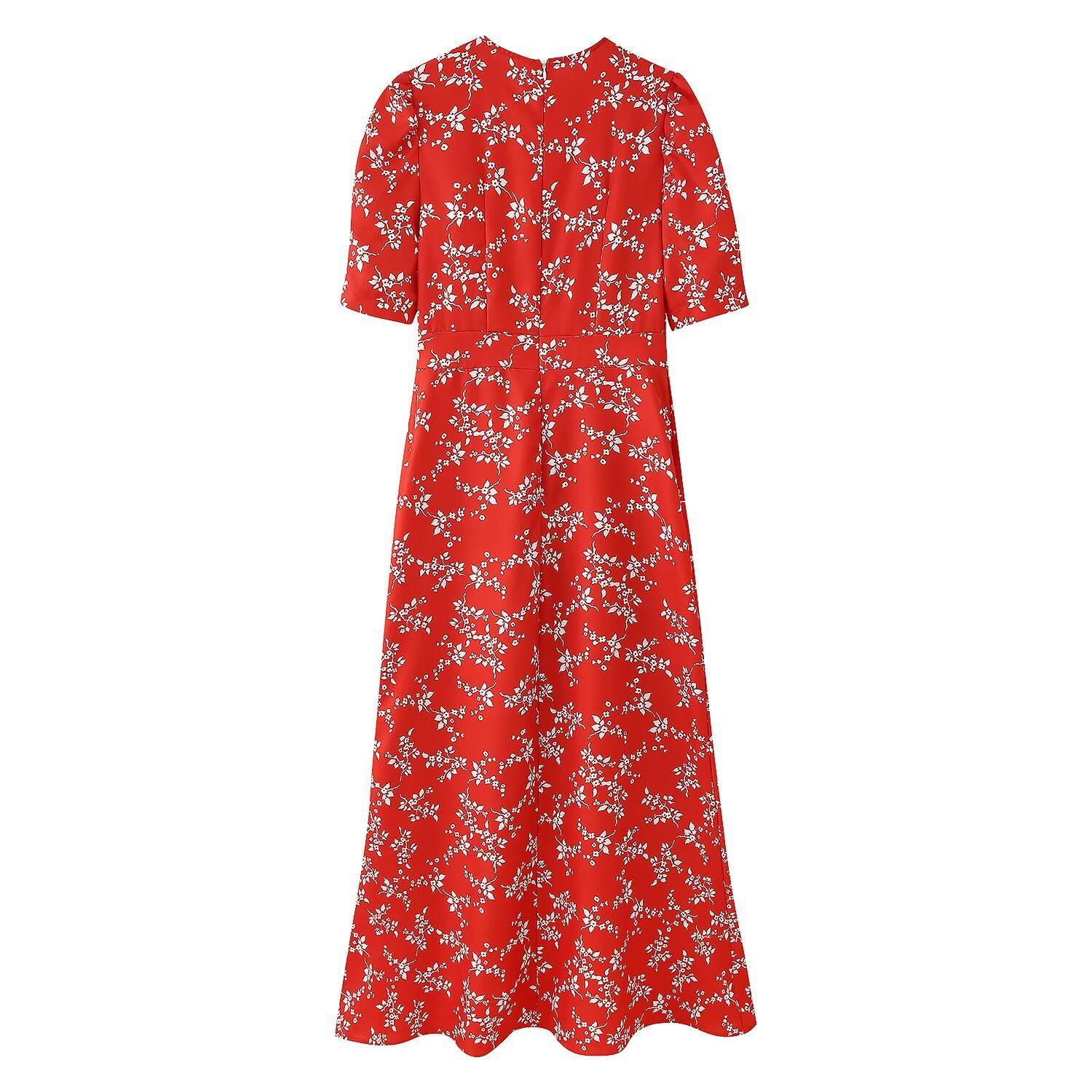 2025 Otoño Nuevo Ropa de Mujer Estilo Europeo y Americano Moda Simple Decoración Plisada Bicolor Vestido Estampado Cuello en V Rojo