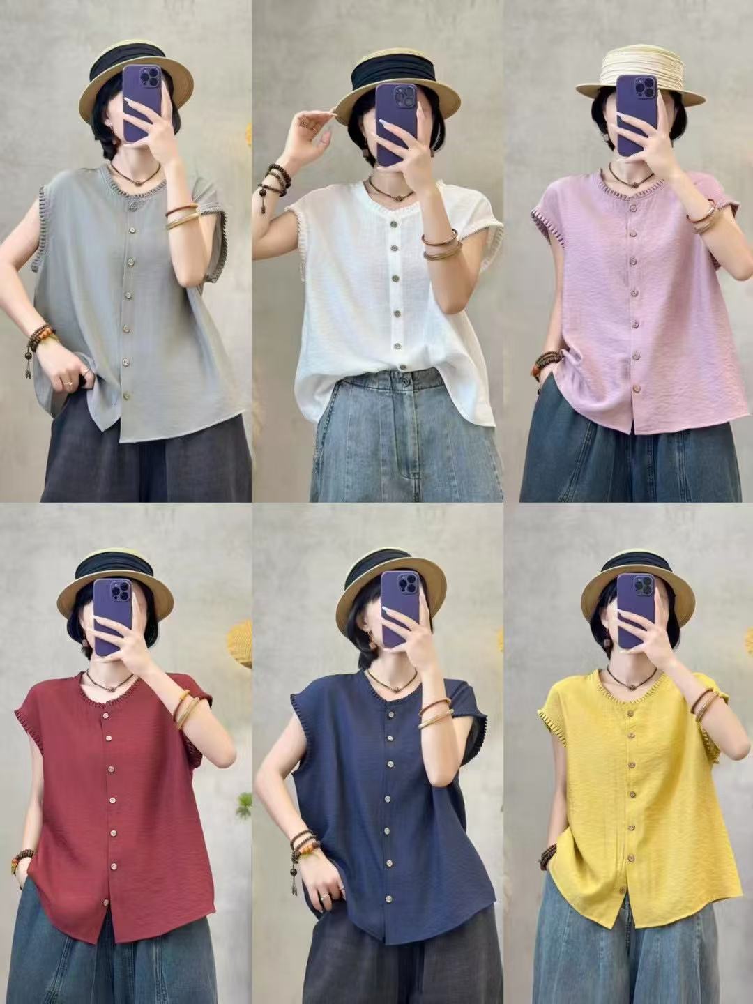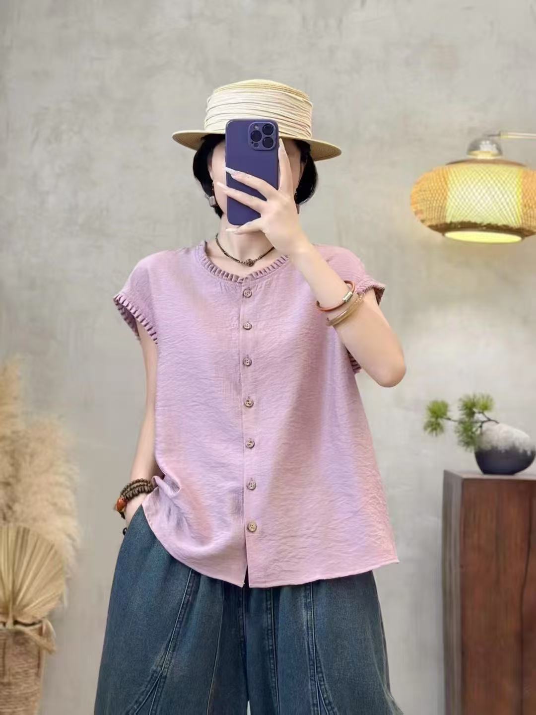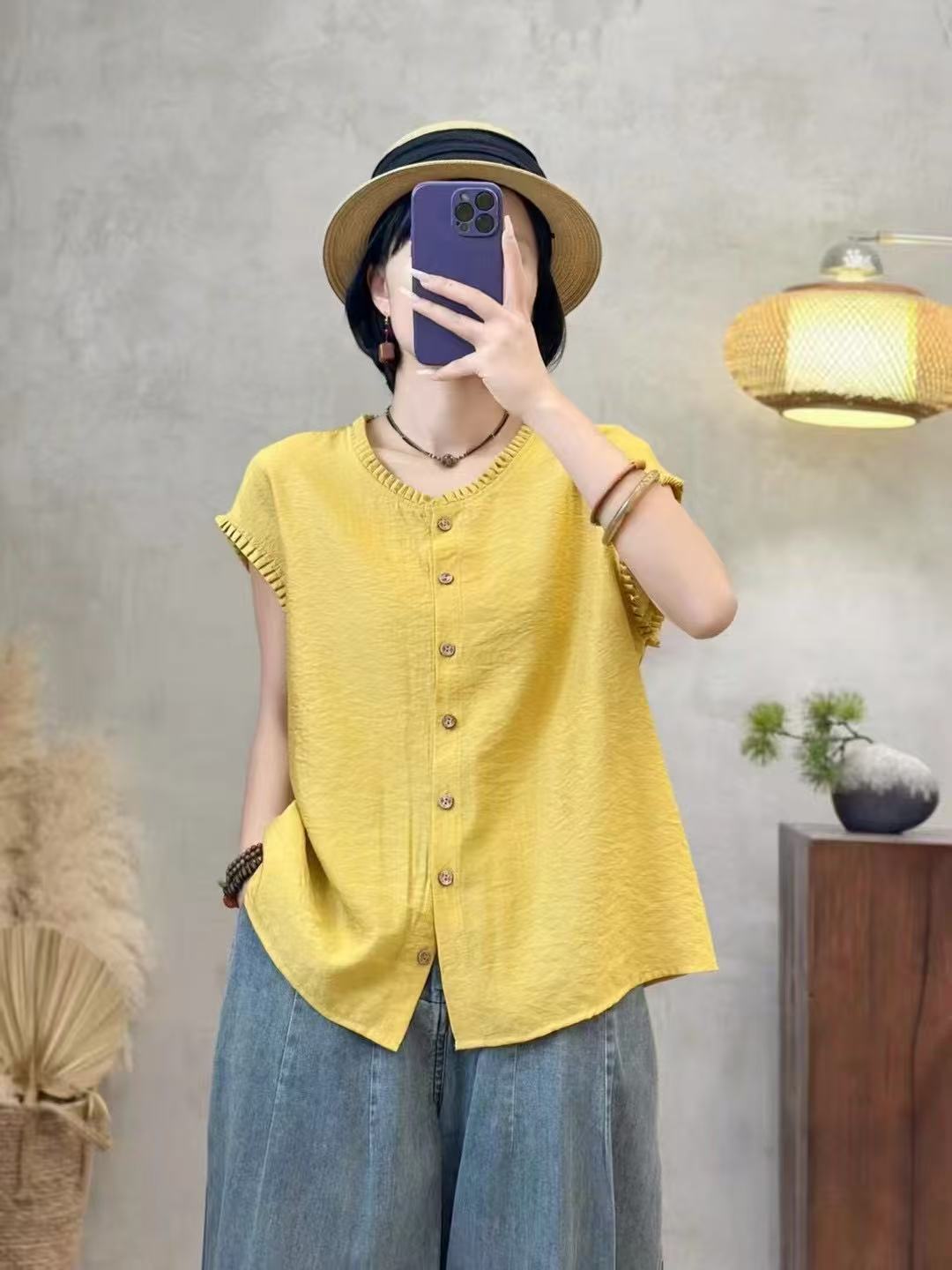 Verano 2025 Versión Coreana Suelta Artística Simple Tencel Lino Camisa sin Mangas Versátil Casual Cómoda Top de Mujer
