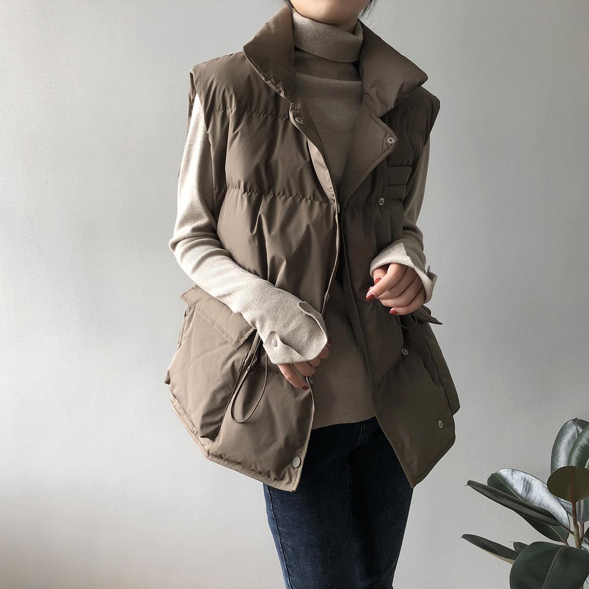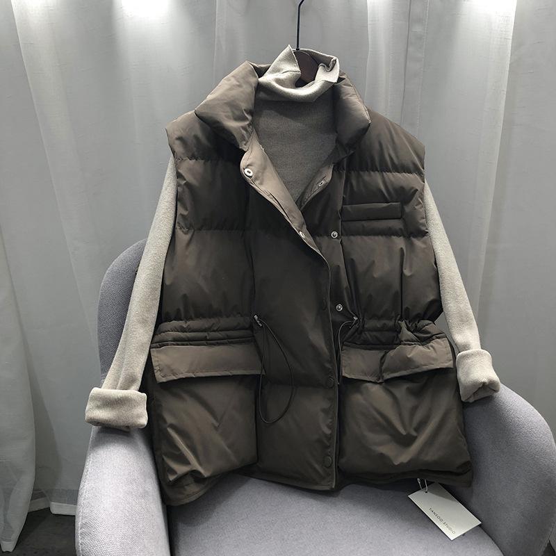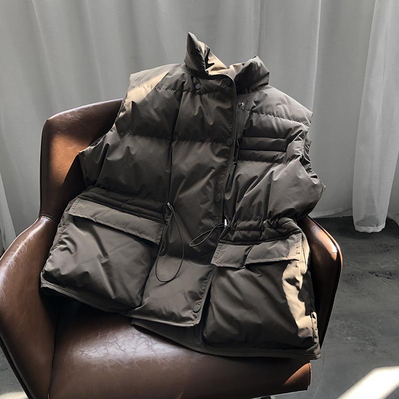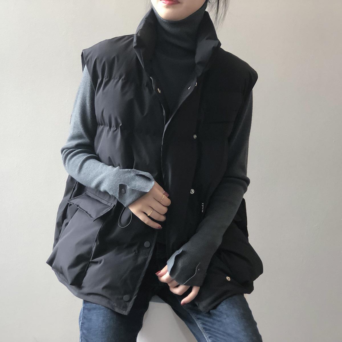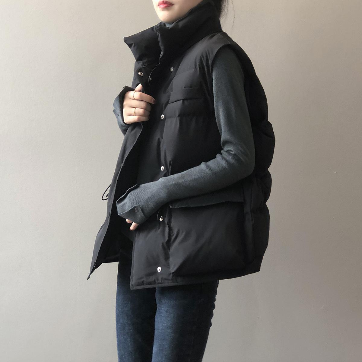 Chaleco Holgado de Algodón Acolchado Estilo Coreano Abrigo Exterior para Mujer Chaleco Corto Chaleco Invierno Engrosado Abrigo