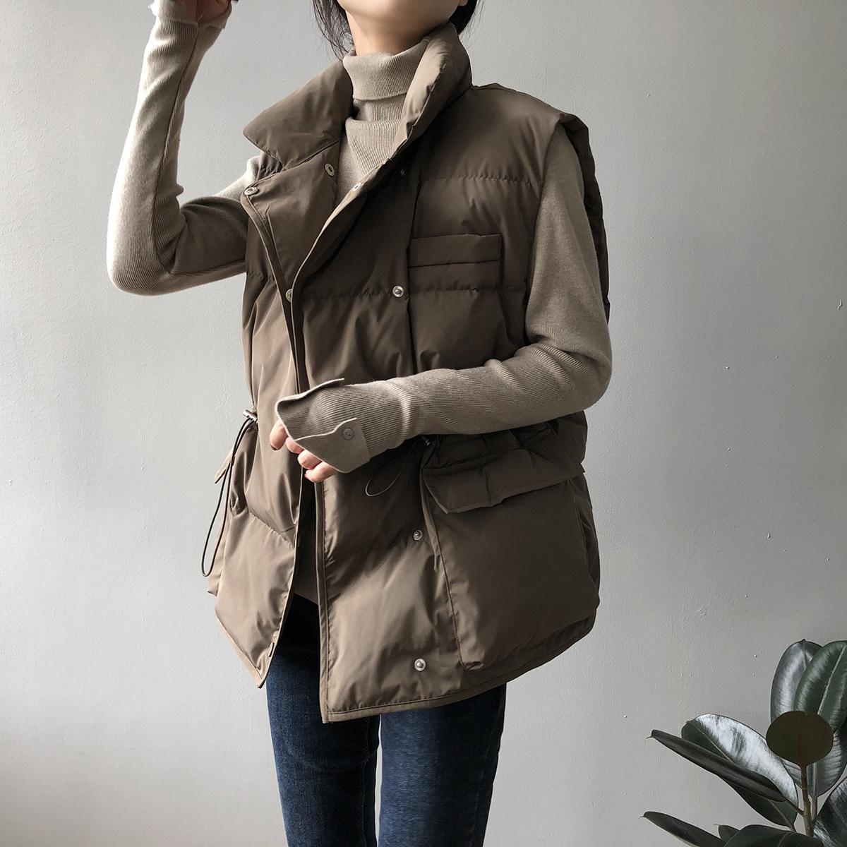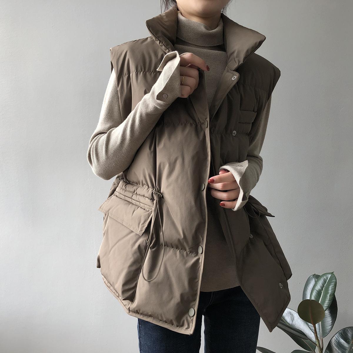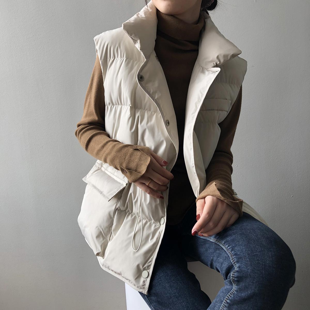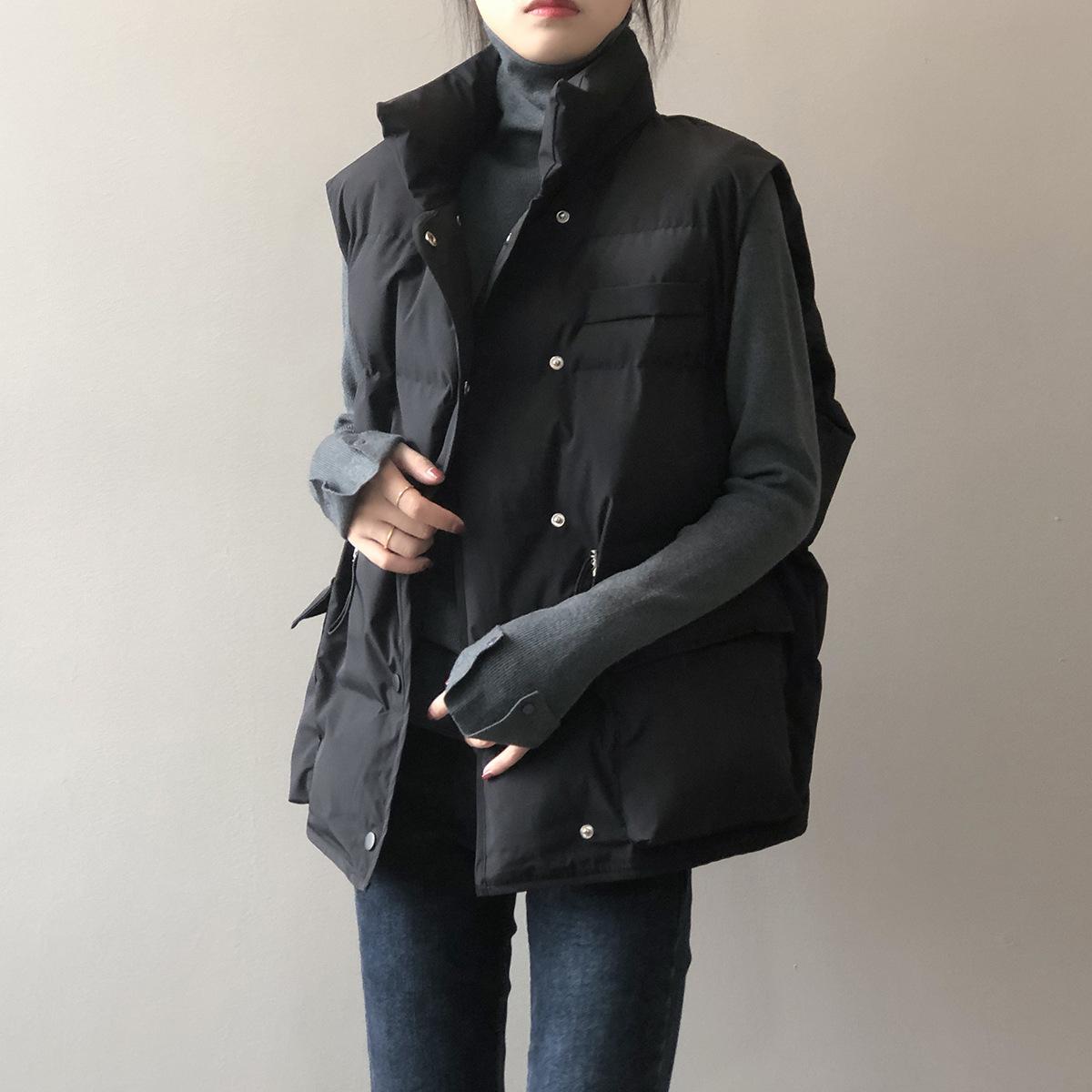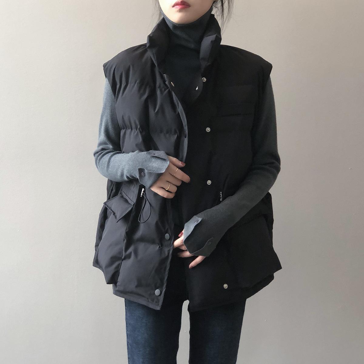 Chaleco Holgado de Algodón Acolchado Estilo Coreano Abrigo Exterior para Mujer Chaleco Corto Chaleco Invierno Engrosado Abrigo
