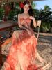 Vestido de Verano Súper Bonito Ambiente de Playa Tie-dye Estilo Deseo Puro Sexy Manga Corta Mujer 2025 Verano