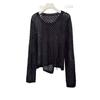 Blusa Coreana Estilo Cut Out Protección Solar 2025 Nuevo Verano para Mujer Tejido de Punto Floral Jersey con Cordones Suelto Top Holgado