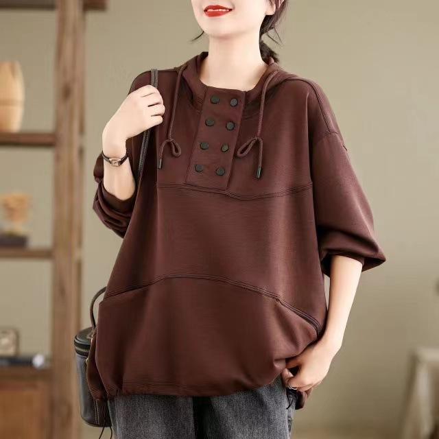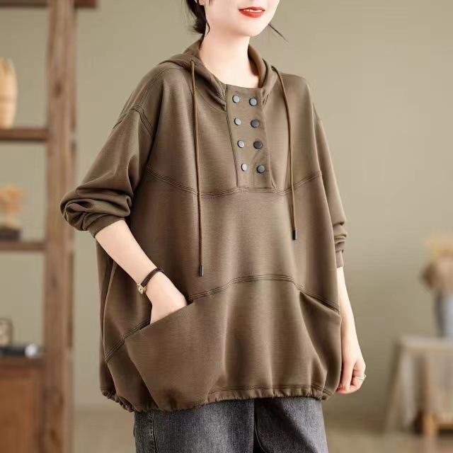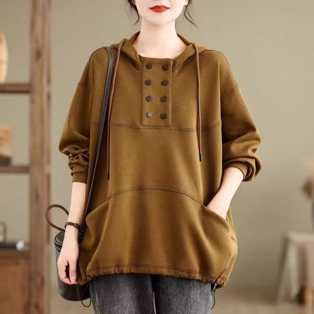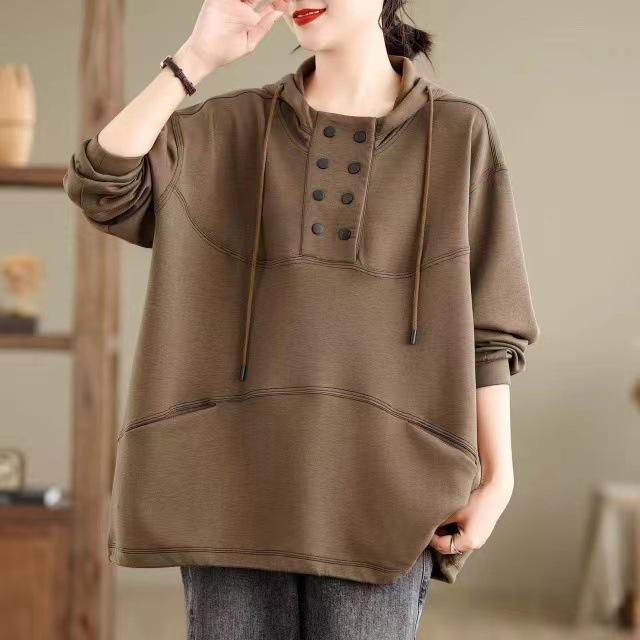 Sudadera con capucha para mujer otoño 2024 holgada casual estilo coreano estilo universitario jersey manga larga nuevo top