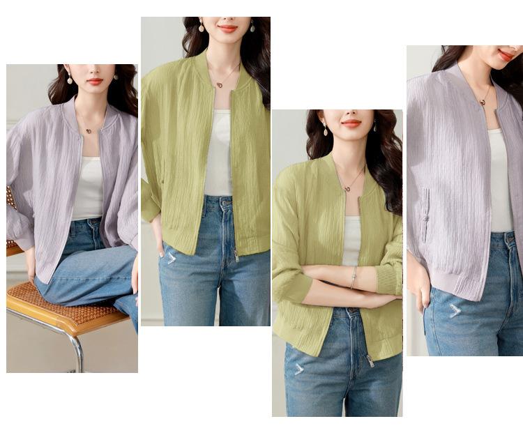 Chaqueta de Béisbol Ligera y Transpirable para Mujer, Talla Petite, Verano 2025 Nuevo Top Casual Versátil Corto con Protección Solar