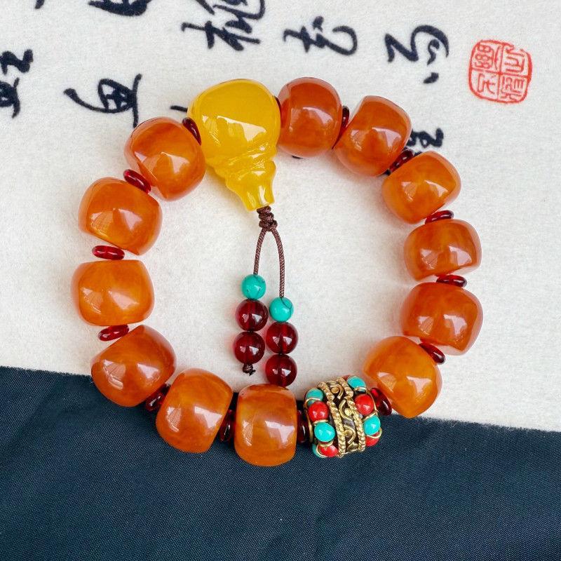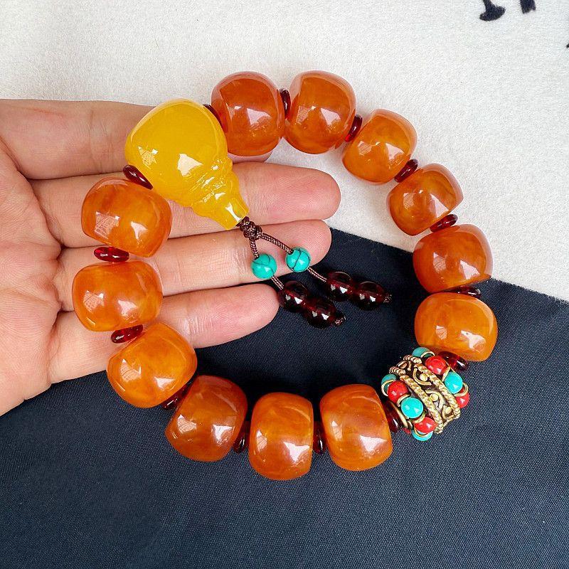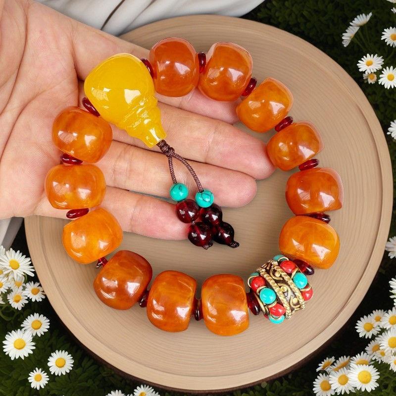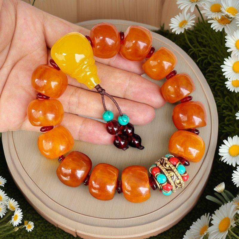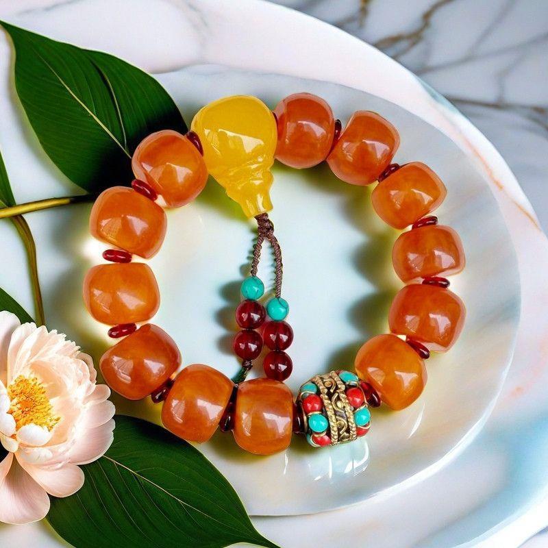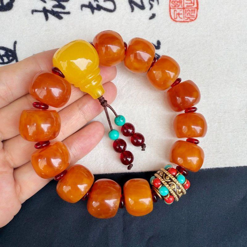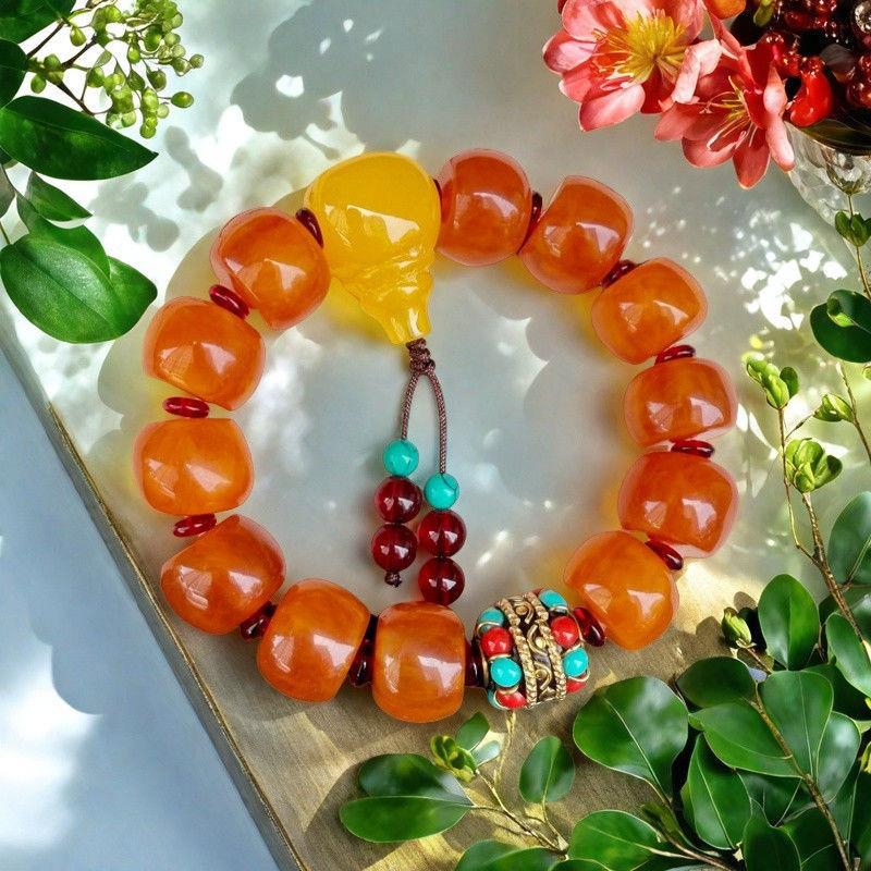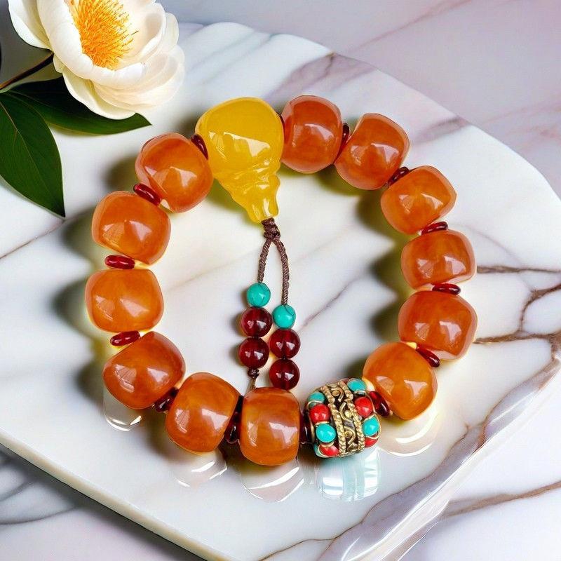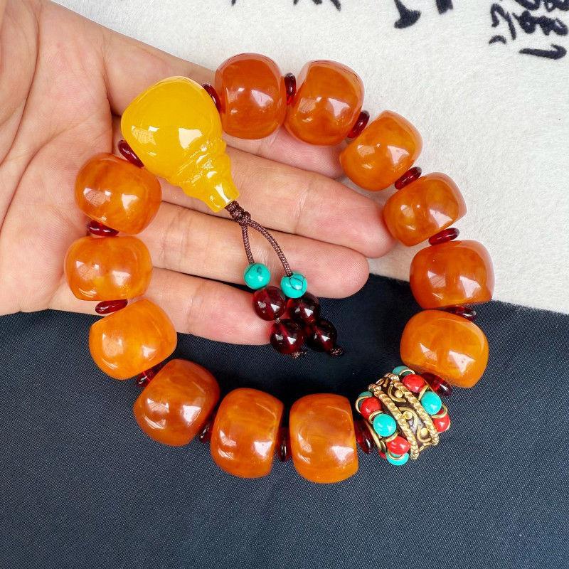 Ámbar báltico puramente optimizado, combinado con cuentas espaciadoras nepalíes, cuentas de barril de mineral original, pulsera estilo colgante de turquesa