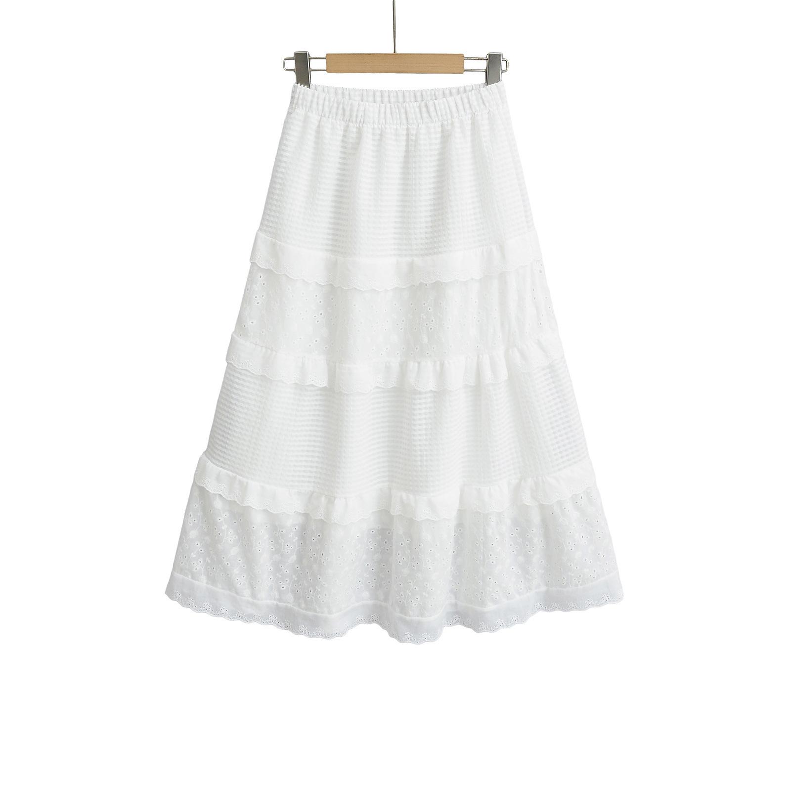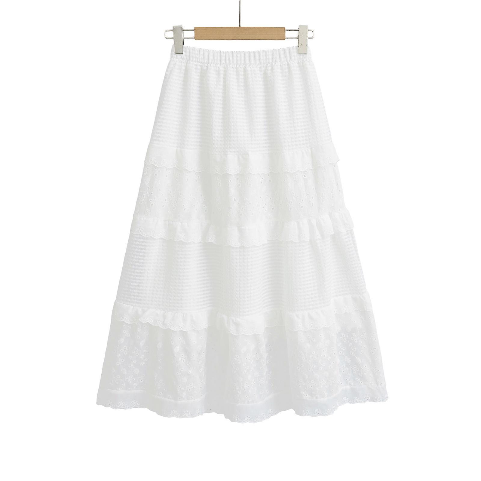 Ins Sexy Trendyy Estilo Princesa Falda de Pastel Cintura Alta Ajustada Encaje Patrón de Ganchillo Falda Larga Línea A Venta al por Mayor