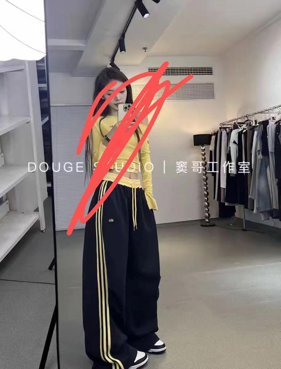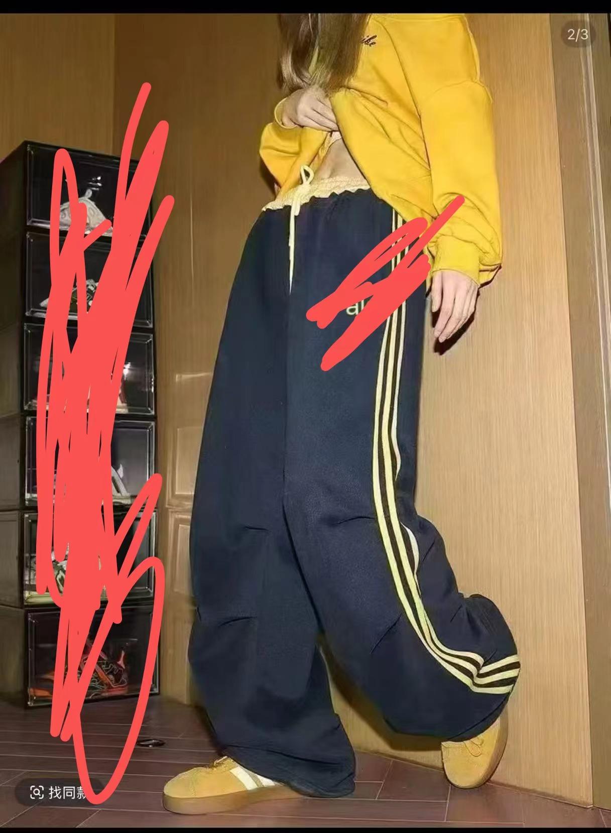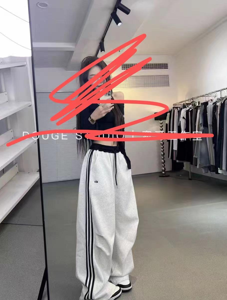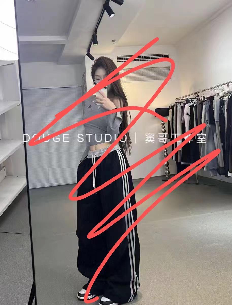 Pantalones Deportivos Casuales con Cordón de Tres Rayas Americanas para Mujer, Modernos, Nuevos, Holgados, de Pierna Recta, Largos hasta el Piso, Deportivos, Versátiles
