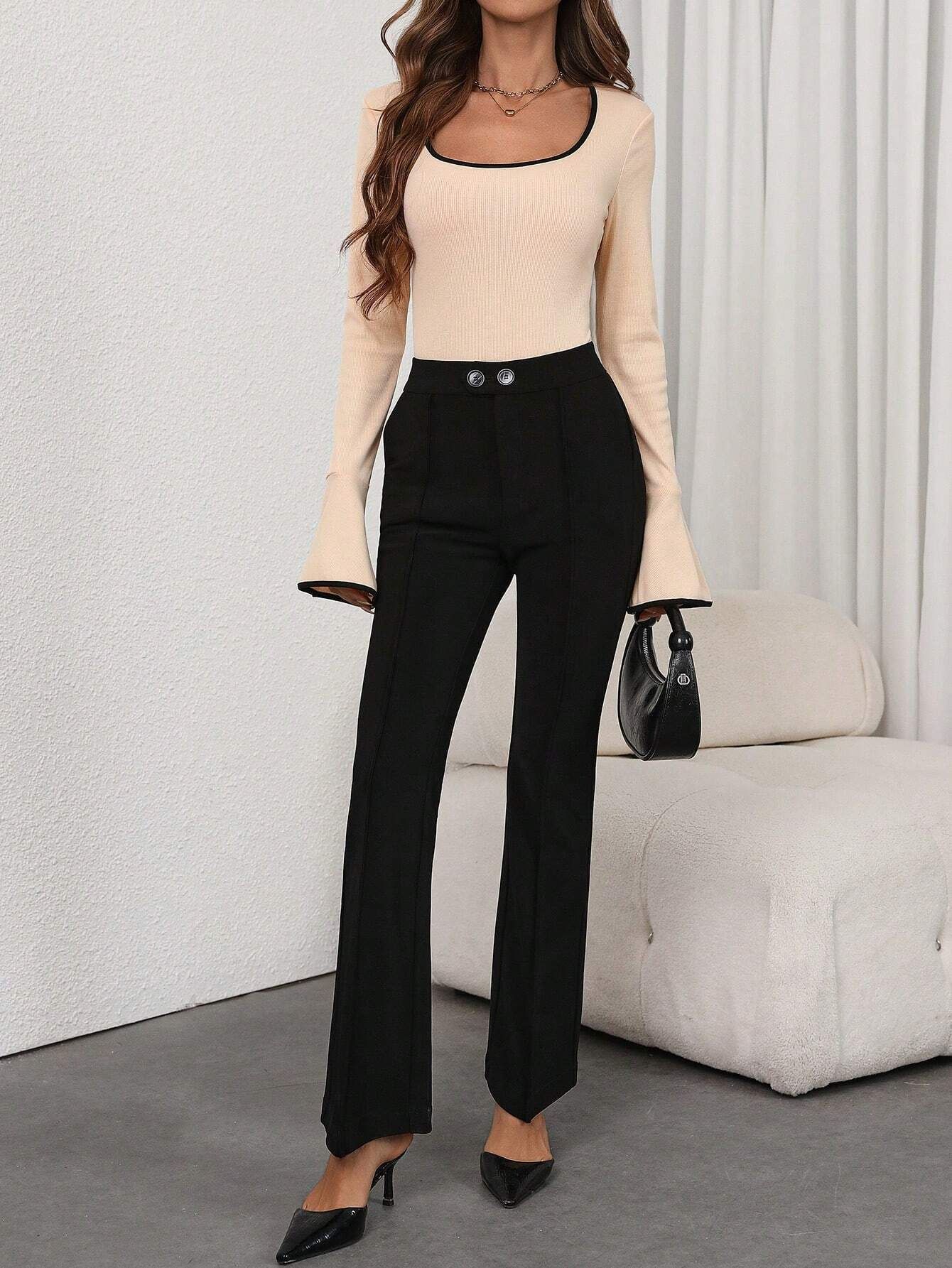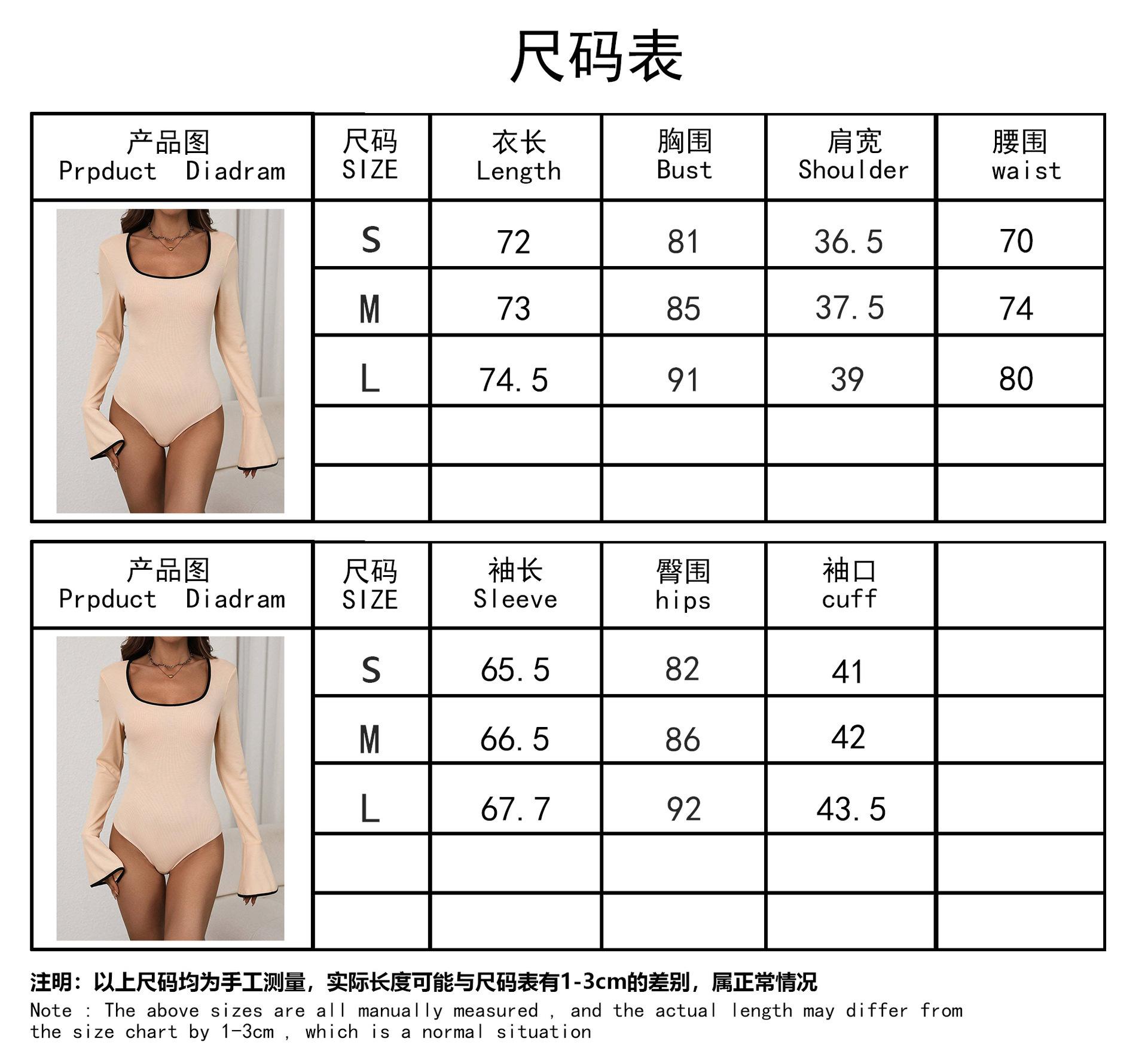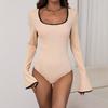 Primavera/Verano 2025 Nuevo Body Sexy de Color Sólido con Cuello Cuadrado para Mujer, Ajustado, Mangas Acampanadas, Color Sólido