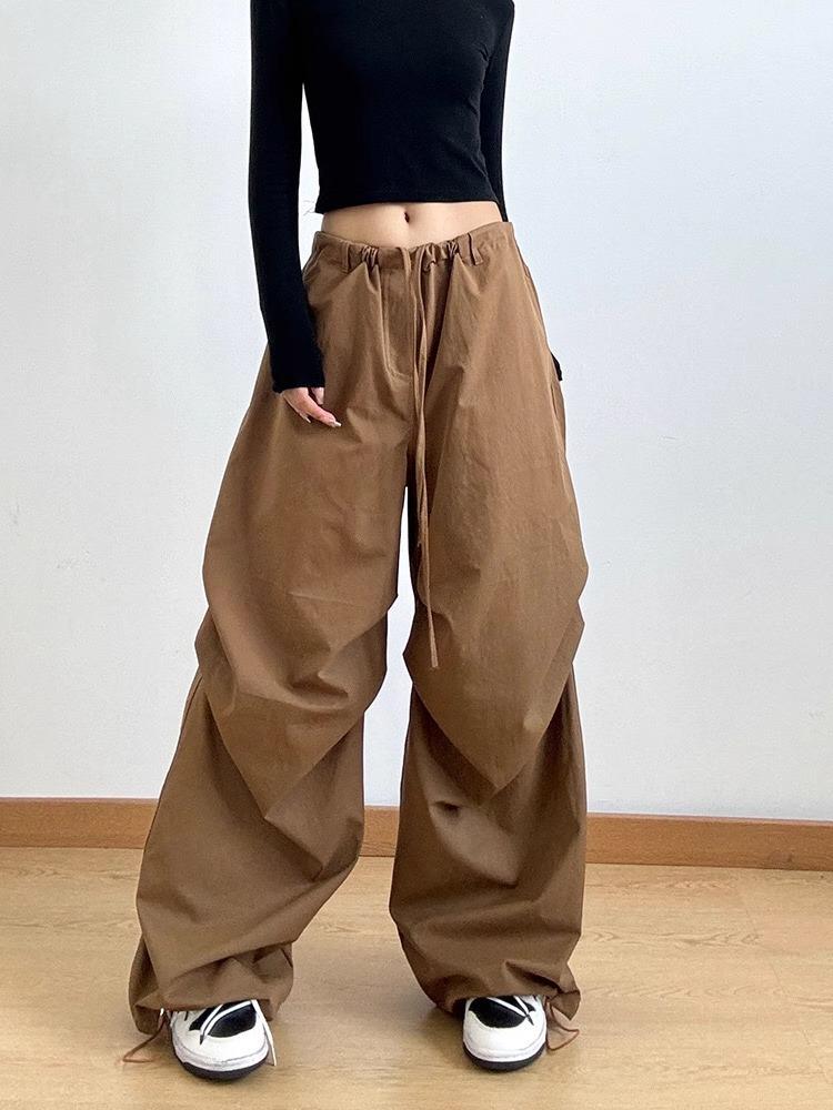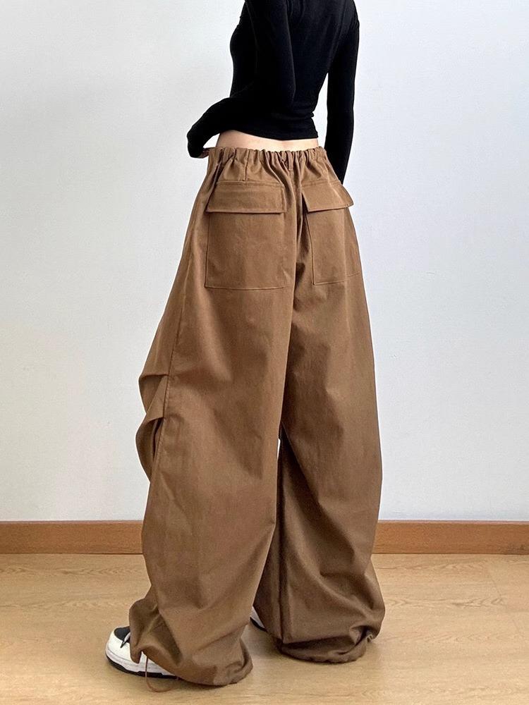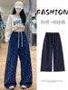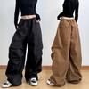 Pantalones de Pierna Ancha Estilo Americano para Mujer 2025 Nuevo Otoño e Invierno Pantalones Casuales Holgados Pantalones Largos Cargo de Cintura Alta Pantalones Rectos con Caída