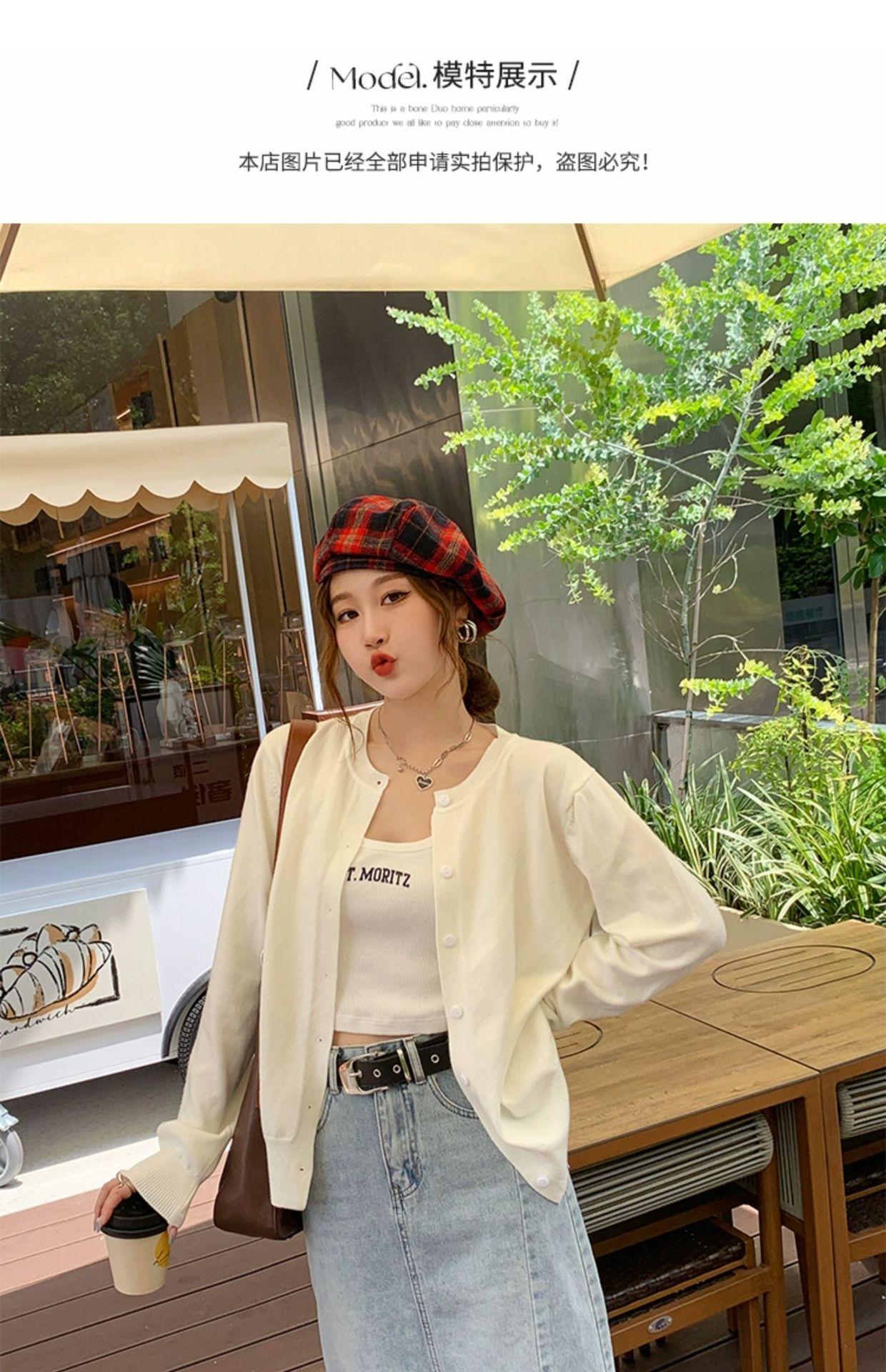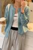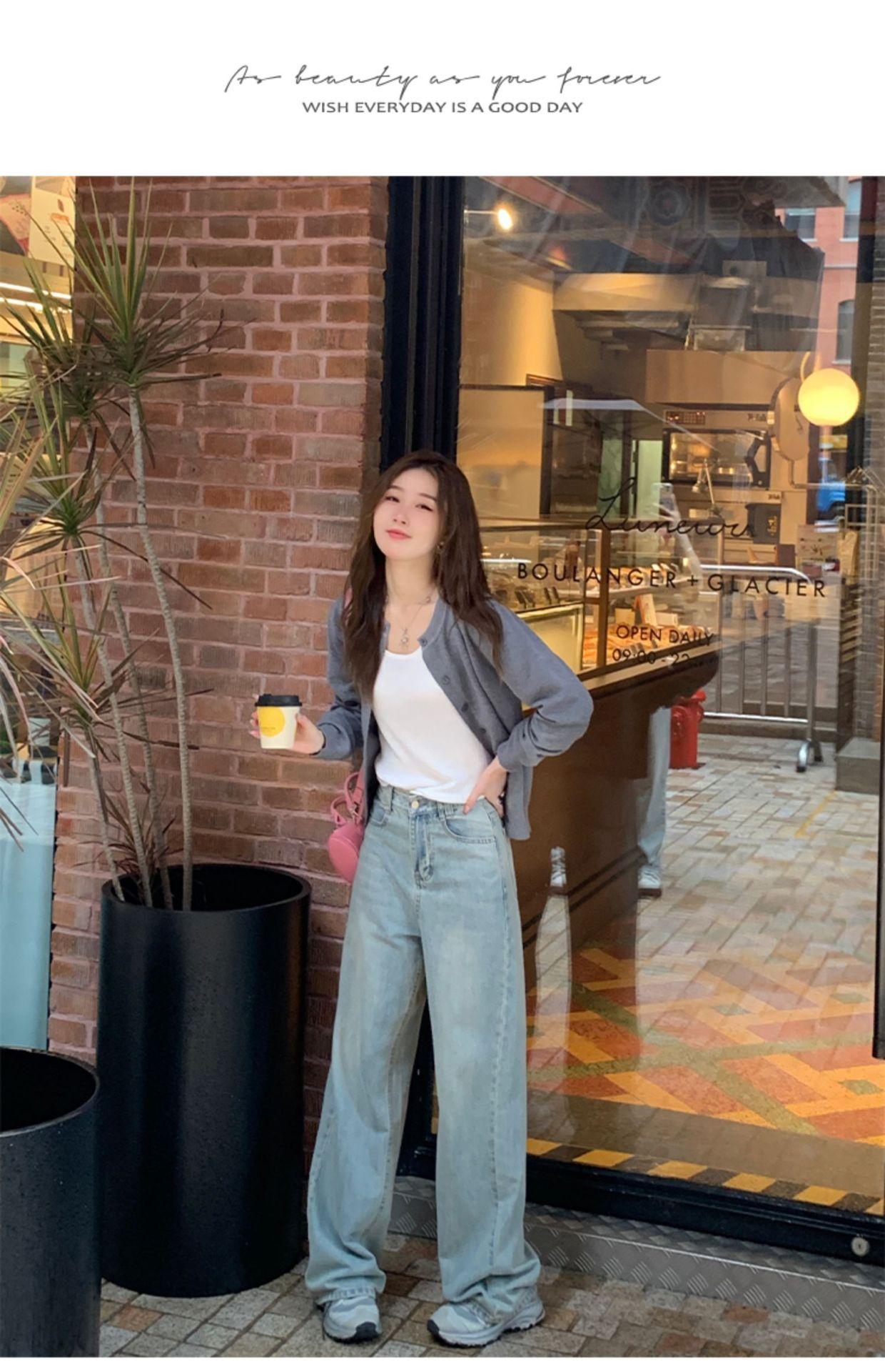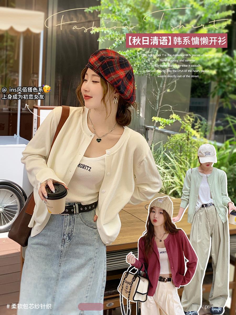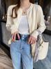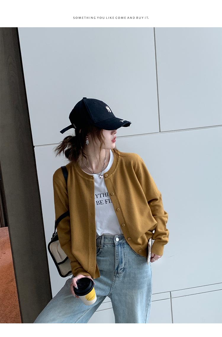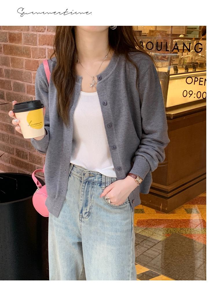 Abrigo Cárdigan de Punto Gris de Cuello Redondo para Mujer Primavera Otoño 2025 Nuevo Estilo Ropa Exterior Sensación Suéter Top Holgado